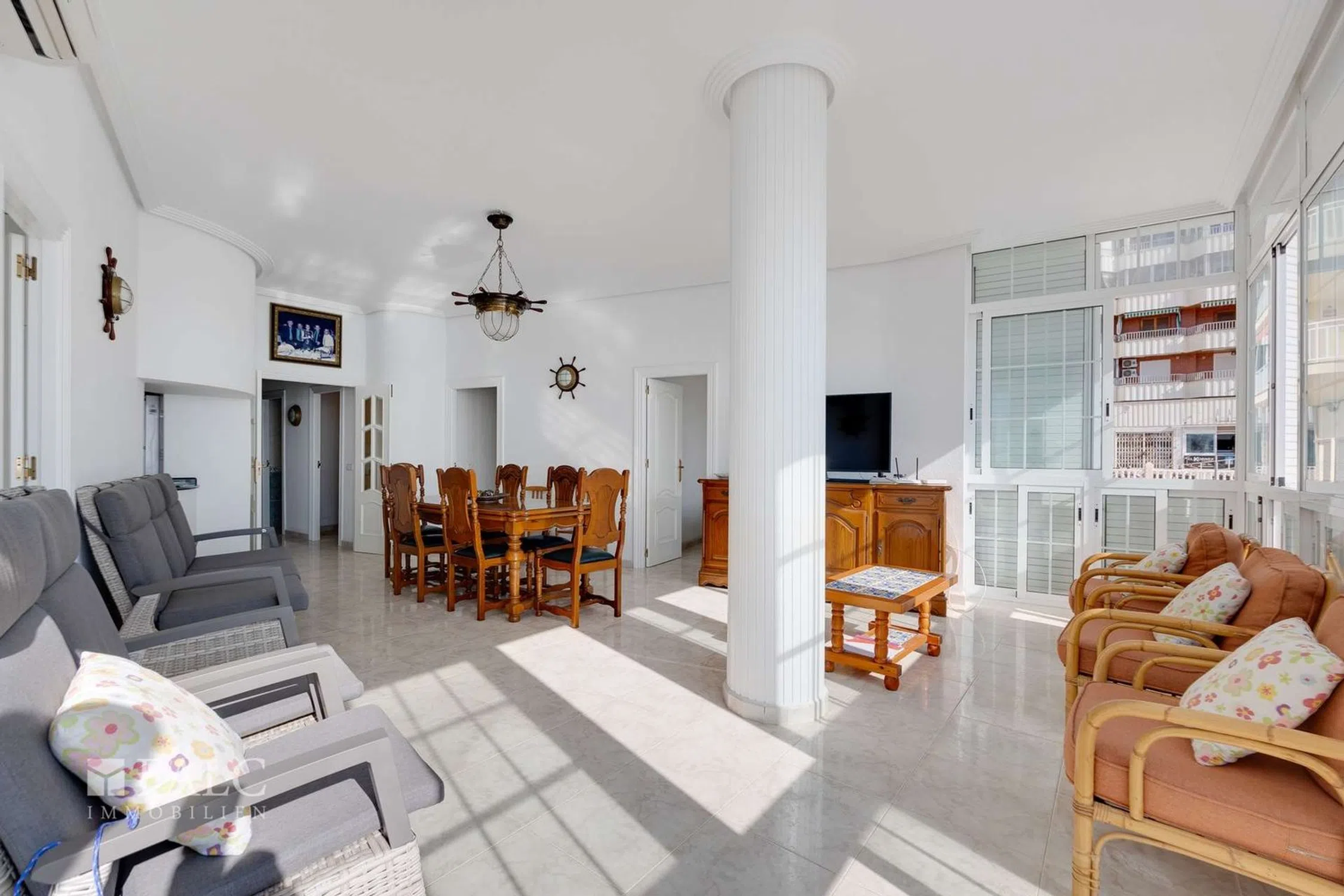El piso en oferta se encuentra en una ubicación privilegiada directamente en la costa de Torrevieja - a sólo 3 metros de la playa. En una superficie total de aprox. 146 m² hay cuatro amplios dormitorios, dos baños y una moderna cocina americana. A destacar: una terraza privada de aprox. 38 m², que tiene una maravillosa vista al mar y ofrece una experiencia única de vivir justo al lado del agua. El piso está situado en la planta baja ("floor baja" ) con orientación sureste - por lo que hay mucha luz durante todo el día. Incluye un garaje doble cerrado. El edificio data de 1981 y está en muy buen estado.