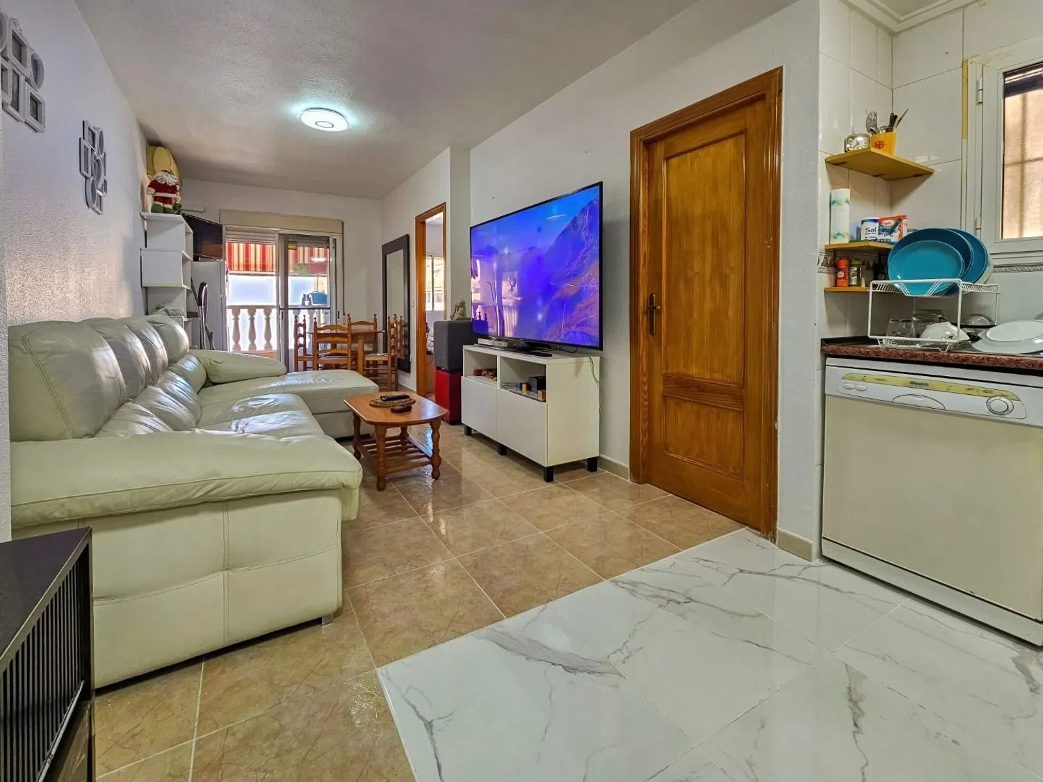 Descubre tu nuevo hogar en Torrevieja Ubicado en la vibrante ciudad de Torrevieja, este acogedor piso en cuarta planta ofrece la combinación perfecta de comodidad y conveniencia. Con vistas a un encantador entorno verde y a la ciudad, este piso de 58 m² completamente reformado y amueblado está listo para que comiences una nueva etapa, ya sea como residencia habitual o como un refugio vacacional en la costa. Distribución funcional y moderna El diseño del piso es práctico y atractivo, con una distribución que aprovecha al máximo cada rincón. Al ingresar, un baño moderno y completamente equipado se encuentra a la derecha, brindando comodidad para los residentes y visitantes. La cocina americana, totalmente integrada al salón-comedor, crea un espacio amplio y acogedor, ideal para disfrutar de momentos de descanso y convivencia. La cocina cuenta con todos los electrodomésticos necesarios, lo que permite preparar deliciosas comidas desde el primer día. A continuación, encontrarás dos dormitorios llenos de luz, cada uno diseñado para ofrecer confort y tranquilidad. Uno de los espacios más destacados es el balcón con vistas exteriores, ideal para disfrutar del clima mediterráneo, tomar un café por la mañana o relajarse al atardecer. Confort y estilo en cada detalle Este piso está equipado con aire acondicionado y calefacción, garantizando una temperatura agradable durante todo el año. Además, la reciente reforma le aporta un toque moderno y fresco, resaltando su diseño y funcionalidad. El piso se entrega completamente amueblado y equipado, lo que significa que está listo para que puedas mudarte de inmediato sin preocuparte por nada más. Comodidades y zonas comunes excepcionales Este edificio cuenta con excelentes instalaciones para que disfrutes al máximo de tu tiempo en casa. Dispone de un ascensor, facilitando el acceso a la cuarta planta. La piscina comunitaria es perfecta para refrescarse en los cálidos días de verano y, junto a ella, se encuentra una hermosa área verde que aporta un toque de naturaleza y frescura al entorno. Uno de los puntos fuertes de esta propiedad es su solárium comunitario, un espacio ideal para tomar el sol o simplemente relajarse mientras disfrutas de una vista panorámica espectacular de Torrevieja. Ubicación privilegiada en Torrevieja La localización es uno de los grandes atractivos de esta vivienda. A solo unos pasos encontrarás supermercados, tiendas de todo tipo, restaurantes, y un centro comercial, lo cual hace que las necesidades diarias estén siempre a mano. Además, en los alrededores hay colegios, lavanderías, centros de salud y múltiples opciones de ocio, perfectas para toda la familia. La buena conexión con el transporte público hace que desplazarse por la ciudad o incluso llegar a la playa sea rápido y sencillo. Un hogar listo para disfrutar Este piso en Torrevieja es la opción perfecta para quienes buscan comodidad, estilo y una ubicación inmejorable. Listo para entrar a vivir y equipado con todas las facilidades modernas, ofrece una excelente oportunidad para disfrutar del estilo de vida mediterráneo sin complicaciones. ¡No dejes pasar la oportunidad de hacer de este lugar tu hogar en la hermosa costa de Torrevieja! CONTACTANOS AHHORA!