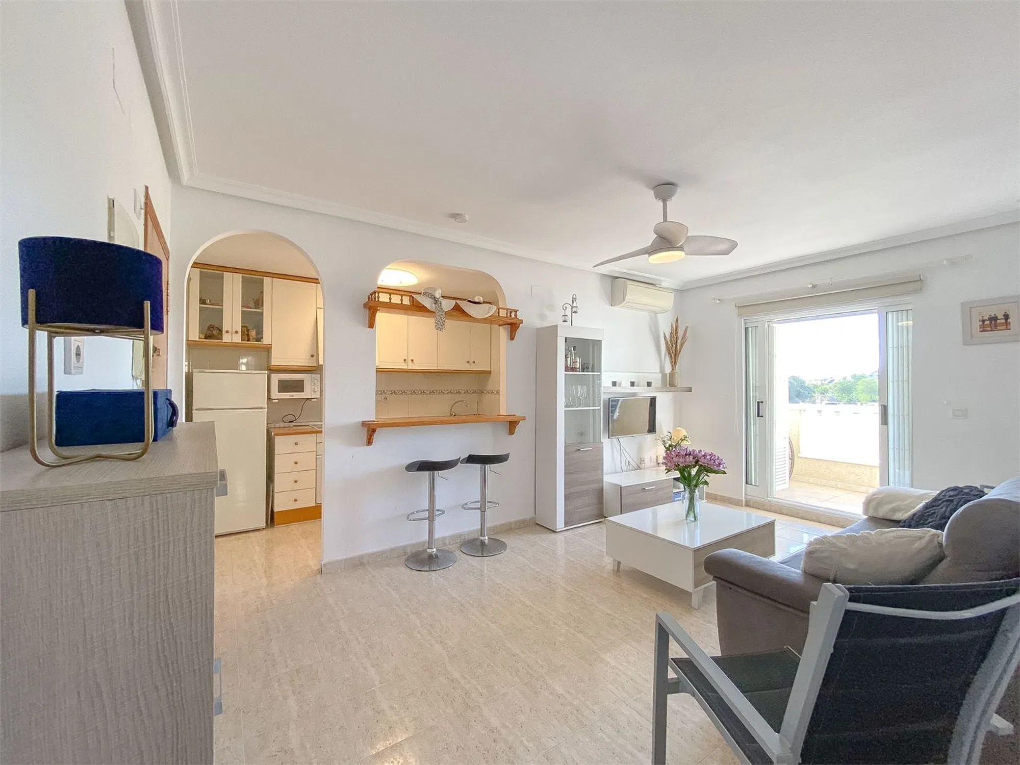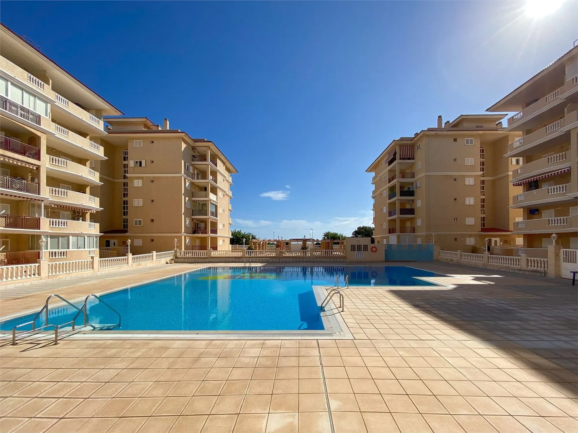 Vistas despejadas junto a la playa! Apartamento de primera planta en estado impecable con 2 dormitorios, amplia terraza con impresionantes vistas al Parque del Molino de Agua y al mar y plaza de garaje. Urbanización tranquila y cuidada, con amplias zonas comunes, incluida la gran piscina comunitaria, un parque de juegos y zona de barbacoa. A tan solo 350 m de la playa de La Mata, cerca de comercios y restaurantes. Ideal para disfrutar del auténtico estilo de vida mediterráneo.