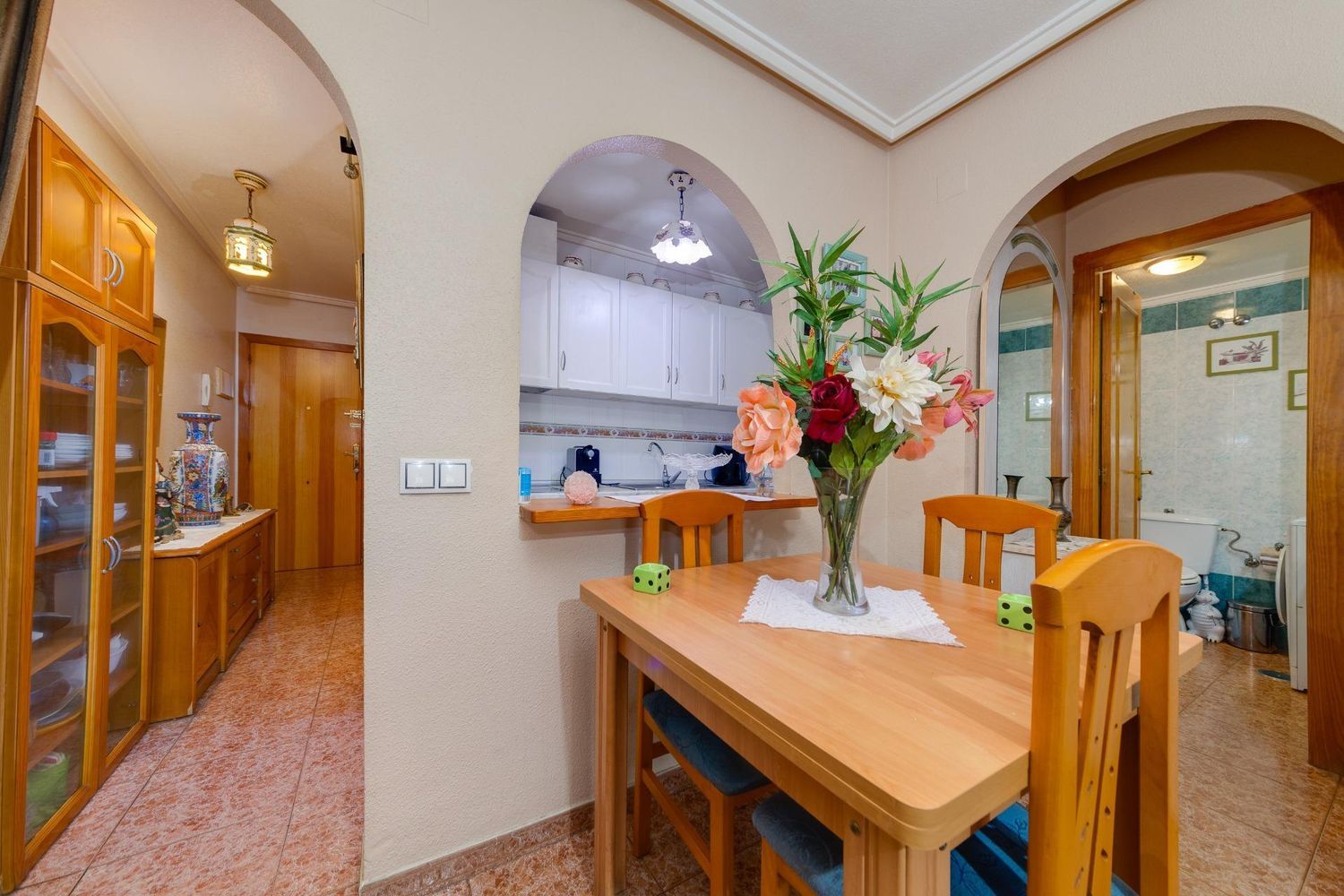 Tenemos el placer de presentar este acogedor apartamento ubicado a pocos pasos del centro de Torrevieja y la playa del Acequión.Con una orientación sur que garantiza abundante luz natural, el apartamento cuenta con salón comedor, dos dormitorios, cocina americana totalmente equipada, terraza acristalada y baño completo. Dispone también de garaje cerrado incluido en el precio.En perfecto estado de conservación, equipado con aire acondicionado está listo para habitar todo el año o disfrutar durante tus vacaciones.Además, podrás disfrutar los días soleados en la piscina dentro del complejo residencial.Perfectamente ubicado y rodeado de todos los servicios necesarios al alcance de la mano (colegio, centro de salud, supermercados, restaurantes).No pierda la oportunidad de visitar esta magnifica vivienda.EL PRECIO NO INCLUYE GASTOS NI IMPUESTOS.