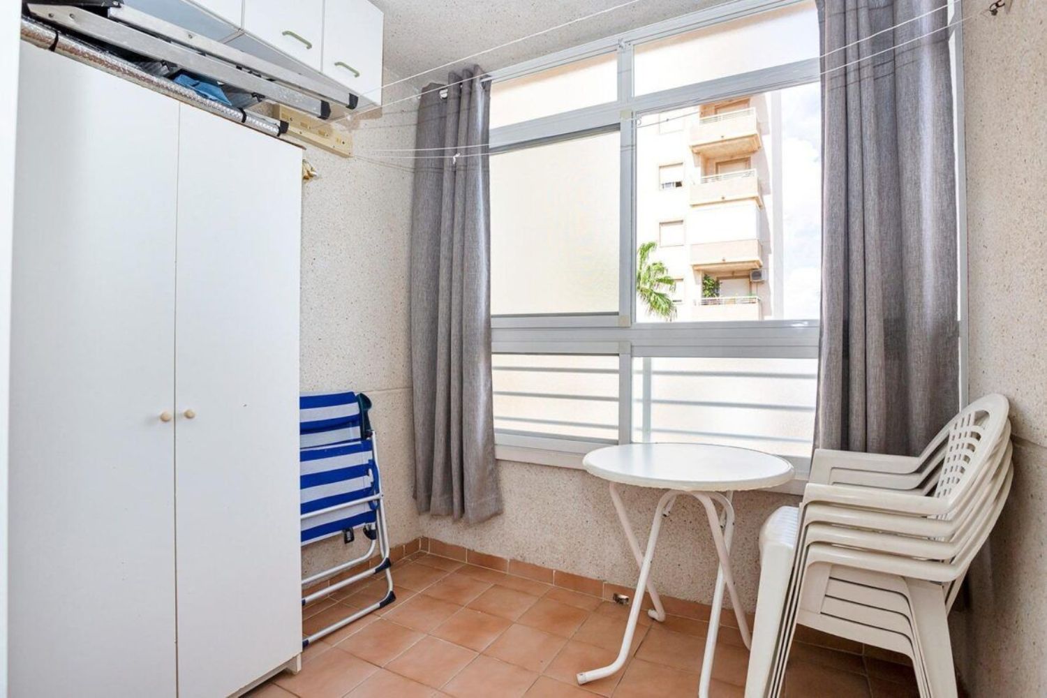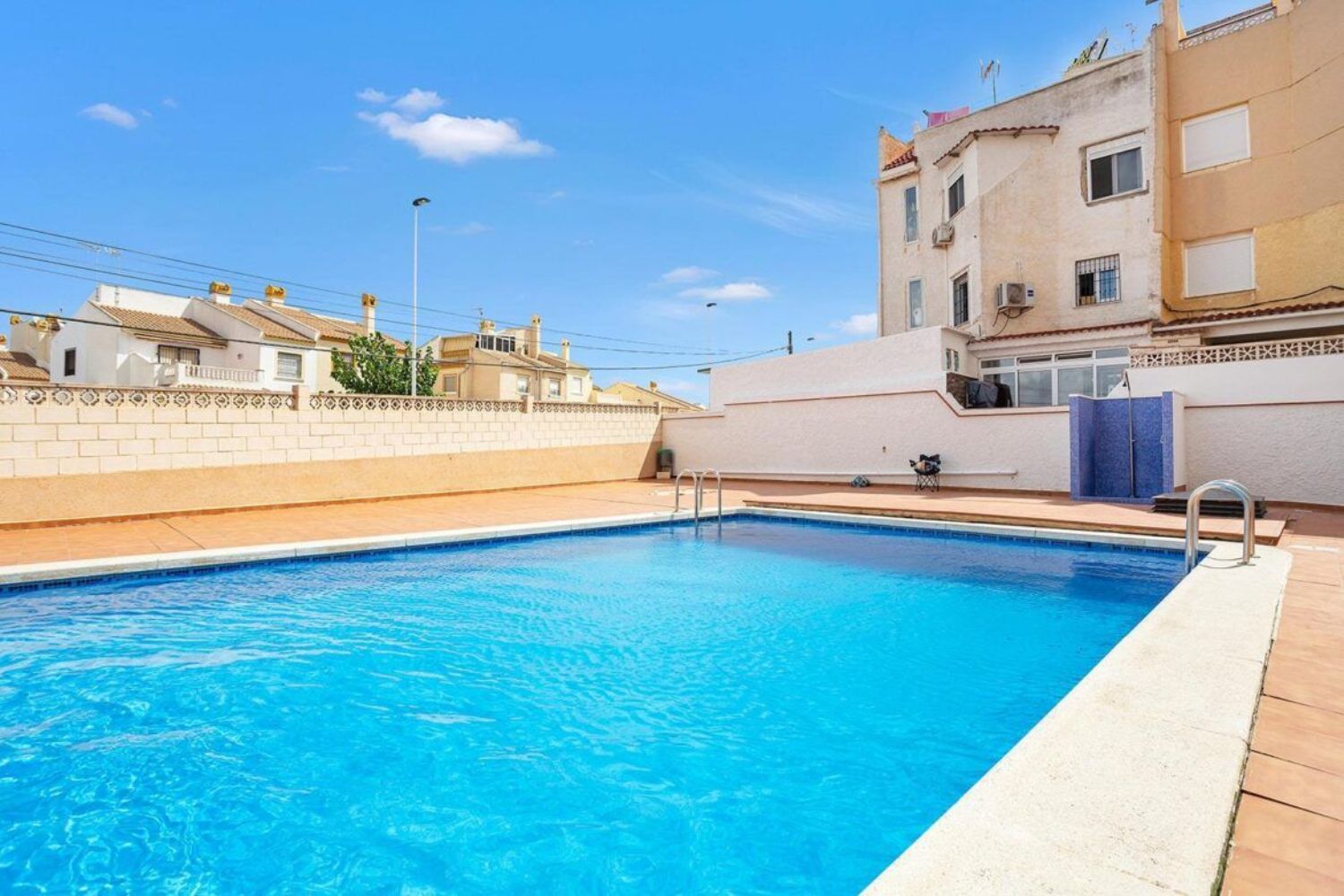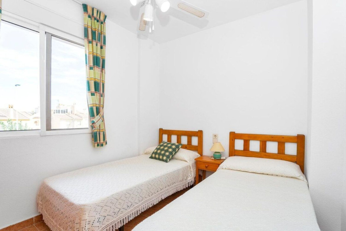 1. Piso → Apartamento en Torrevieja zona Nueva Torrevieja, 56 m. de superficie, 4 m2 de terraza (Acristalada), 1200 m. de la playa, 2 habitaciones dobles, un baño (Con ventana), propiedad en Buen estado, cocina equipada, carpinteria interior de madera, orientación oeste, suelo de gres, carpinteria exterior de aluminio / climalit. Extras: acceso pmr, armarios empotrados, ascensor, balcon, esquina, luminoso, muebles, piscina comunitaria, terraza, terraza acristalada, autobuses, árboles, céntrico, centros comerciales, centros médicos, colegios, costa, golf, hospitales, parques, supermercados, urbanización, vallado, vigilancia 24h, vistas despejadas, zona de paso, zonas infantiles. Gastos de comunidad: 40 Eur..