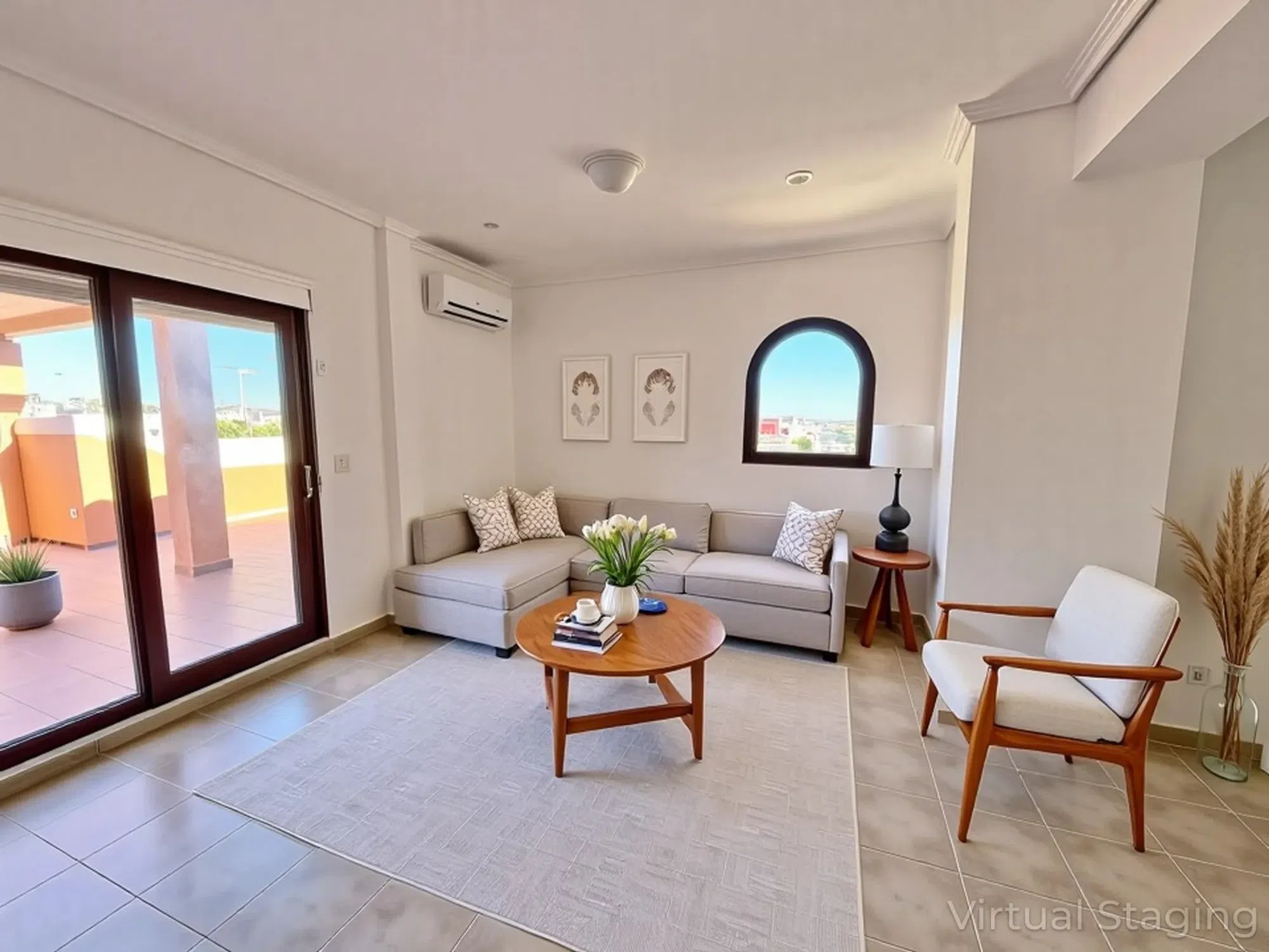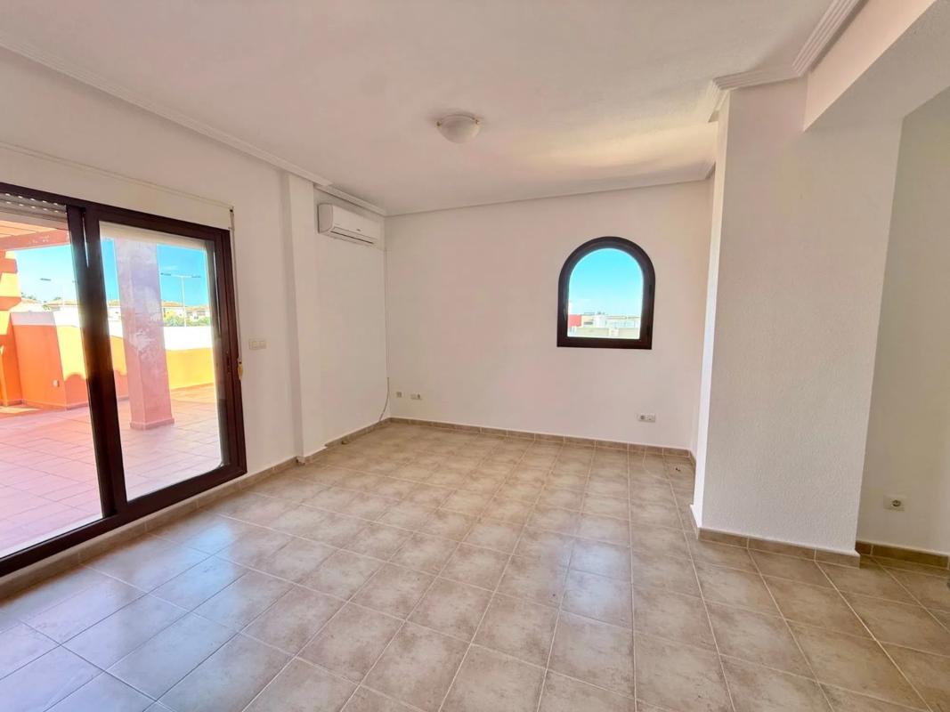 Apartamento en planta alta con vistas despejadas en la zona de Aguas Nuevas de Torrevieja. 3 dormitorios, 1 baño. 2. ª planta (sin ascensor). Amplia terraza privada junto al salón. Cocina independiente. Aire acondicionado en salón y dormitorio principal. Piscina comunitaria. Plaza de aparcamiento privada. A 1,5 km a pie de la playa de Los Locos. A 750 m a pie de supermercados. **ESCENARIO VIRTUAL UTILIZADO EN PUBLICIDAD - NO INCLUYE MUEBLES**. Aguas Nuevas in Torrevieja is a sought-after residential area known for its peaceful atmosphere, modern urbanizations, and proximity to beaches, shops, and schools. It offers a perfect mix of Spanish charm and comfort, making it an excellent place to live year-round or invest in quality apartments with strong rental potential.