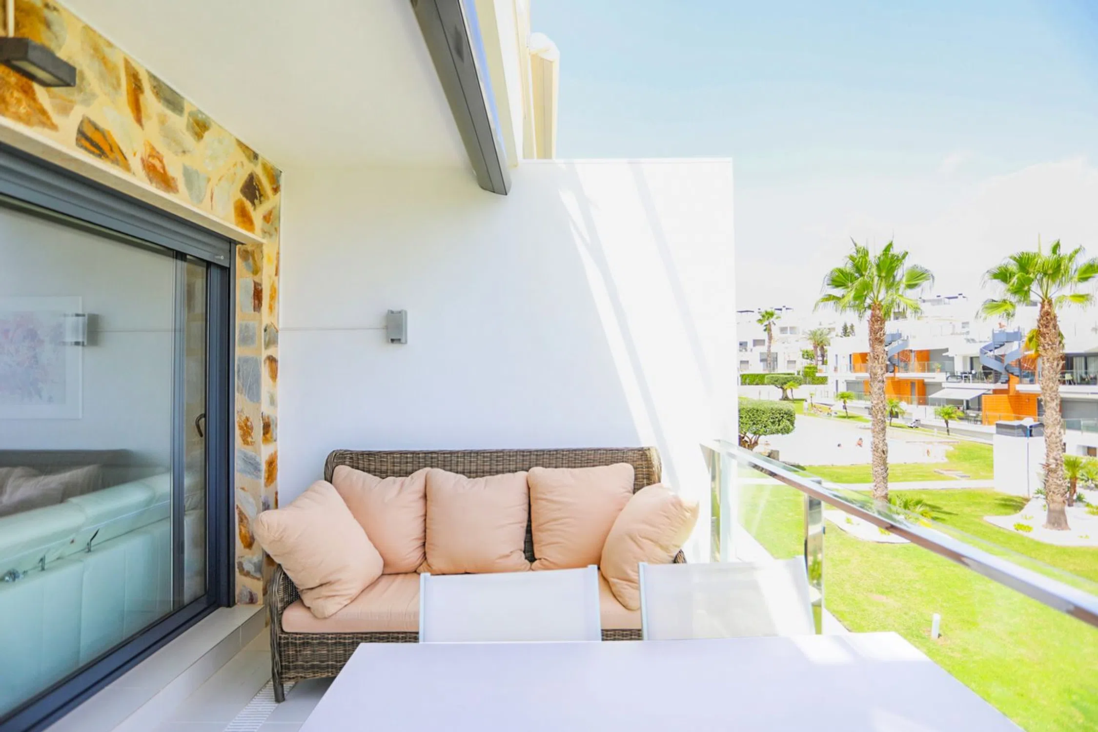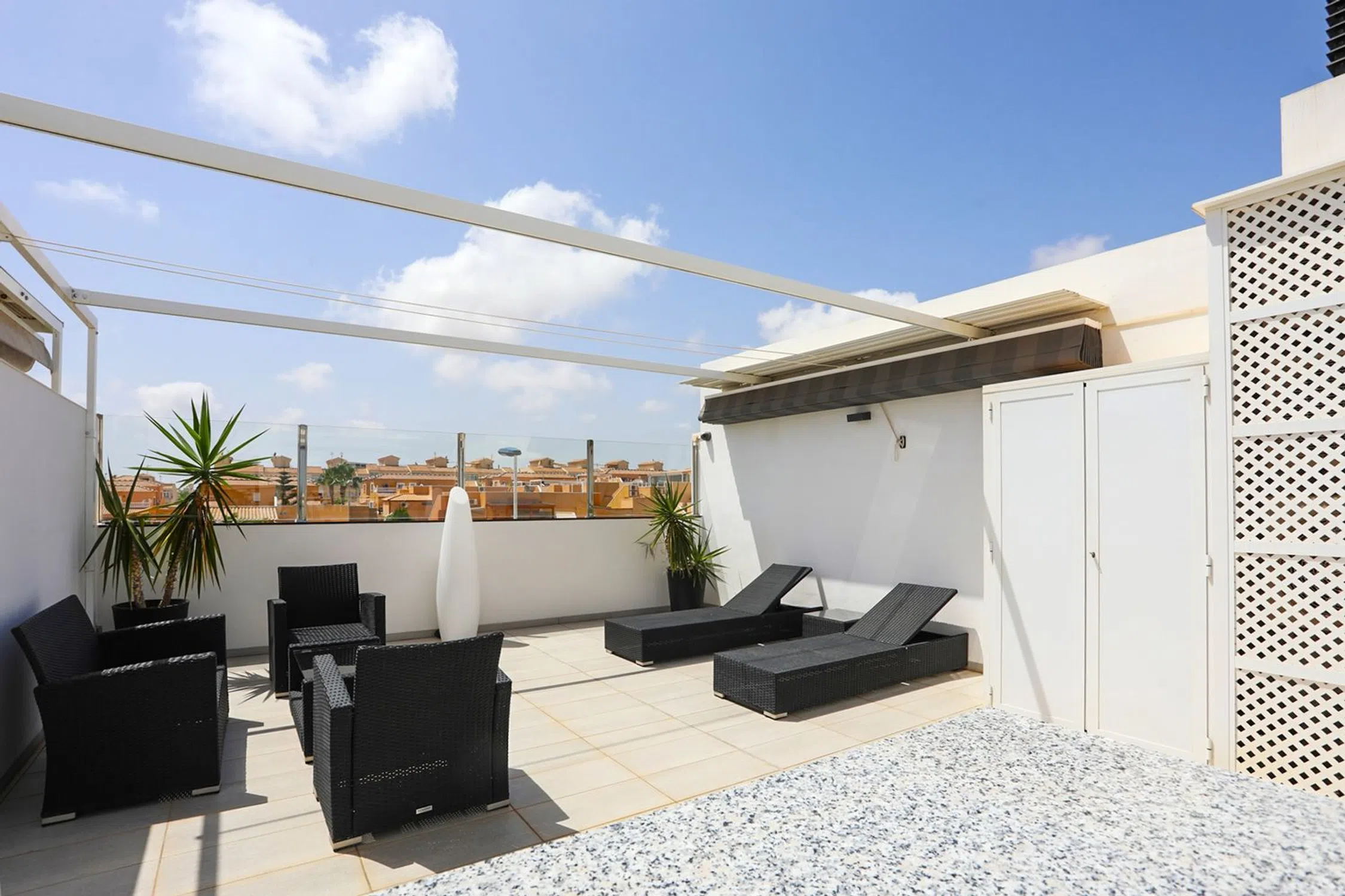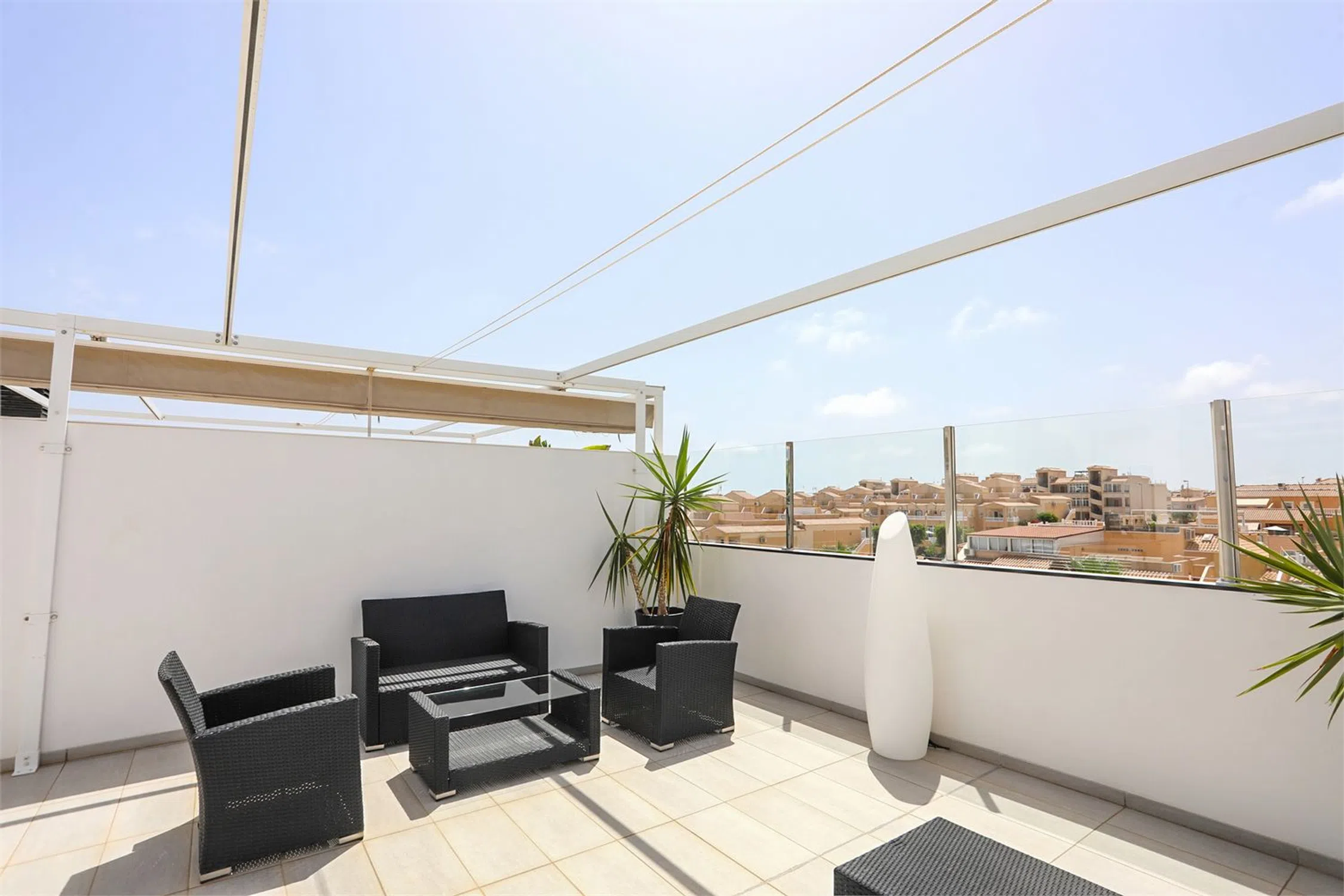 ¡Ático en Punta Prima! Vivienda moderna y decorada con buen gusto, con pequeños detalles que hacen la vida diaria más agradable. Ubicada en una urbanización bien cuidada, rodeada de zonas verdes y con una amplia piscina comunitaria. La vivienda dispone de 2 dormitorios, 2 baños, 2 balcones con distintas orientaciones y una fantástica terraza privada en la azotea. Incluye plaza de garaje y trastero. A poca distancia a pie se encuentra una amplia oferta de bares, restaurantes, supermercado y buenas conexiones de transporte.