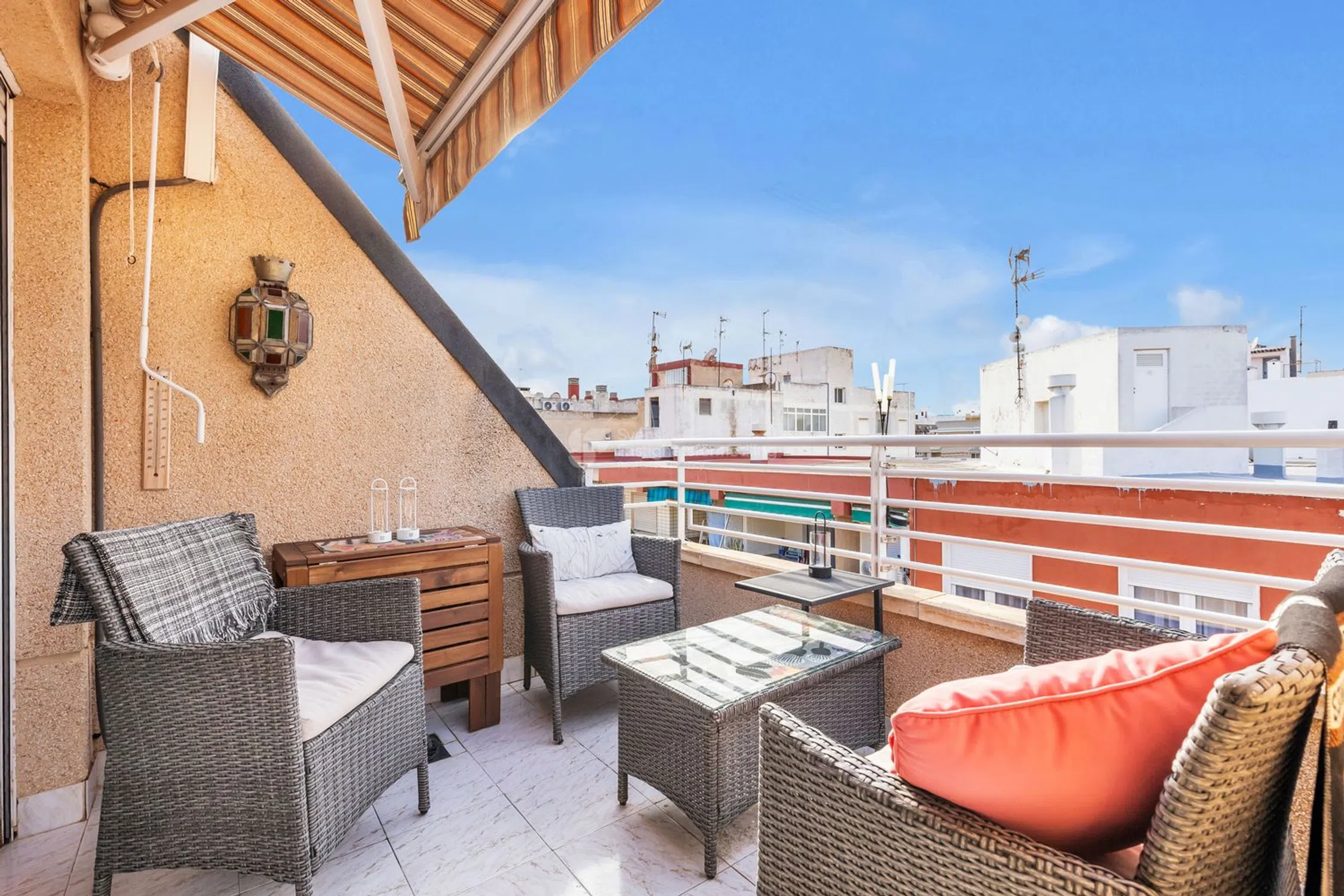 Bienvenido a este atractivo ático con una excelente ubicación en el centro de Torrevieja, cerca de la popular playa de Los Locos. Aquí vivirá a poca distancia del mar, la vibrante vida de la ciudad y todas las comodidades, mientras disfruta de vistas despejadas, sol y hermosas puestas de sol desde las terrazas del apartamento. El apartamento ofrece dos dormitorios, un baño, una cocina y un salón luminoso y acogedor. Desde la propiedad tiene acceso a dos terrazas privadas orientadas al oeste, perfectas para la relajación, comer al aire libre y reuniones sociales por la tarde y al atardecer. La propiedad es ideal tanto como residencia permanente como casa de vacaciones, con fácil acceso a la playa, restaurantes, cafeterías, tiendas y transporte público. La ubicación también lo hace muy atractivo como inversión de alquiler. Un ático luminoso y bien planificado en una de las zonas más solicitadas de Torrevieja, ideal para aquellos que desean combinar la vida de playa, la vida de la ciudad y las mágicas puestas de sol.