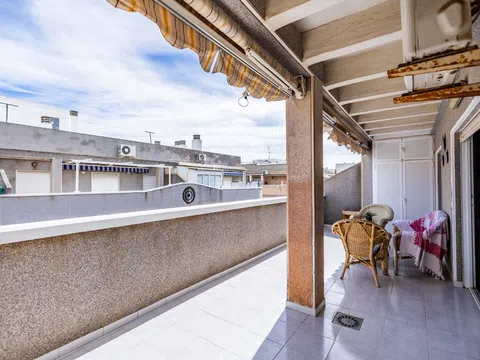 Ático de 2 dormitorios con orientación sur en venta Piso con una superficie de 80 m² más terraza de 25 m². El apartamento cuenta con dos habitaciones dobles, una cocina americana reformada, un baño con ducha y un amplio y luminoso salón-comedor con acceso a la soleada terraza. Cuenta con ventanas de PVC con doble acristalamiento. Esta propiedad, en muy buen estado, se vende parcialmente amueblada. UBICACIÓN: PLAYA DE LOS NAÚFRAGOS - TORREVIEJA. PROVINCIA DE ALICANTE SUR El edificio goza de una ubicación privilegiada, cerca de la entrada principal a la ciudad de Torrevieja y a tan solo 200 metros del mar, rodeado de una gran variedad de playas. Está muy cerca del Hospital de Torrevieja, hay un supermercado a tiro de piedra y cuenta con fácil acceso a los centros comerciales más grandes de la región (La Zenia Boulevard y Las Habaneras) y al Parque Natural de Las Salinas. Gracias a las excelentes conexiones de transporte, clubes de golf como Vistabella y Las Colinas, así como las playas de Orihuela Costa, Campoamor y Guardamar, se encuentran a solo 10 minutos en coche. El aeropuerto de Alicante – El Altet – también está a solo 40 minutos en coche. Más información: + 34.