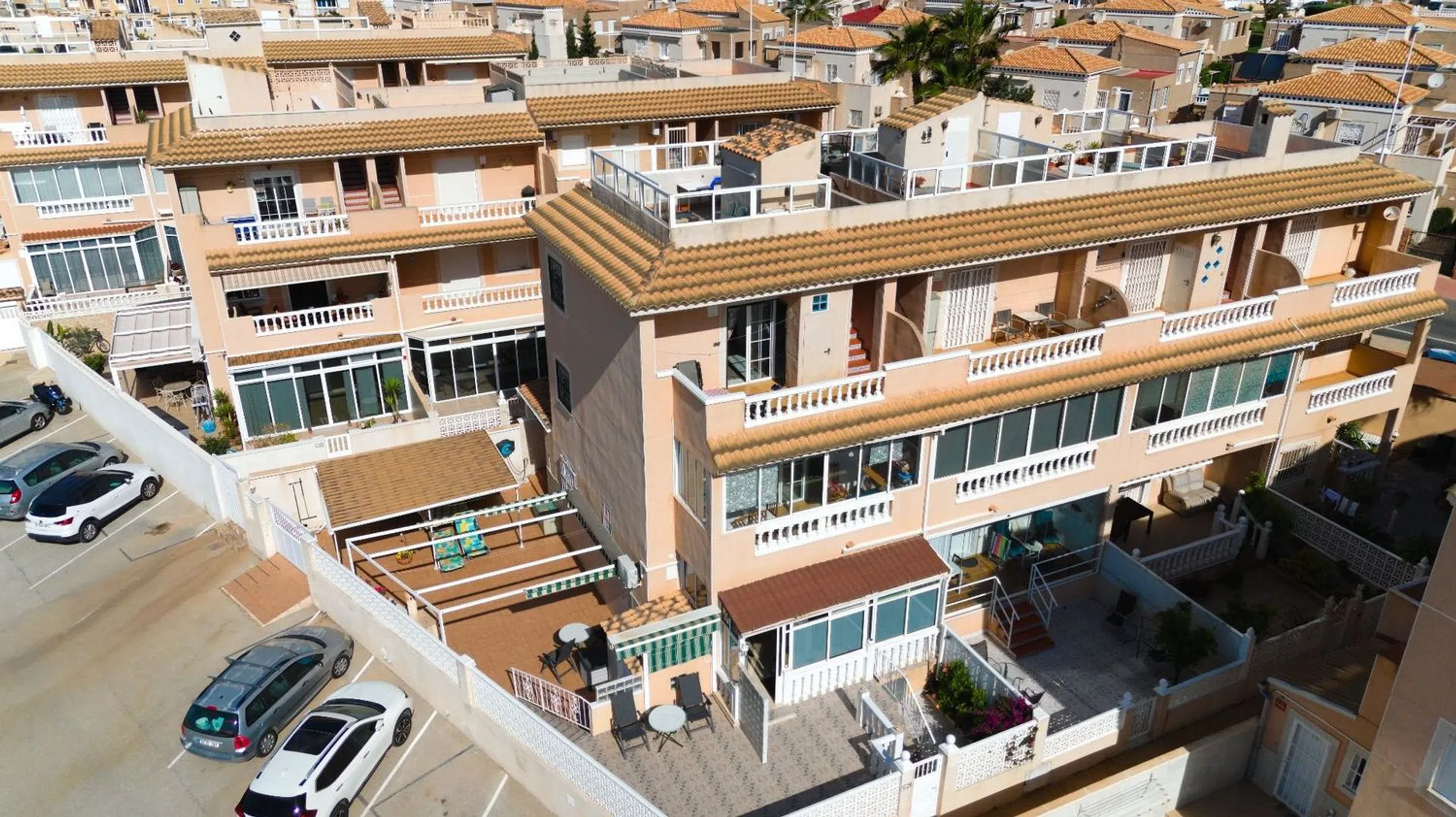 ¡Mira esta hermosa casa que acabamos de recibir! Está orientada al sur y está ubicada en una pequeña colina a las afueras del centro de Torrevieja. La casa tiene 3 dormitorios y 1.5 baños, 3 amplios balcones y una gran terraza privada en la azotea. Hay fantásticas vistas del mar Mediterráneo, La Manga, la laguna salada y la ciudad, incluyendo tanto el amanecer como el atardecer. La casa está ubicada en una urbanización cerrada y bien administrada con muchos escandinavos. La urbanización tiene una gran y hermosa área de piscina y estacionamiento para los propietarios dentro del área cerrada. La casa ha tenido los mismos propietarios noruegos desde que era nueva y está bien mantenida. Se vende completamente amueblada y equipada, por lo que solo necesita traer su maleta. Si desea actualizar a un estilo más moderno, estaremos encantados de ponerle en contacto con artesanos cualificados. Aquí vive céntricamente con buenas conexiones de autobús en la zona, pero también a una cómoda distancia a pie de la playa, el paseo marítimo, el centro de la ciudad, varios supermercados, restaurantes, cafeterías, parques, farmacias, etc. etc. A poca distancia en coche también encontramos varios campos de golf de renombre como La Marquesa, La Finca, Las Ramblas, Villamartin, etc. El aeropuerto de Alicante está a unos 40 minutos en coche. Torrevieja es una zona popular para aquellos que quieren disfrutar del fantástico clima de la Costa Blanca. Aquí encontrará de todo, desde excelentes instalaciones deportivas, tiendas, el popular mercado de los viernes que se celebra todas las semanas y muchos eventos emocionantes durante todo el año. ¡Contáctenos para concertar una visita! También organizamos viajes de visita de 3 a 5 días para mostrarle casas que se adapten a sus deseos y presupuesto. Si no tiene la oportunidad de venir a una visita, estaremos encantados de realizar una visita digitalmente.