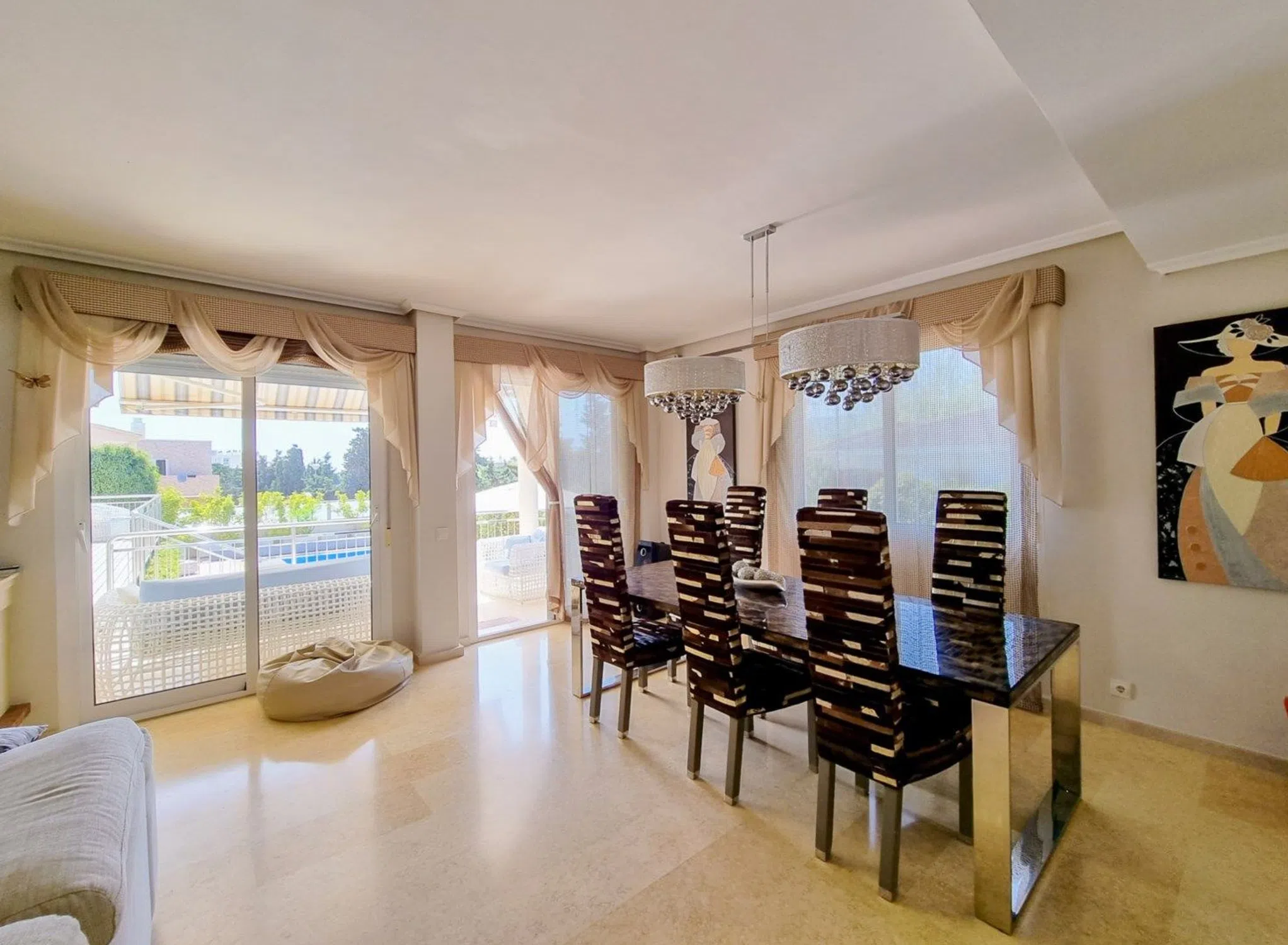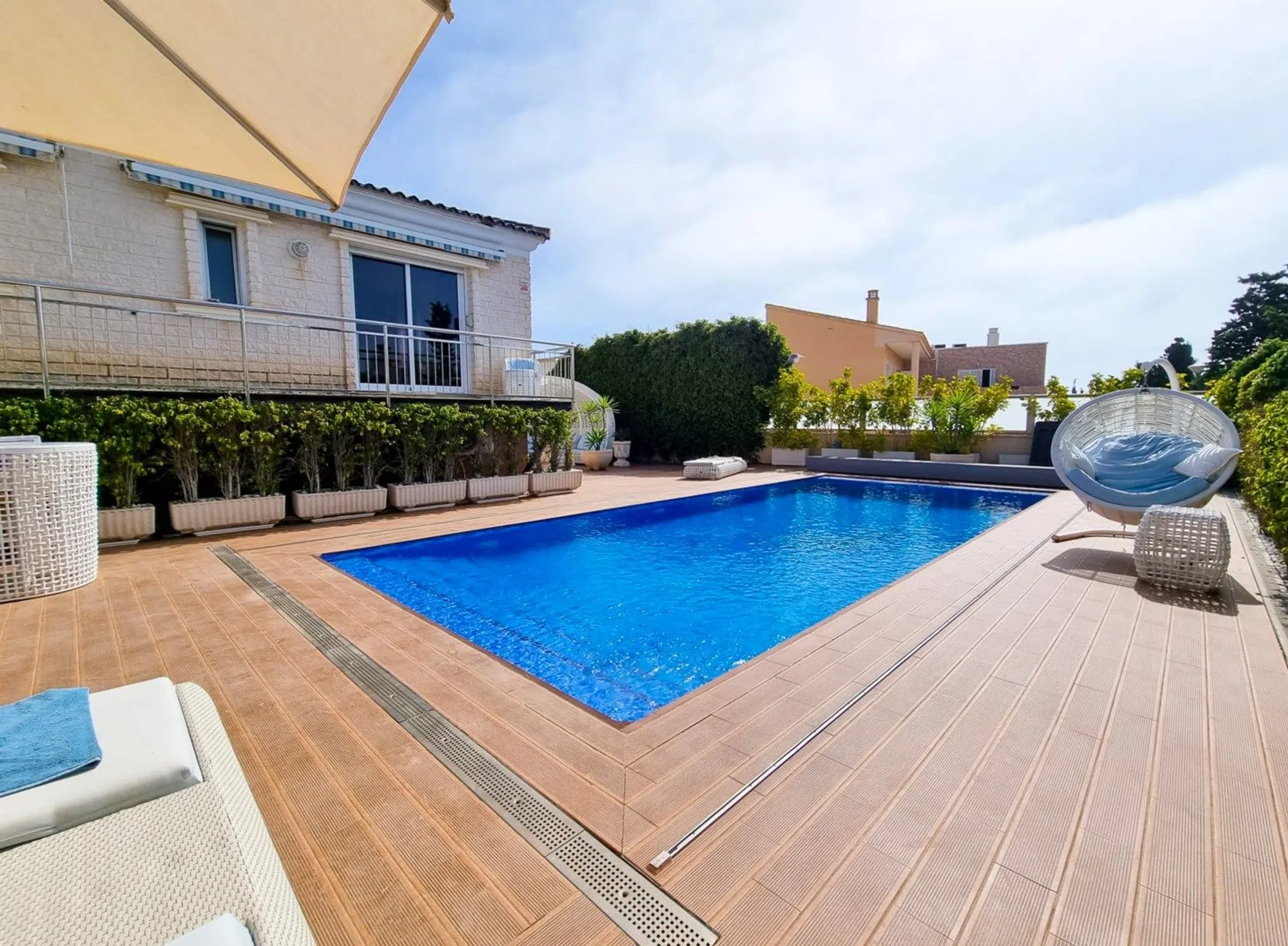 Nos complace presentar esta villa única y espaciosa, idealmente ubicada en una de las zonas más cotizadas de Torrevieja. Distribuida en tres plantas, la propiedad ofrece amplio espacio y comodidad para vivir todo el año o como una lujosa casa de vacaciones. La planta residencial cuenta con tres dormitorios bien distribuidos, dos baños, un aseo de invitados y un aseo con ducha independiente. El luminoso y acogedor salón se integra a la perfección con la cocina y ofrece acceso directo a una amplia terraza, también accesible desde uno de los dormitorios, ideal para cenar al aire libre o relajarse bajo el sol. En la planta superior encontrará dos dormitorios más, un baño y un encantador balcón que ofrece impresionantes vistas de los alrededores y del brillante mar Mediterráneo. En el nivel del sótano, la casa sorprende con un gran salón abierto, un vestidor que se puede convertir fácilmente en dormitorio, un lavadero y una zona de bienestar privada con sauna finlandesa, baño de vapor turco y ducha, perfecta para la relajación y el cuidado personal. Los amplios terrenos incluyen varias zonas fantásticas para socializar, espacio para aparcar varios vehículos y una piscina muy bien cuidada y acogedora. La propiedad forma parte de una comunidad bien mantenida que también ofrece servicios comunes como jardín y pista de tenis. La zona ofrece una amplia gama de restaurantes, bares, tiendas y todos los servicios necesarios para una estancia cómoda en Torrevieja. Para los amantes de la playa, la popular playa de La Mata está a solo unos minutos a pie y cuenta con encantadores chiringuitos, un lugar ideal para disfrutar de días soleados junto al mar. En los alrededores encontrará una amplia gama de excelentes restaurantes, tiendas, cafeterías, supermercados y servicios abiertos todo el año. La fantástica playa de La Mata está a solo unos metros. El centro de Torrevieja también cuenta con un pintoresco puerto deportivo y, con su animado ambiente durante todo el año, sigue siendo uno de los destinos más dinámicos y acogedores de la Costa Blanca. ¡Bienvenido a contactar con Bjurfors Costa Blanca para obtener más información o reservar su visita!