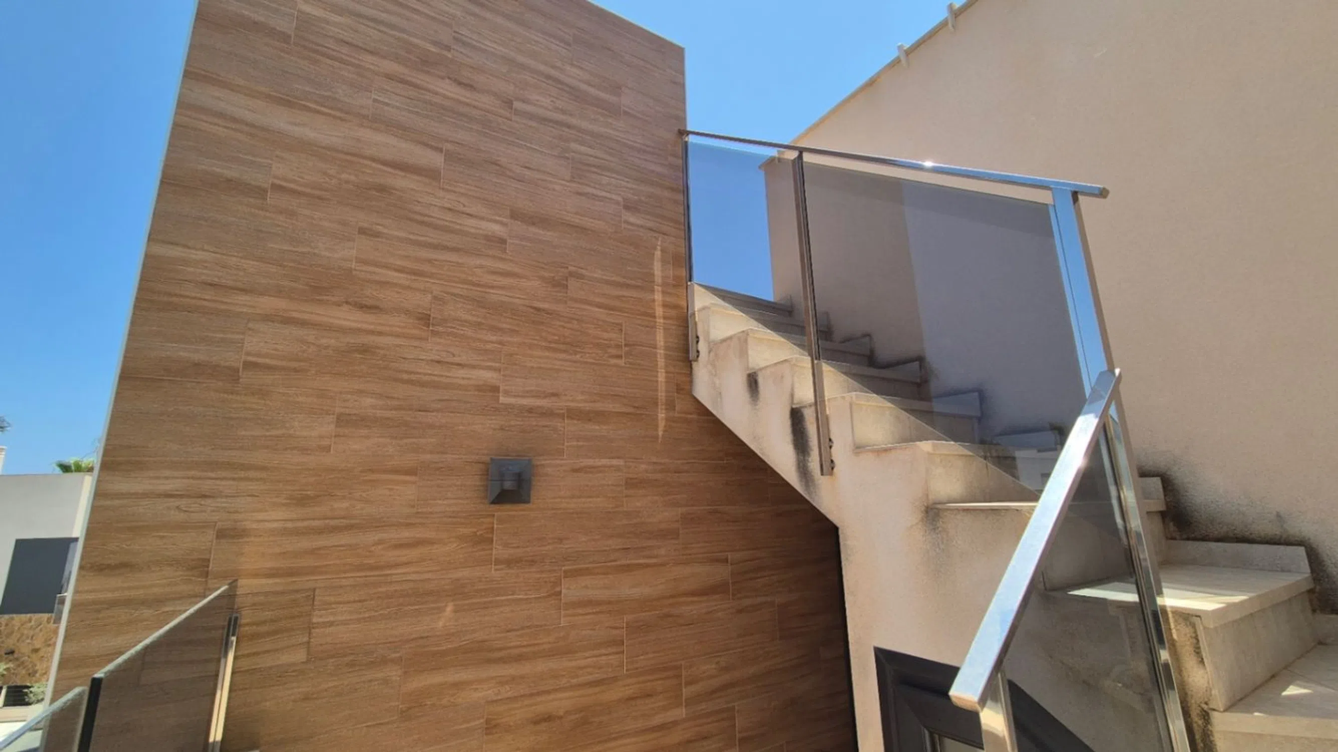 Moderna villa con piscina privada y aparcamiento fuera de la carretera. Esta propiedad consta en la planta baja de una amplia sala de estar y comedor, cocina, 1 dormitorio y 1 baño. En el piso superior hay otros 2 dormitorios, cada uno con baño en suite, escaleras que te llevan a la terraza en el tejado desde donde hay vista al mar. Además, hay un gran sótano con una sala de entretenimiento, 1 dormitorio, 1 baño y una lavandería. La casa perfecta para vivir de manera permanente o como casa de vacaciones, cerca de todas las comodidades y a solo 2 minutos de la playa.