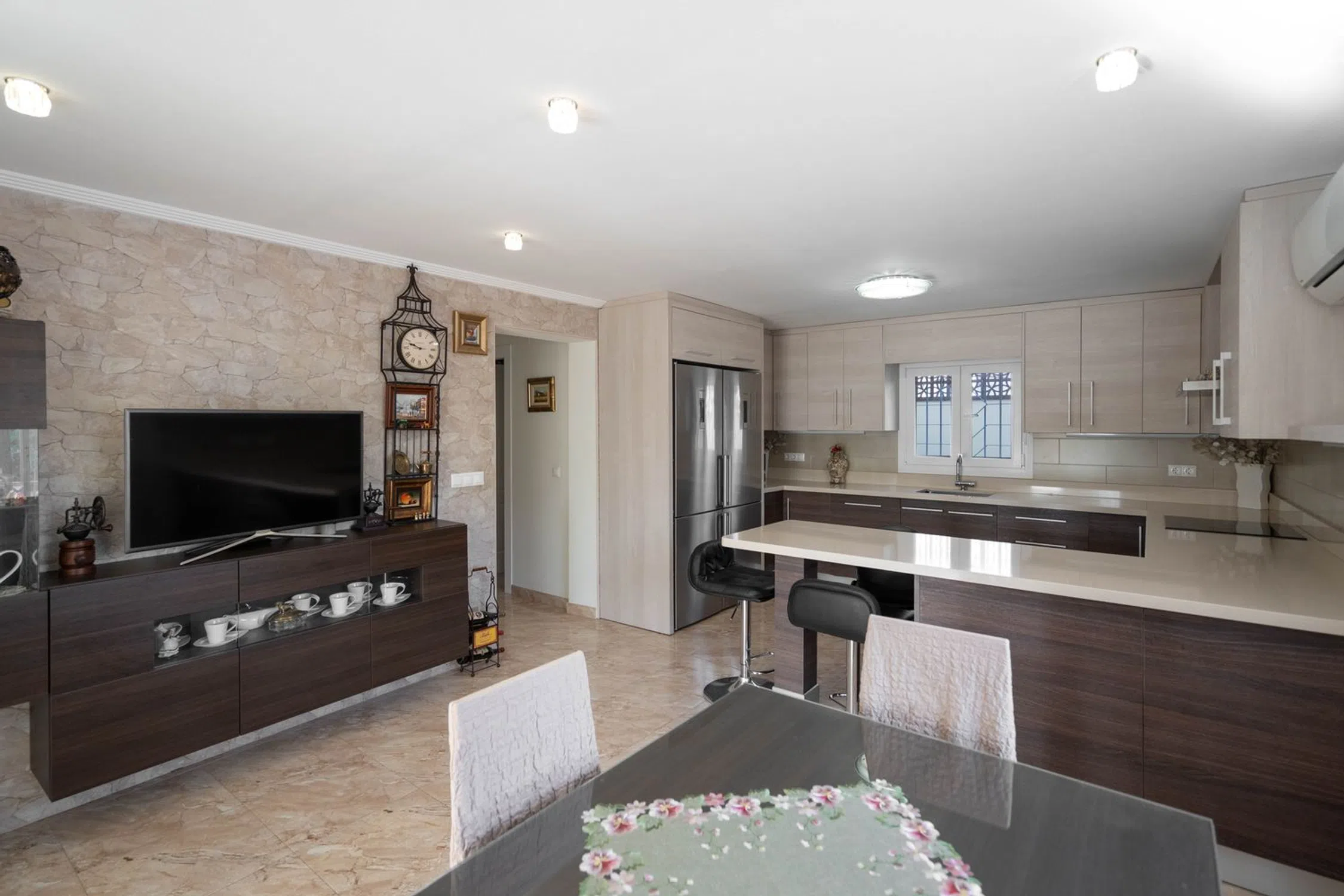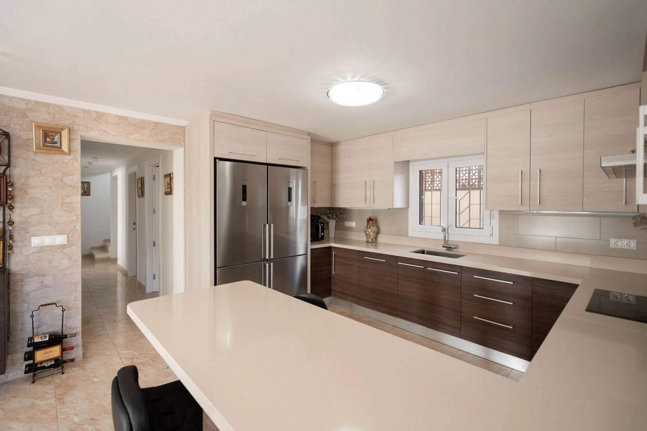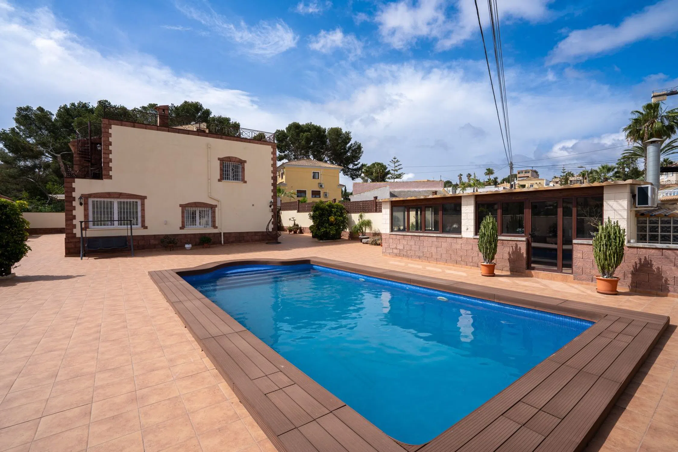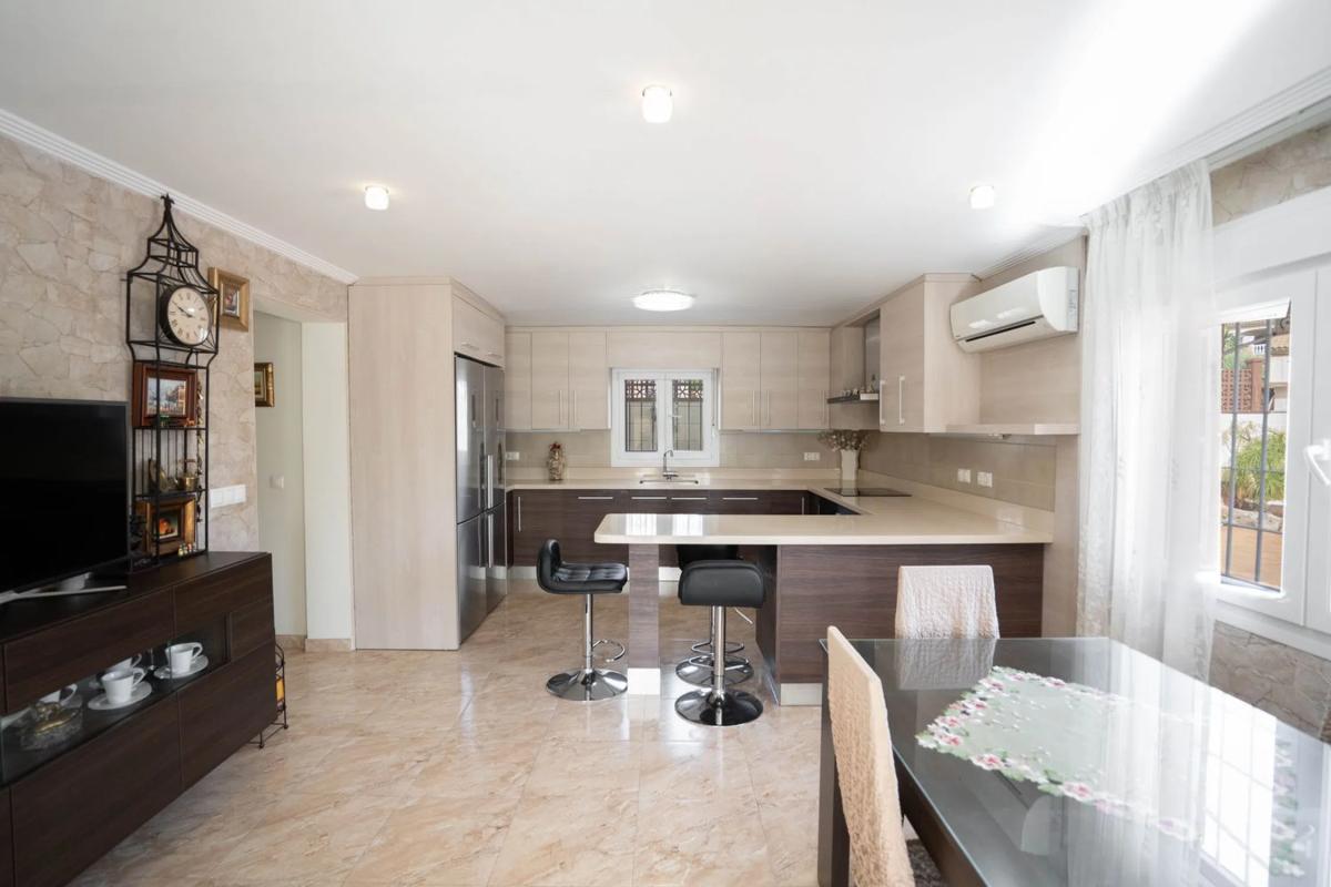 SkandiaMäklarna en Torrevieja está encantada de darle la bienvenida a esta increíblemente hermosa casa en el corazón de Los Balcones, justo al lado del club de tenis. La casa consta de dos plantas. En la planta baja hay una entrada, amplia cocina con comedor, salón, baño y lavadero, así como un apartamento de invitados con entrada independiente que cuenta con salón, cocina, dormitorio y baño. En la planta superior hay un total de cinco dormitorios, dos baños y un balcón que conduce a la terraza de la azotea con una bonita vista de los alrededores. Toda la casa está en muy buenas condiciones por lo que todo lo que tienes que hacer es hacer las maletas y mudarte. En la parcela grande, pero de fácil mantenimiento, hay una piscina privada, una fresca cocina al aire libre, espacio para socializar y también almacenamiento y espacio para aparcar varios coches. Los Balcones es una zona increíblemente popular que también se considera exclusiva. Aquí hay muchas casas grandes con amplias parcelas y exuberantes jardines, pero también casas adosadas auténticamente españolas. En la zona hay varias tiendas de comestibles, restaurantes, bares y proximidad a los servicios necesarios durante su estancia en España. La playa más cercana se encuentra a unos 5 minutos en coche y para aquellos que quieran hacer una excursión, la autopista también está a unos 5 minutos. En Los Balcones también se encuentra el club de tenis de Torrevieja y hay pistas de petanca, campos de fútbol, canchas de baloncesto, etc. Esto es para aquellos que quieren un terreno grande pero de fácil mantenimiento y una casa que esté lista para mudarse. Bienvenido a casa.