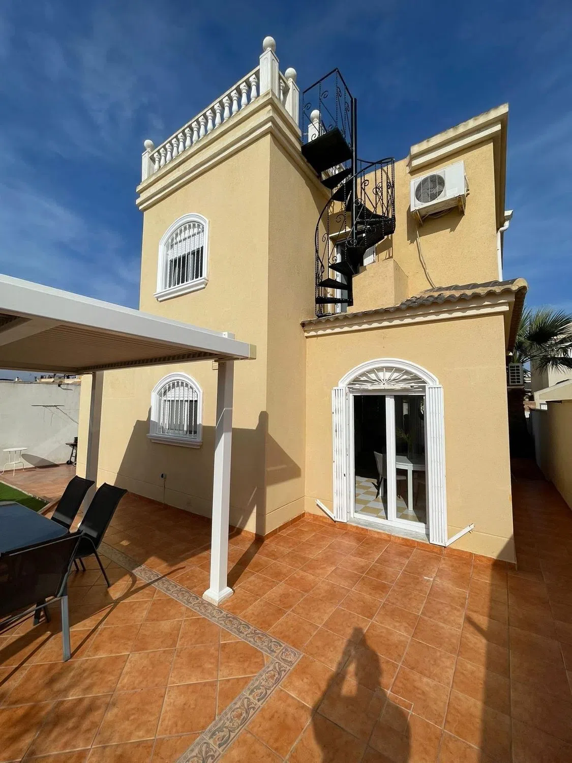 Chalet independiente con garaje en Aguas Nuevas � Precio: 399.000 € � Superficie construida: 120 m² � Parcela: 230 m² � Año de construcción: 1996 ✨ Características: •4 dormitorios •2 baños •2 plantas + solárium •3 aires acondicionados •Garaje privado � Distribución: Planta baja: salón, cocina independiente, 1 baño, recibidor y 1 dormitorio Primera planta: 3 dormitorios y 1 baño � Ubicación: A solo 15 minutos a pie del mar, cerca de 3 colegios y de todos los supermercados. � IBI: 350 € / año.