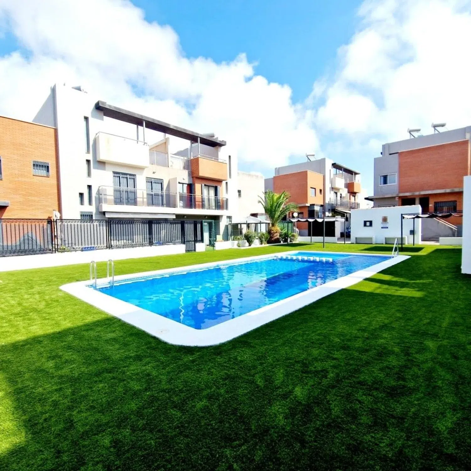 Oportunidad Única: Quad con Parking, Terraza y Solárium Privado en Aguas Nuevas – Torrevieja Te presentamos este encantador quad en esquina, situado en la cotizada zona de Aguas Nuevas – Sector 25 de Torrevieja. Una vivienda que combina amplitud, funcionalidad y estilo mediterráneo, ideal como residencia habitual, casa vacacional o inversión. Distribución y características principales 3 dormitorios (dos de ellos con balcón) 2 baños completos Cocina independiente totalmente equipada, con salida directa al patio Amplio salón-comedor con preinstalación de aire acondicionado Terraza soleada y solárium privado con vistas abiertas, perfectos para disfrutar del clima durante todo el año Parking dentro de la parcela Situado en el exterior de una urbanización privada con piscina comunitaria y entrada independiente Ubicación y entorno Ubicado en una zona tranquila y bien comunicada, rodeada de todos los servicios: supermercados, colegios, parques, transporte público y a tan solo cinco minutos en coche del centro de Torrevieja y de la playa de La Mata. Tipo: Quad Urbanización cerrada con piscina comunitaria Excelente ubicación y entorno residencial consolidado Una vivienda completa, luminosa y cómoda, situada en una de las áreas más demandadas de Torrevieja. Perfecta para quienes valoran el espacio exterior, el confort y una buena oportunidad de inversión. ¿Te gustaría visitarla? Contáctanos y agenda tu cita hoy mismo.