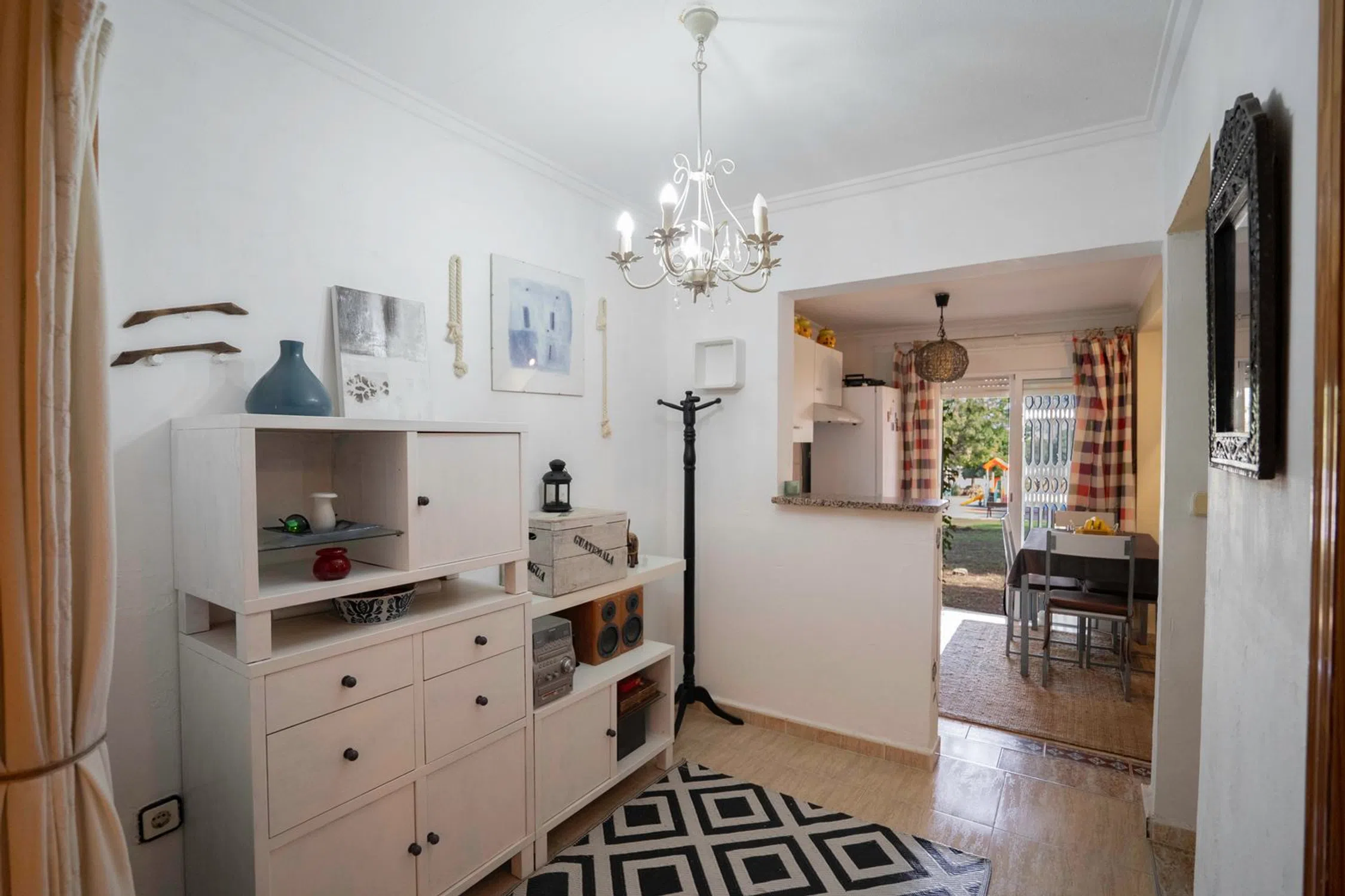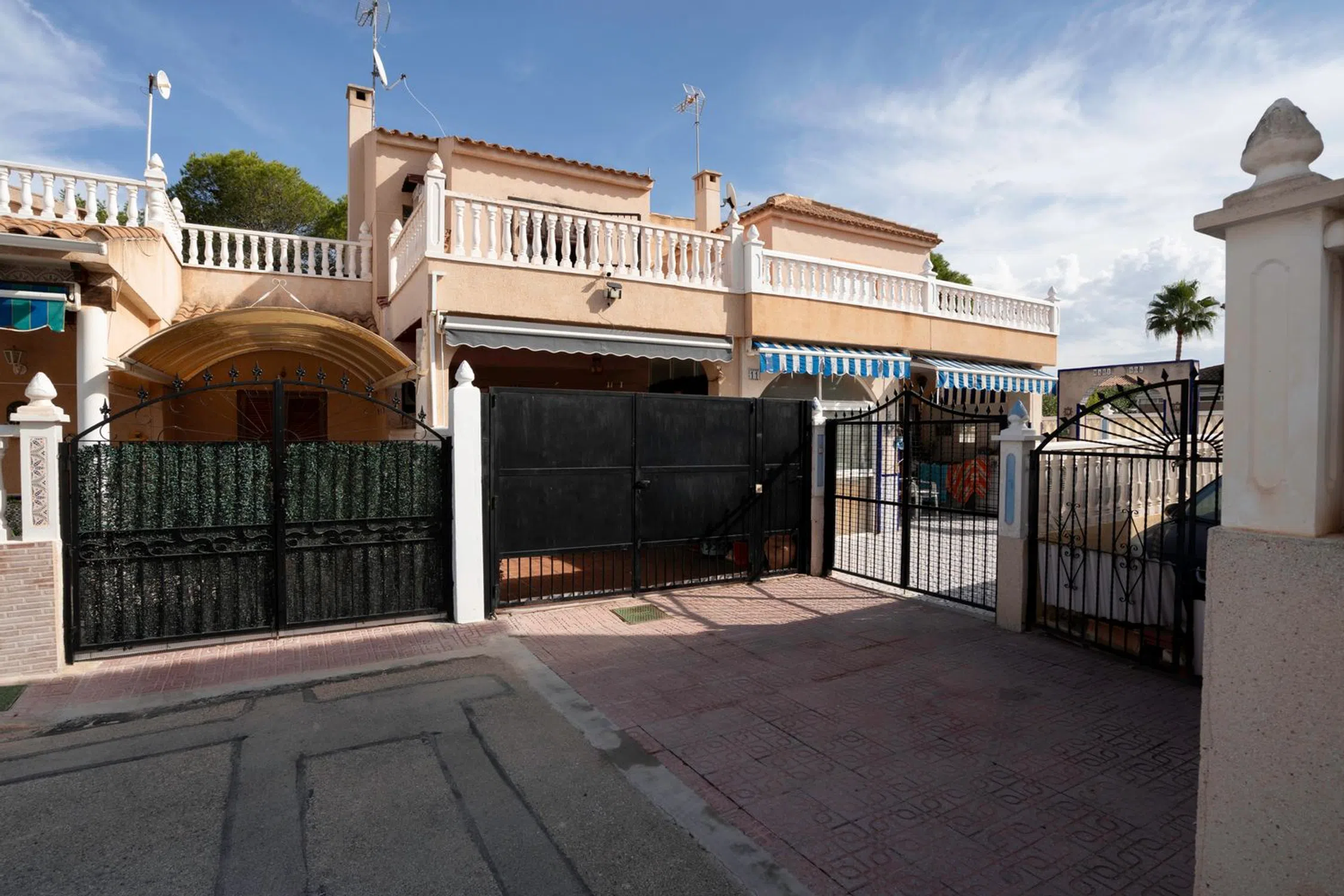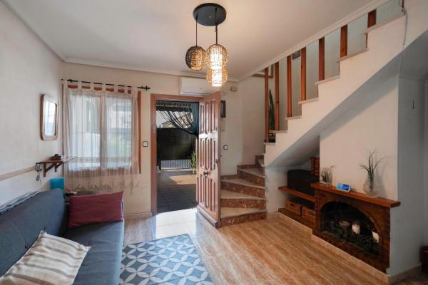 En SkandiaMäklarna nos complace ofrecer a nuestros clientes esta acogedora y bien cuidada casa adosada en la popular zona de Punta Prima, al sur de Torrevieja. La casa consta de dos plantas. En la planta baja hay una terraza que también se puede utilizar como aparcamiento. A continuación, se encuentran el salón, un recibidor con baño y una amplia cocina. Desde la cocina se accede al parque cercano, disfrutando de unas vistas exuberantes. En la planta superior se encuentran los dos dormitorios y un baño. Ambos dormitorios tienen acceso a una terraza: uno con vistas al parque y el otro con una soleada orientación sur. La urbanización es cerrada, lo que garantiza una buena seguridad. También dispone de una piscina comunitaria donde podrá darse un refrescante chapuzón. Punta Prima es una zona vibrante con mucha actividad durante todo el año. Cuenta con una gran variedad de restaurantes, bares, tiendas y todos los servicios necesarios para su estancia. La playa de Punta Prima ha sido galardonada con la Bandera Azul por su alta calidad y accesibilidad para personas con discapacidad. En las cercanías encontrará entretenimiento como karts, golf, minigolf, o si lo prefiere, puede visitar el centro comercial más grande de la costa, Zenia Boulevard. Hay opciones para todas las edades y para todos los gustos. La playa está a pocos pasos de la casa. Si busca amplias terrazas y servicios a poca distancia, esta es la opción ideal. Bienvenido a casa.