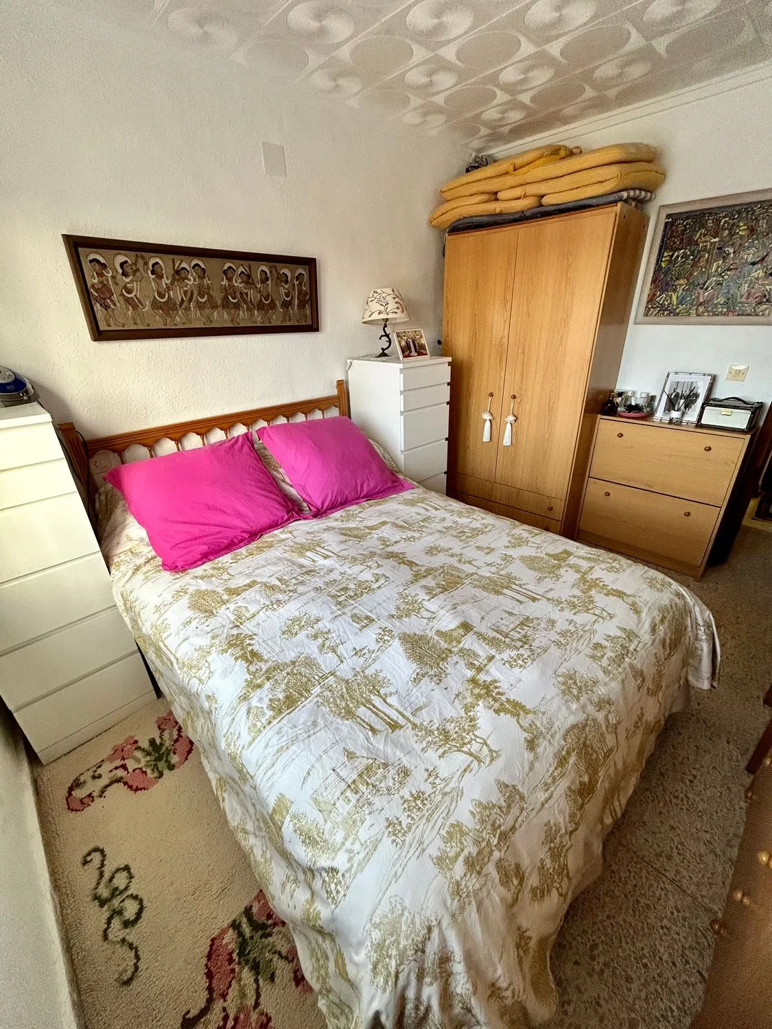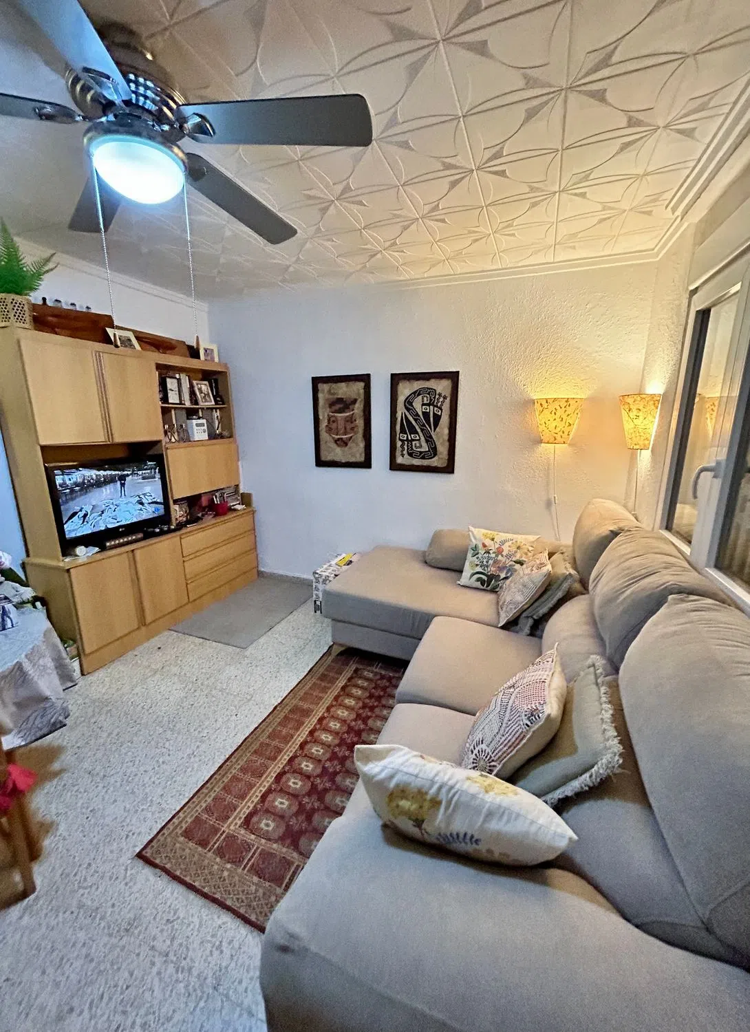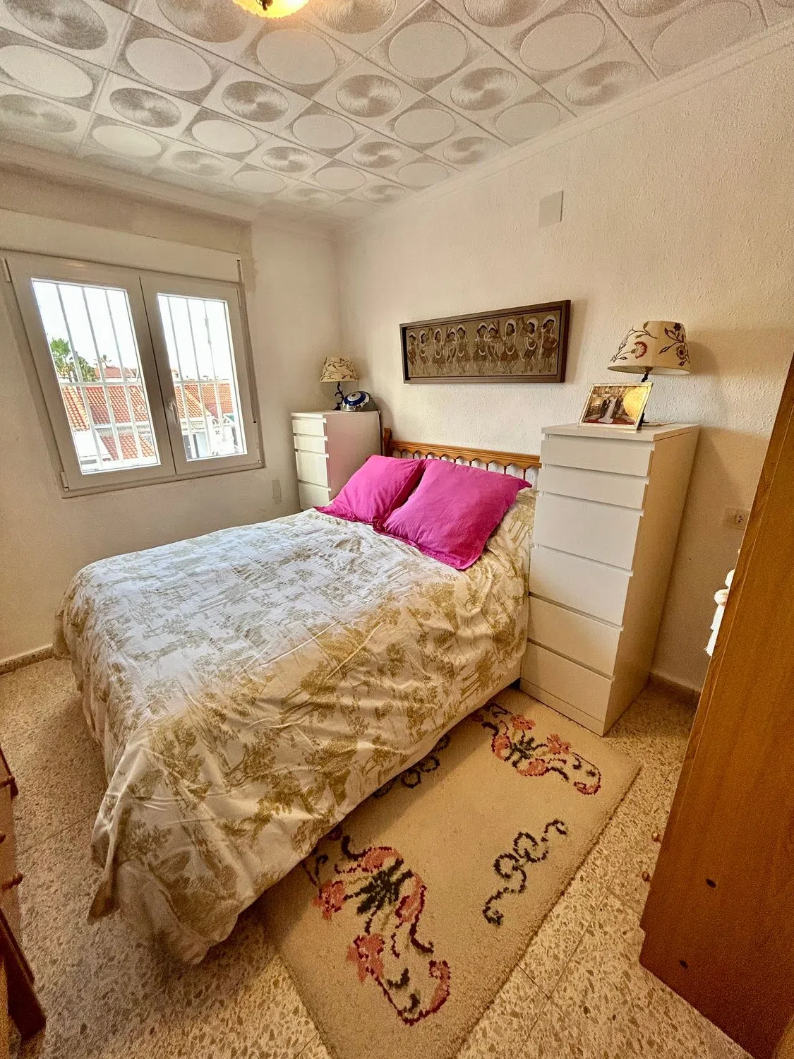 NO AGENCIAS. Acogedor bungalow en planta alta con gran terraza en planta baja con trastero Se vende bungalow adosado en primera planta en la tranquila urbanización Torreta III (Torrevieja). La vivienda está amueblada y lista para entrar a vivir, perfecta tanto como residencia habitual como segunda vivienda para vacaciones. Características principales: •Luminoso salón con gran ventilación gracias a ventanas en fachada delantera y trasera. •Cocina amueblada de Ikea, en blanco, totalmente equipada con electrodomésticos: nevera Balay en acero, campana extractora Ikea, vitrocerámica Balay y microondas. •2 dormitorios: •Principal con cama de matrimonio con arcón, dos armarios y mesillas Ikea. •Secundario con dos camas individuales y armario. •Baño con ducha. •Ventanas oscilo-batientes de PVC blanco. Espacios exteriores y extras: •Amplia terraza privada en planta baja con toldo, mesa, sillas y tendedero. •Trastero y cuarto de herramientas. Ubicada en una zona muy tranquila, sin ruidos, pero bien comunicada con servicios y a pocos minutos en coche del centro de Torrevieja y de sus playas. Ideal para quienes buscan una vivienda practica, soleada, con terraza y con ventilación con ventanas delanteras y traseras.