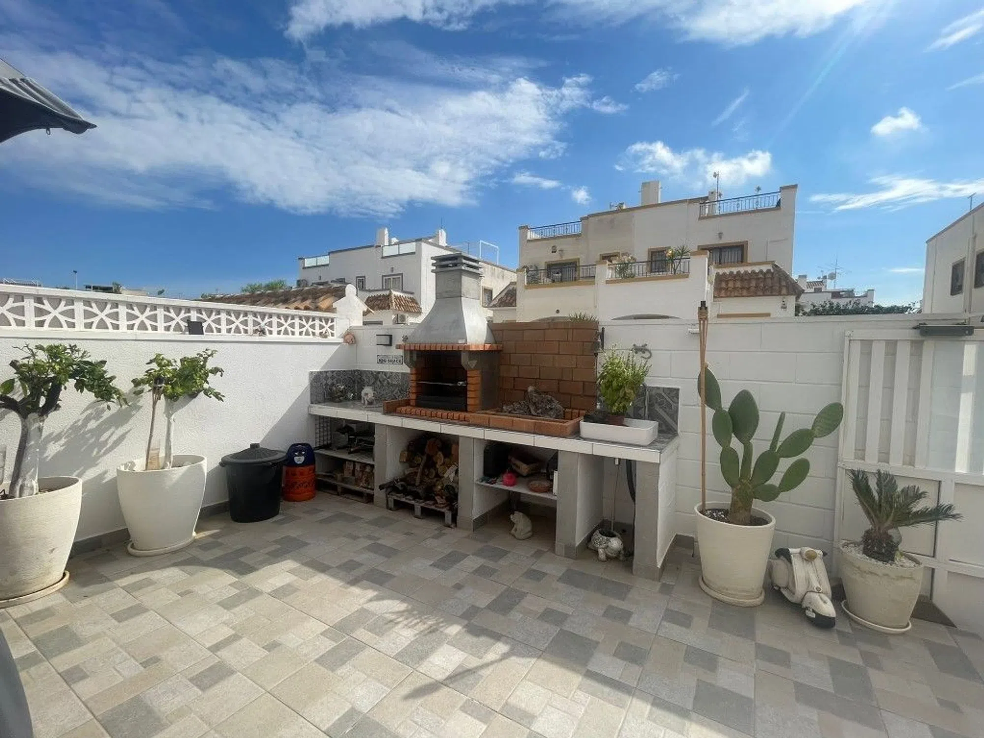 Este gran Quadro/adosado se encuentra en el Jardín del Mar X, a solo 5 minutos a pie encontrará un supermercado, varias tiendas diferentes, una clínica de animales, una tienda de deportes, bares, restaurantes, por nombrar algunos, y a tan solo 10 minutos encontrará el Carrefour y el centro comercial Habaneras. La propiedad tiene un gran jardín de baldosas orientado al sur, con mucho espacio para disfrutar de hermosos días soleados y noches de barbacoa con familiares Al entrar te recibe un salón/comedor y una cocina independiente equipada. Desde la cocina hay una puerta que conduce a una práctica habitación donde las escaleras dan al sótano y una puerta que da al jardín. La propiedad cuenta con tres dormitorios con armarios empotrados y dos baños, un dormitorio está en la primera planta y los otros dos en la planta superior, aquí también se encuentra el segundo baño. Fuera del dormitorio principal hay una gran terraza con vistas al jardín y a los alrededores. Una escalera desde esta planta conduce a la amplia terraza de la azotea. El sótano es de 54 metros cuadrados, un gran espacio para almacenaje, un taller de carpintería, una sala de televisión, una bodega o lo que necesites. La propiedad tiene acceso a la fantástica piscina comunitaria de grandes dimensiones y las zonas verdes. Economía: Precio sugerido 210.000 € + impuestos Gastos comunitarios: 160 € x 2 al año Impuestos/Importe: 256,50 por año Tasa de basura: 55 € x 2 al año SOBRE TORREVIEJA Torrevieja es una ciudad de la provincia de Alicante, en la región de la Comunidad Valenciana en España. La ciudad es un popular destino turístico que se encuentra a unos 40 minutos en coche de la ciudad de Alicante y del aeropuerto. Torrevieja fue originalmente un pequeño pueblo de pescadores, y hoy en día es uno de los mayores productores de sal de Europa, Torrevieja ha sido llamada anteriormente la 'ciudad de la sal', pero en los últimos años la ciudad también ha sido llamada la 'ciudad del deporte', debido a los grandes estadios deportivos que se han construido en los últimos años. Fruto de esta fantástica aventura, Torrevieja fue una de las cuatro ciudades organizadoras de la Copa del Mundo de Balonmano Femenino 2021. Cuando vives en Torrevieja, estás a pocos pasos de playas de arena blanca y alargadas con un sello de 'bandera azul', como indicación de la alta calidad del agua, entre otras cosas. En las inmediaciones y, a menudo, 'justo fuera' de la puerta, encontrará una gran selección de tiendas locales, restaurantes, cafeterías, centros comerciales, parques verdes, el puerto y el paseo marítimo. Si buscas una zona con vida todo el año y un microclima saludable con 320 días de sol al año, esta podría ser para ti. ref:KP4295.
