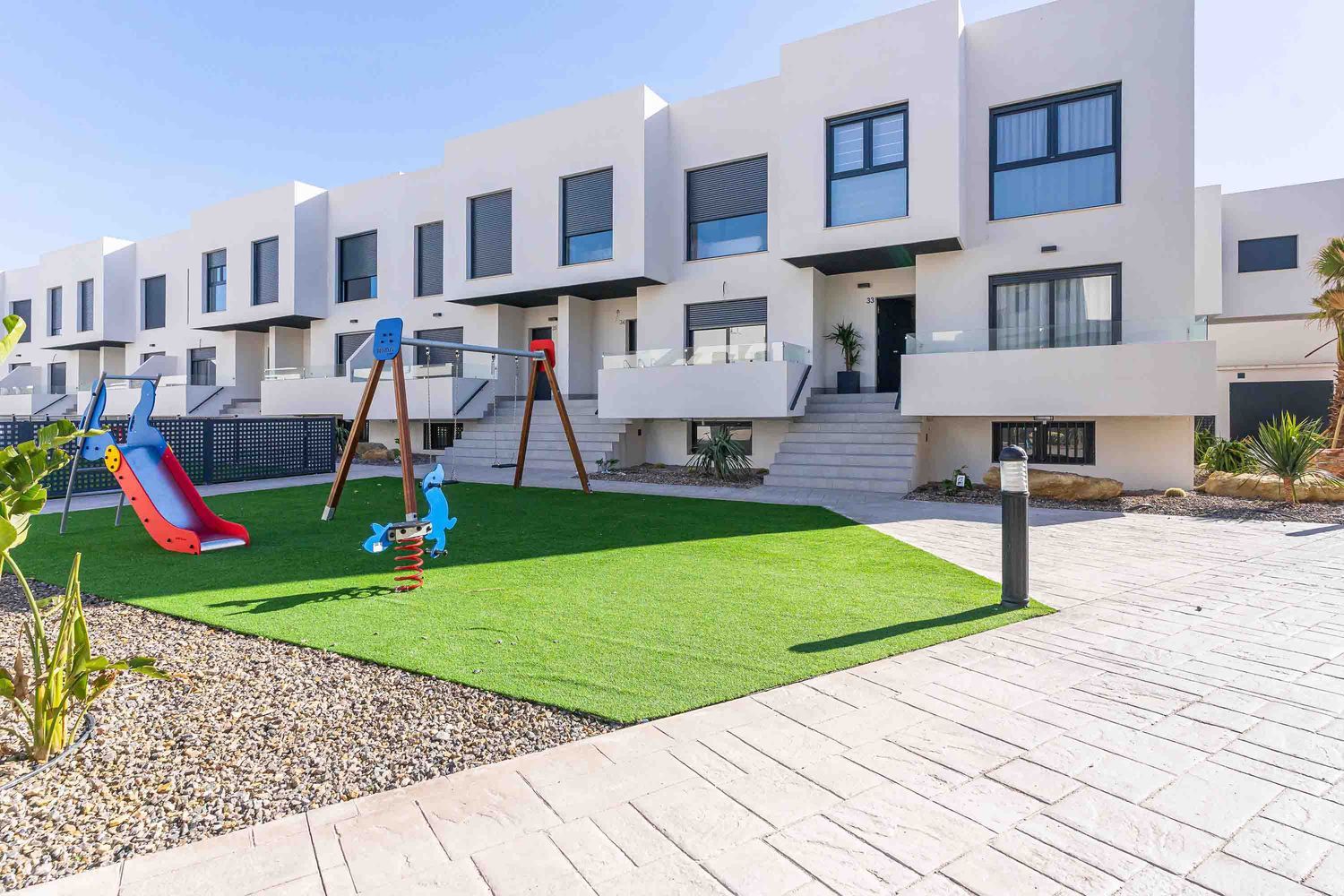 Residencial Portobello constará de 105 dúplex con sótano ubicadas a unos escasos 100 metros de la playa en Almerimar. Las dúplex cuentan con porche, terraza, jardín, cocina independiente, salón comedor y zona de ocio.Situadas en una zona residencial con piscinas comunitarias, zonas infantiles y peatonales; próximo al residencial Marina San Miguel.Las viviendas en Residencial Portobello serán de 4 dormitorios con un diseño mediterráneo, amplios ventanales y espacios llenos de luz. La calidad de la construcción y la amplia gama de servicios hacen que puedas disfrutar de tu vida en familia.Cerca de Residencial Portobello podrás encontrar todos los servicios necesarios para disfrutar como el parque natural de Punta Entinas Sabinar, el segundo mayor puerto deportivo de Andalucía, playas y paseo marítimo de Almerimar a unos pocos minutos.