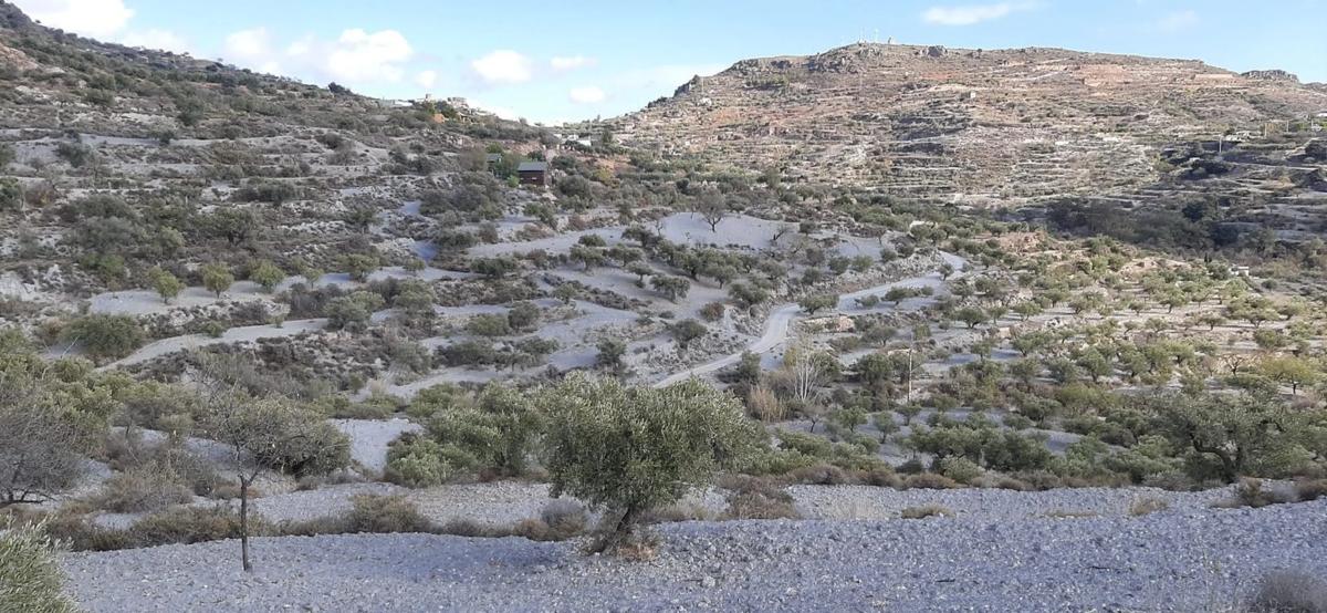 El terreno tiene olivos.