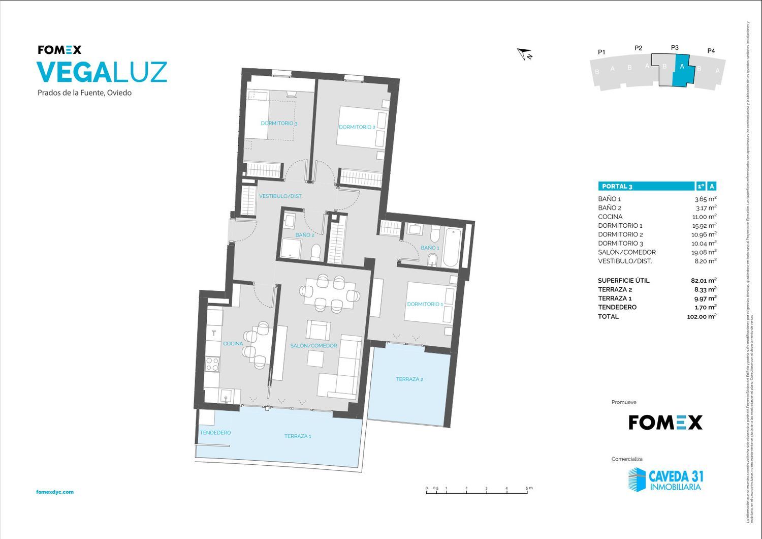 EN CONSTRUCCIÓNFOMEX VEGALUZ es una promoción de obra nueva situada en Prados de la Fuente, la nueva zona residencial de Ciudad Naranco. Una entorno único a los pies de la pista Finlandesa, a menos de diez minutos caminando del centro de Oviedo. La zona cuenta con una gran oferta de servicios: centro de salud, centros educativos públicos y concertados, instalaciones deportivas, supermercado, etc. Además, está comunicada con el resto de la ciudad y a escasos metros de la Ronda Exterior que da acceso al HUCA, a la A-8 y a la AS-II con acceso directo a las áreas industriales y a Gijón.ÚLTIMAS VIVIENDAS DISPONIBLES de 1 y 3 dormitorios con TERRAZA con orientación Sur-Oeste. Todas incluyen una plaza de garaje y un trastero. Posibilidad de adquirir una segunda plaza de garaje.La urbanización privada cuenta con pista de pádel, zonas de juegos infantil y merendero.El edificio tiene calificación Energética A, lo que supone un ahorro energético y económico compatible con el cuidado del medio ambiente.Con la garantía de la constructora Emilio Cueto.Infórmate sin compromiso.