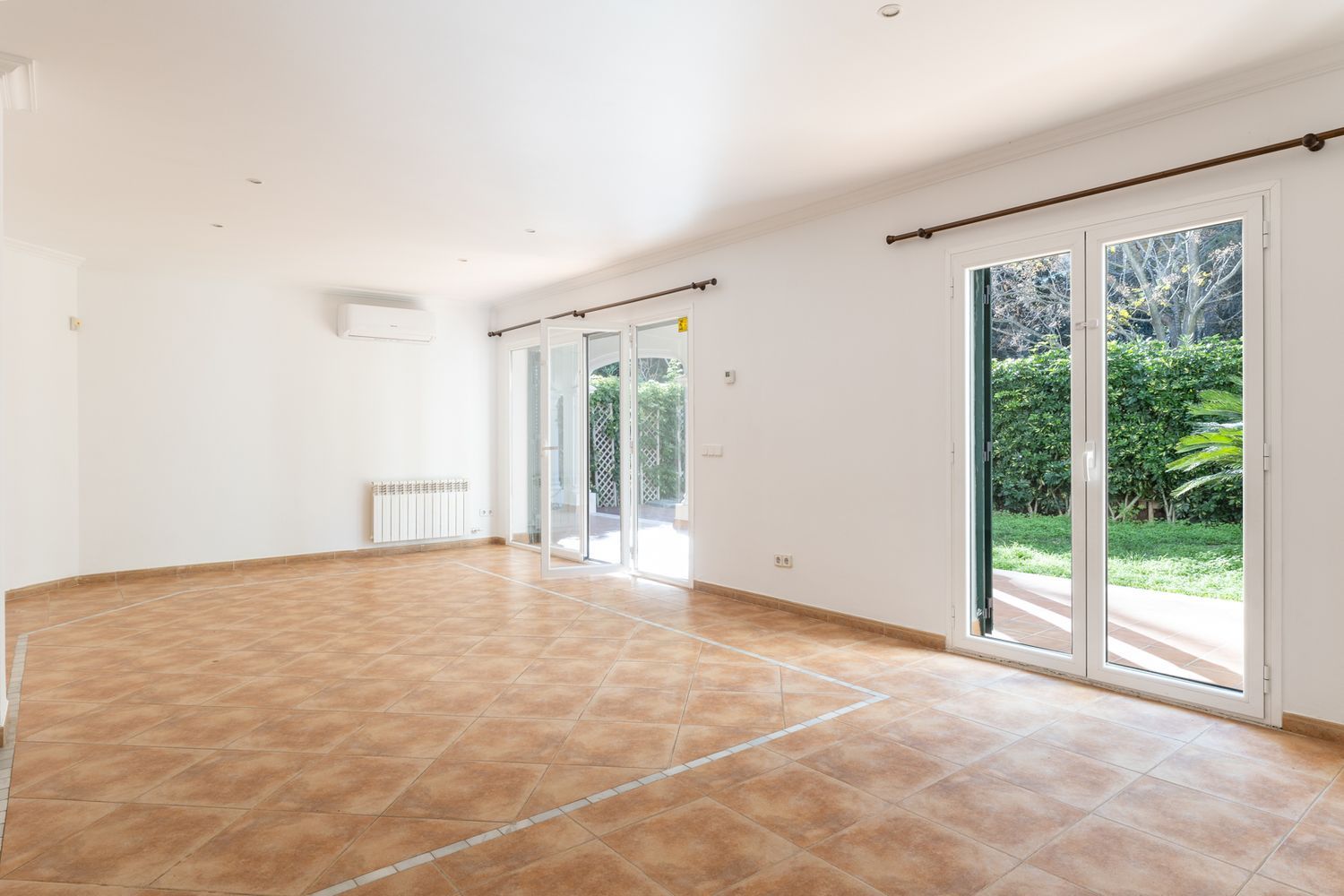 En un barrio tranquilo y residencial, en Cas Catala, en una residencia exclusiva con una piscina comunitaria, a poca distancia de todo tipo de comercios, colegios y zonas verdes encontramos este piso de dos plantas con jardín privado y calefacción central en alquiler.La vivienda se entrega sin amueblar y cuenta con una superficie de aproximadamente de 215 m2Al entrar a la vivienda accedemos al amplio y luminoso salón comedor con ventanas panorámicas y con acceso directo a la terraza y al patio exterior. En esta misma planta encontramos una cocina amueblada independiente totalmente equipada, un aseo y una coladuría.La primera planta cuenta con un dormitorio principal doble con baño en suite con ducha y con acceso a la terraza espaciosa con vistas al bosque, un baño individual con ducha, y otros dos dormitorios y un vestidor.Además, la casa cuenta con calefacción central en toda la casa, aire acondicionado.La propiedad se encuentra en Cas Catala, una urbanización residencial tranquila y familiar, situada a tan solo 5 km de Palma y 15 km del aeropuerto.Disponible de forma inmediata.