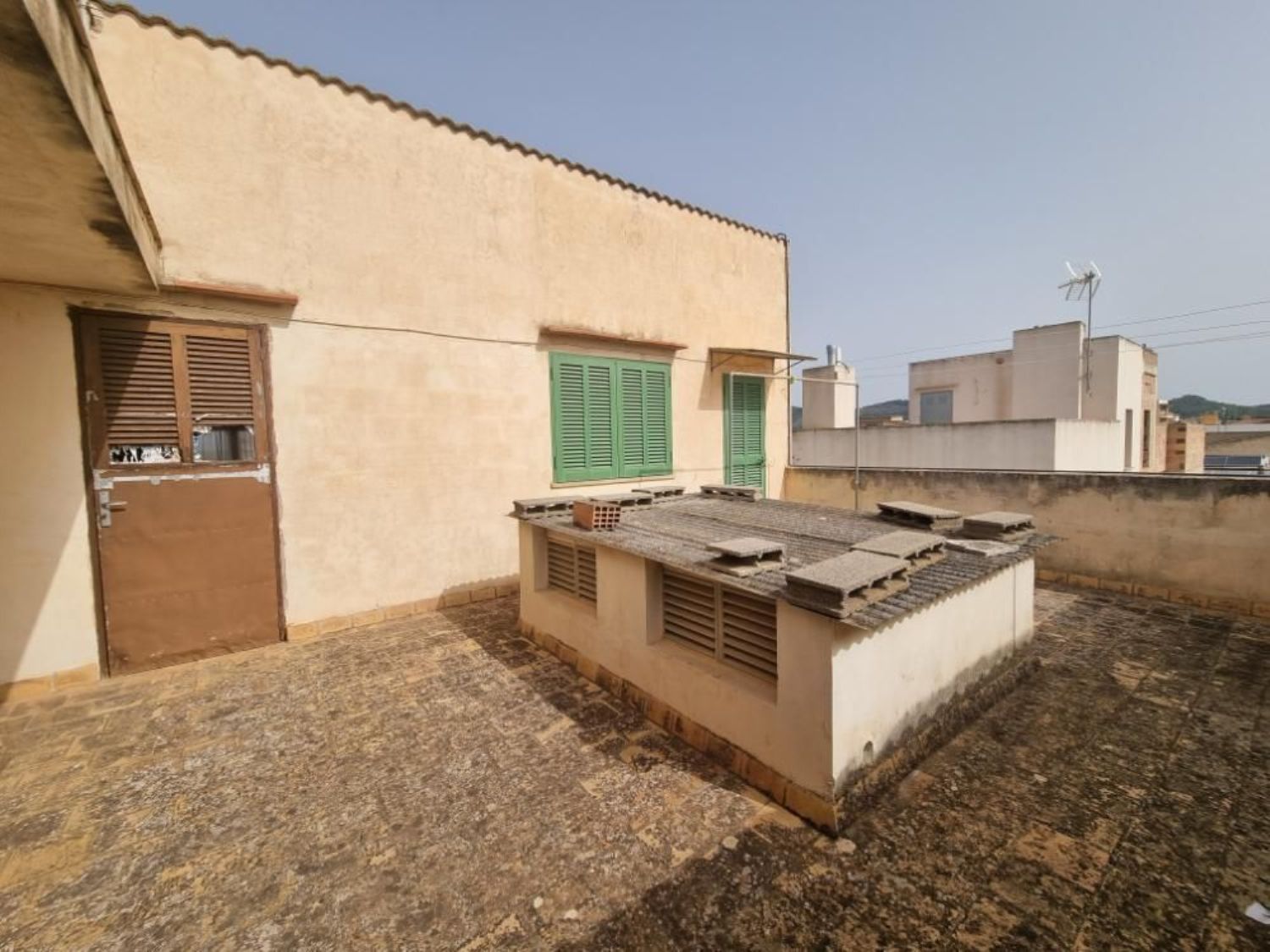La oportunidad de tener su vivienda con cochera de 100m2 se presenta AHORA y AQUI!En buena ubicación en Llucmajor mismo encontramos esta propiedad que consta de un garaje de unos 100m2 + porche y con patio de aprox. 57m2.La vivienda de unos 145m2 esta ubicado en primera planta incluyendo 3 dormitorios, 1 baño, salón y cocina amplia independiente con acceso a la terraza/porche de unos 22 m2. todo muy bien conservada y buenas calidades-y si piensa que esto es todo.. . pues no.. . en la tercera planta encontramos la azotea donde encontramos el trastero de tamaño estudio unos 17m2! donde se podría formar sala de estudio y más.. . una oportunidad total 345m2 por 370.000€ un precio muy atractiva, hay que verla!En la segunda planta esta ubicado la única otra vivienda de esta mini comunidad. La propiedad se encuentra en una zona tranquila a tan solo unos 10 minutos caminando de la plaza España y a 250m de varios supermercados, cerca al colegio, guarderías, parada de autobús y centro deportivo y pista de padel como mas servicios necesarios para nuestra vida cotidiana. Soliciten su cita hoy mismo al llamando o via whatsapp.estaremos encantados de enseñarle esta propiedad. [IW].