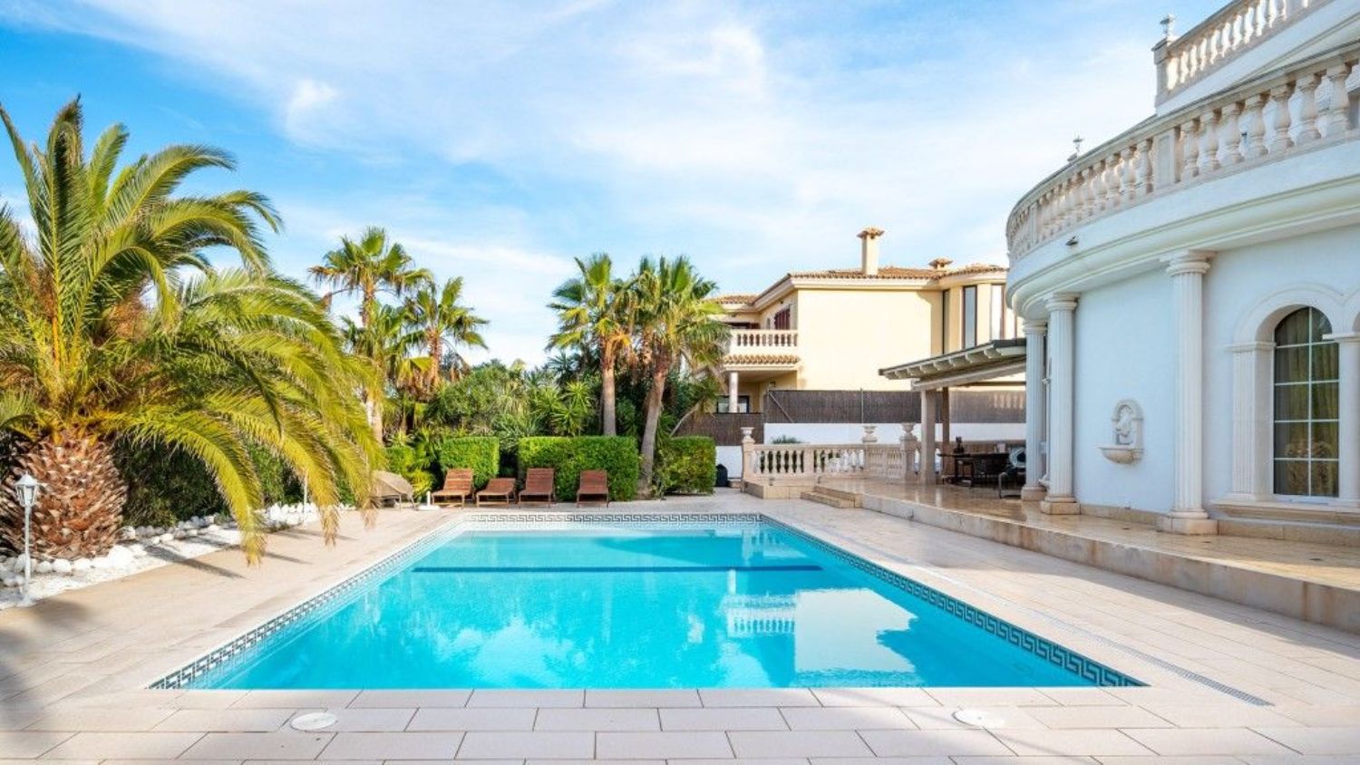 Esta extravagante villa de lujo en venta en Mallorca, ubicada en la tranquila urbanización de Sa Torre en el municipio de Llucmajor, ofrece la oportunidad de disfrutar de impresionantes vistas al mar desde sus amplias terrazas. La proximidad a un campo de golf de primer nivel, así como un acceso rápido al aeropuerto internacional y la ciudad de Palma en coche, hacen de esta ubicación un enclave privilegiado. La villa cuenta con 4 dormitorios, 3 baños y un aseo de cortesía, y destaca por su extraordinaria fusión de arquitectura y diseño interior. Su fachada principal se distingue por imponentes columnas que evocan la elegancia de los templos griegos, tejados a dos aguas y detalles decorativos en frisos sobre las ventanas. En el interior, se aprecian suelos de mármol, ventanas de mosaico, techos estucados y acabados de alta calidad como paredes de mármol, incrustaciones de pedrería de Swarovski y estuco veneciano. La mayoría de los muebles están incluidos en el precio de la propiedad. El extenso jardín, iluminado con tecnología LED, alberga una piscina de agua salada que proporciona un entorno privado ideal para relajarse. Entre las comodidades adicionales se encuentran el aire acondicionado, la calefacción central, ventanas de doble acristalamiento, armarios empotrados, una sauna, una bañera de hidromasaje, una zona de barbacoa y un garaje doble. Esta villa de lujo en Mallorca representa el equilibrio perfecto entre elegancia arquitectónica y comodidades modernas, ofreciendo un estilo de vida excepcional en uno de los destinos más codiciados de la isla.Localidad y lugares de interésLlucmajor es el municipio más extenso de Mallorca en la comunidad autónoma de las Islas Baleares. Perteneciente a la comarca del Migjorn, está a tan sólo 25 minutos en coche de la capital, Palma de Mallorca, y a unos 20 minutos del aeropuerto. Cuenta con centros turísticos de primer orden tales como Cala Pi, Cala Blava y El Arenal. En Llucmajor siempre ha habido una pujante agricultura y una numerosa cabaña ganadera, así como también uno de los núcleos industriales más importantes de Mallorca en la industria del calzado, hoy sustituida por la hotelera. También destaca la industria de embutidos, la licorera y cuenta con una destacada artesanía de piedra.
