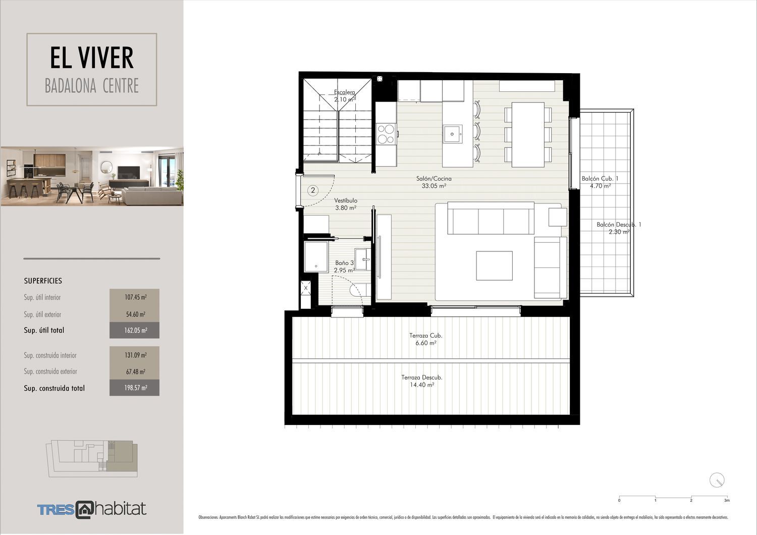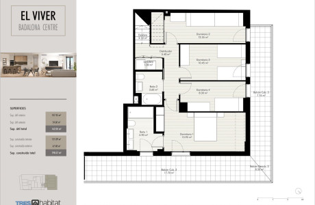 Fantástico ático dúplex de obra nueva, que se distingue por su excelente distribución invertida para tener la terraza a pie de salón, aprovechando al máximo los espacios.En esta vivienda única en la promoción, se ha apostado por optimizar los espacios y las distribuciones, convirtiéndola en un hogar ideal para cualquier familia.Está distribuida en planta superior con salón-comedor, cocina, un baño y amplia terraza de 21 m2. a la que se accede directamente desde el salón, en la planta inferior están ubicados los 4 dormitorios, uno en suitte con baño propio, otros dos dobles y uno individual con otro baño completo. Todos los dormitorios son exteriores y tienen acceso al gran balcón que rodea toda la planta.La altura de este ático esta entre la quinta y sexta planta del edificio.Tres Habitat te ofrece una promoción de 15 viviendas de 2, 3 y 4 dormitorios, trasteros, 1 local comercial y plazas de parking. El Viver Badalona Centre es un edificio residencial con acabados de primera calidad. Esta nueva promoción dispone de terraza comunitaria en cubierta, con excelentes vistas al mar y con piscina, zona solàrium, zona chill out y espacio social-gourmet.La entrada al edificio será desde el nº 1 de President Companys. La futura peatonalización, prevista para la calle Francesc Layret, fusionará la promoción con la zona más emblemática del centro. El Viver Badalona Centre es un edificio esquinero, con fachada a President Companys y a Francesc Layret, característica que permite que todas las viviendas que lo componen gocen de terraza o balcones grandes con vistas despejadas. El proyecto es obra del prestigioso estudio CC245 Arquitectos, diseñado con cuidado hasta el último detalle, la calidad y el diseño de vanguardia dan a esta promoción un espíritu propio inigualable.Aspectos a destacar:-Ubicación Premium en Badalona-Viviendas muy luminosas, todas con balcones o terrazas-Acabados modernos, estilo nórdico.-Eficiencia energètica A-Piscina en cubierta-Sólo 15 vecinos. Fecha de entrega de llaves: tercer trimestre 2024.