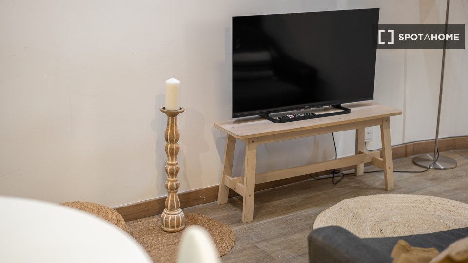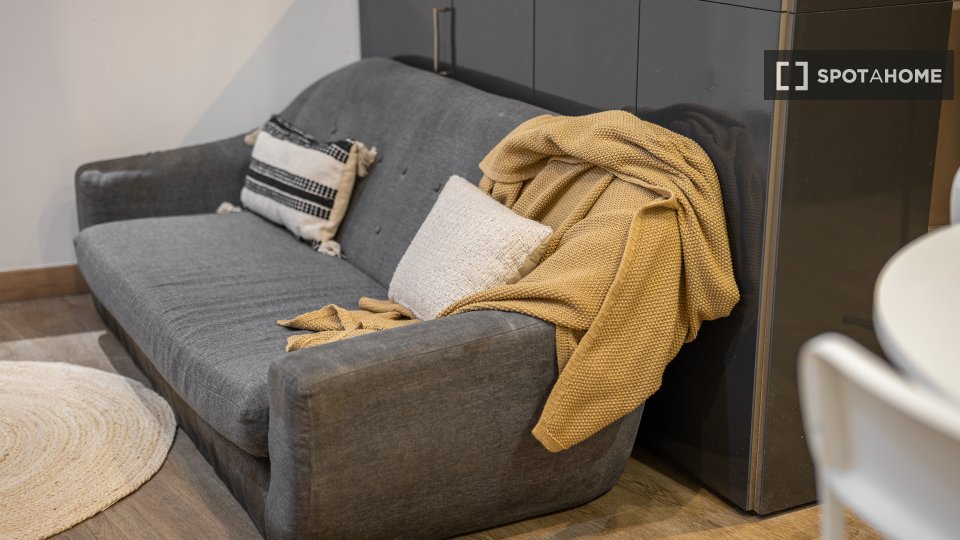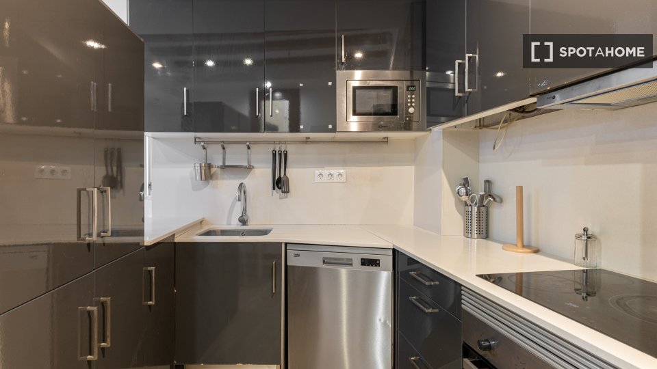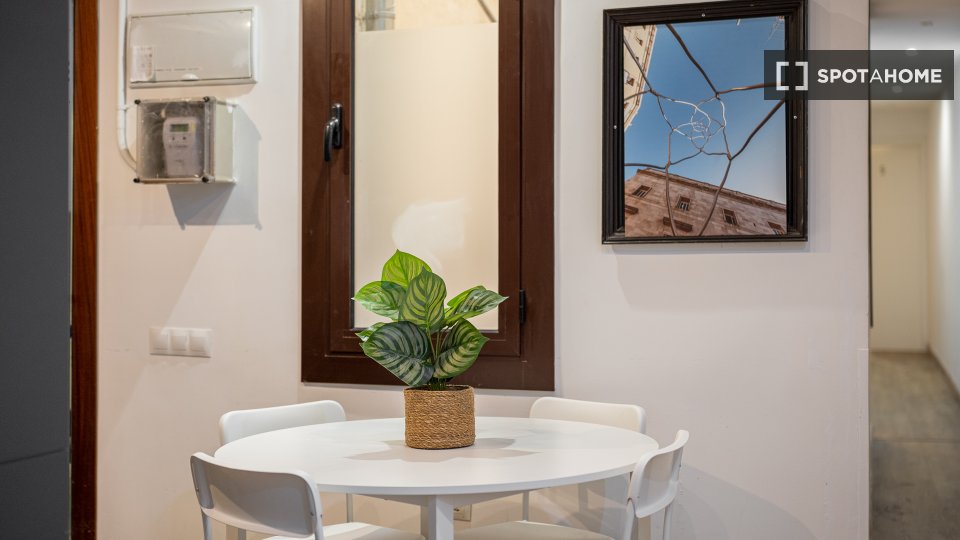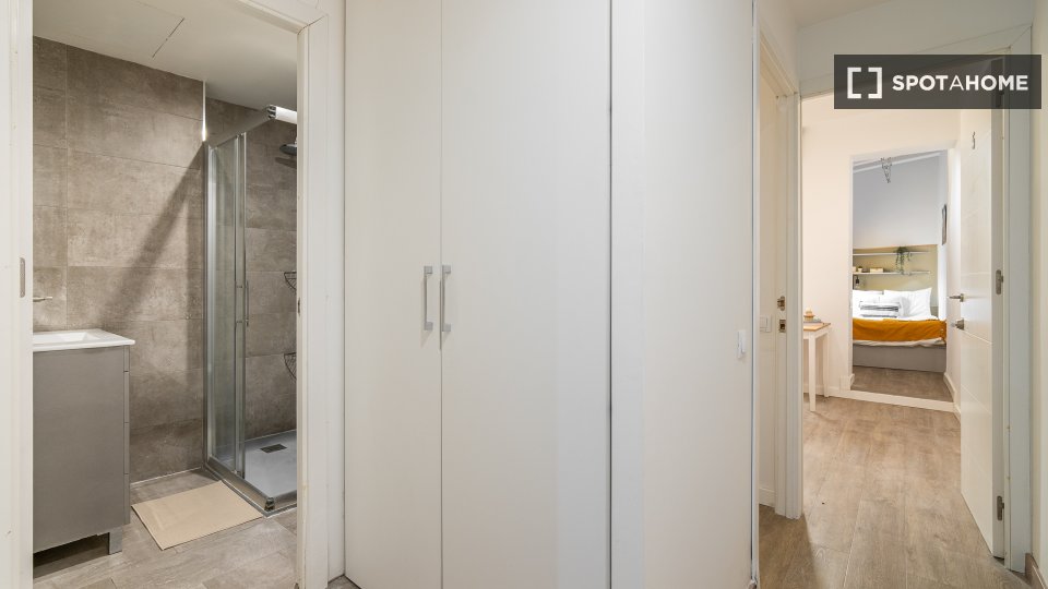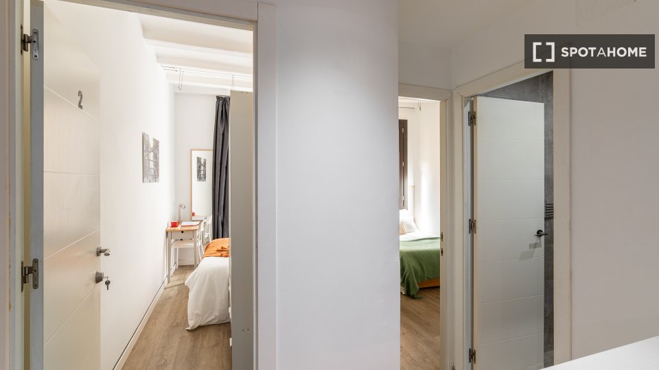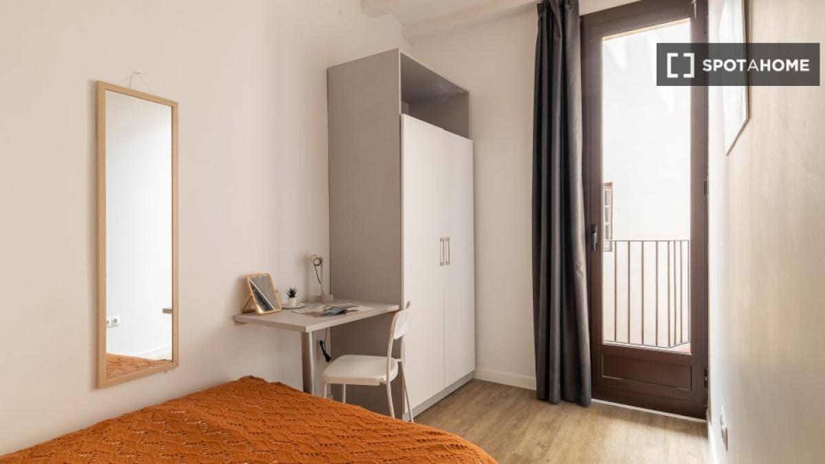 Este piso compartido en El Raval, Barcelona, ofrece una habitación equipada para una vida cómoda. El apartamento cuenta con aire acondicionado central, calefacción central y un interior completamente amueblado, listo para recibir a sus inquilinos. Las instalaciones compartidas incluyen lavadora y cocina totalmente equipada con lavavajillas y horno. El wifi está incluido, pero los demás suministros se pagan directamente al propietario. Esta propiedad ha sido revisada por Spotahome.