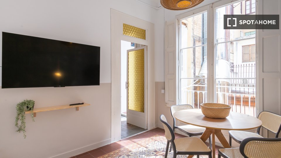 El piso está ubicado en Sant Andreu, con múltiples atracciones en las inmediaciones. Disfruta de la gastronomía mediterránea local en Casa Arana o Versalles, o explora opciones como Biopassió y Xurreria Sant Andreu. Supermercados como Dia están cerca para comprar lo esencial. Además, atracciones como la Fuente Cibernética y Acció Cultura Viva están a poca distancia a pie, lo que te ofrece una amplia gama de oportunidades para explorar la cultura.