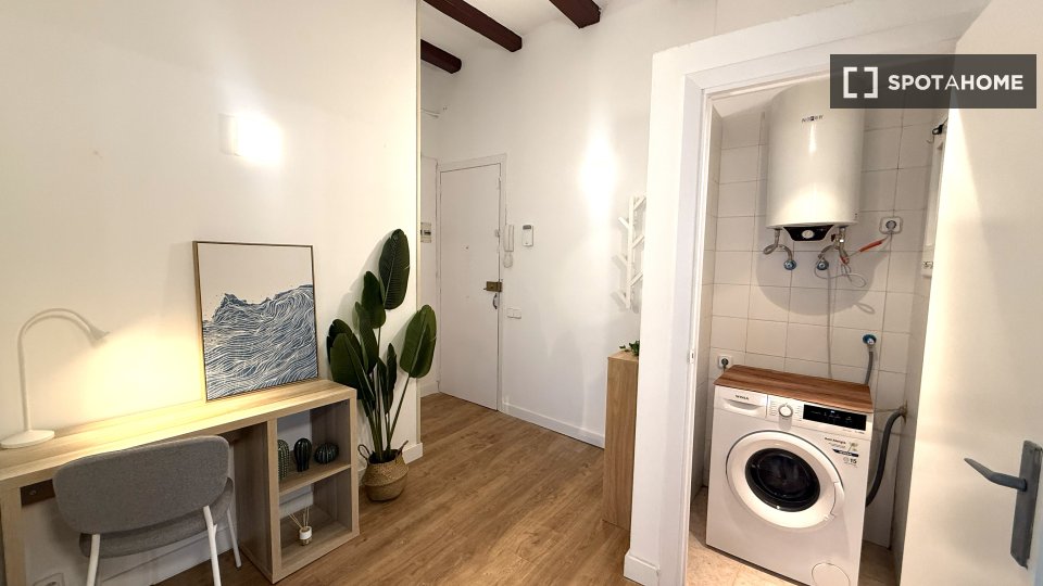 Descubra este fantástico estudio ubicado en el vibrante barrio de El Raval, Barcelona. La propiedad se entrega completamente amueblada e incluye cocina equipada con electrodomésticos básicos, balcón para disfrutar del aire libre y aire acondicionado individual para adaptarse a las diferentes condiciones climáticas. Se admiten parejas, lo que lo convierte en una opción ideal para compartir vivienda. Todos los servicios, como electricidad, agua, gas y wifi, están incluidos en el alquiler.