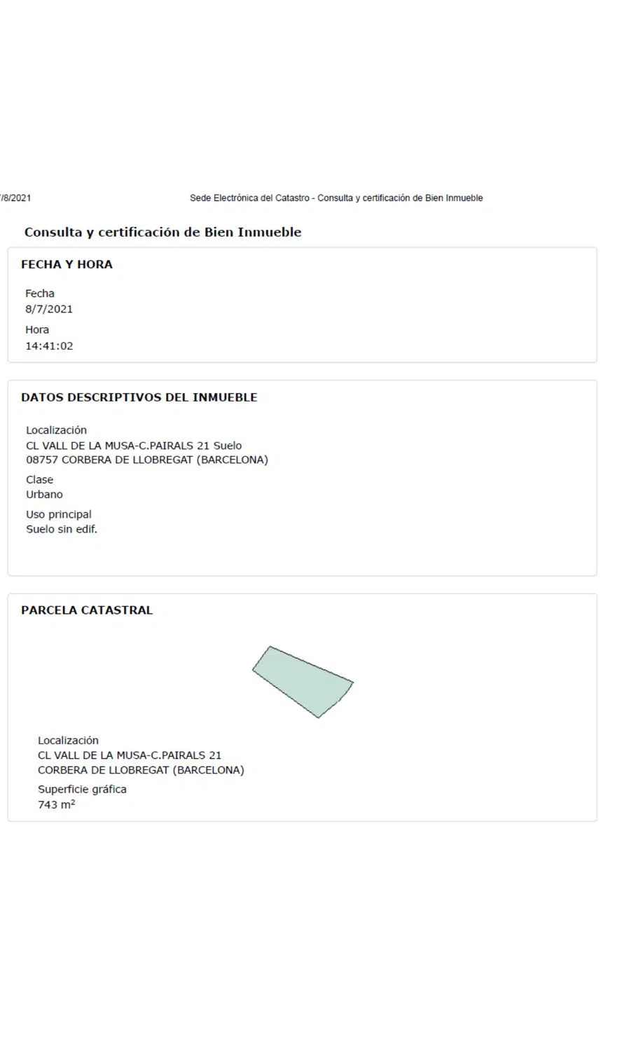 Terreno urbanizado en Corbera de Llobregat, esta vallado. Totalmente llano, sin árboles. Calle tranquila sin salida. Muy bien situado. Soleado todo el día. Aproximadamente 743m2. Se puede construir y con una atura de planta baja más dos. Tipo de parcela a3. Carrer de la Vall de la Musa 08757 Corbera de Llobregat. Terreno urbanizado en Cases Pairals Situado a 20 minutos de Barcelona. La urbanización dispone de todos los servicios esenciales. Se dispone de estudio topográficos. Soy particular, venta directa sin intermediarios.