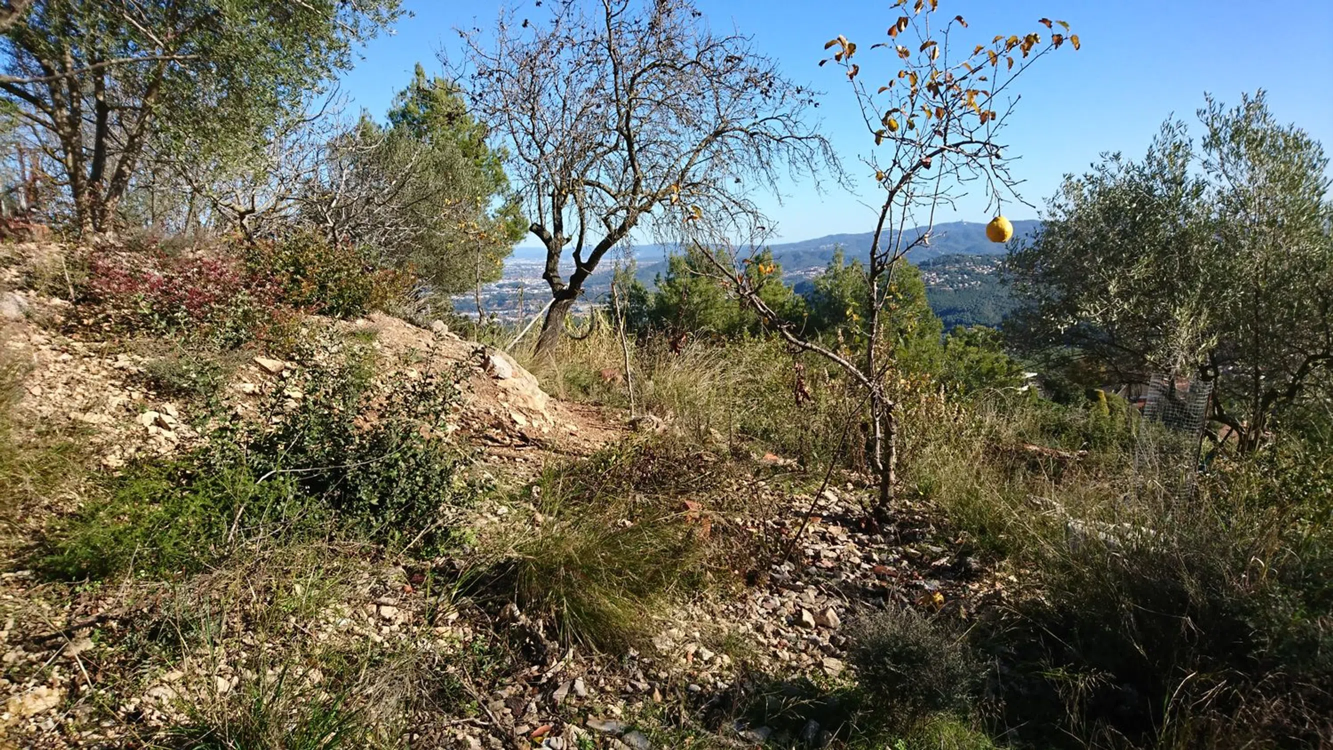 Magnificos terrenos (dos parcelas) con increibles vistas a mar y montañas, a Barcelona, Tibidabo, Montjuic, etc. Los terreno se situan en la Calle de Eucalipptus, No 148 y No. 150, Urbanización de Creu de Aragall Jr. en Corbera de Llobregat. Los terrenos son urbanos, se puede construir hasta 3 plantas de altura, cuentan con una inclinación característica de la zona, ideal para construcción de viviendas escalonadas. 20% de la parcela construible, cuentan con punto de agua y luz. Tienen arboles frutales tal como olivos, almendras e higos. Se venden juntos. Por separados, No 148 es a 43000 euros y el No. 150 a 37,000.