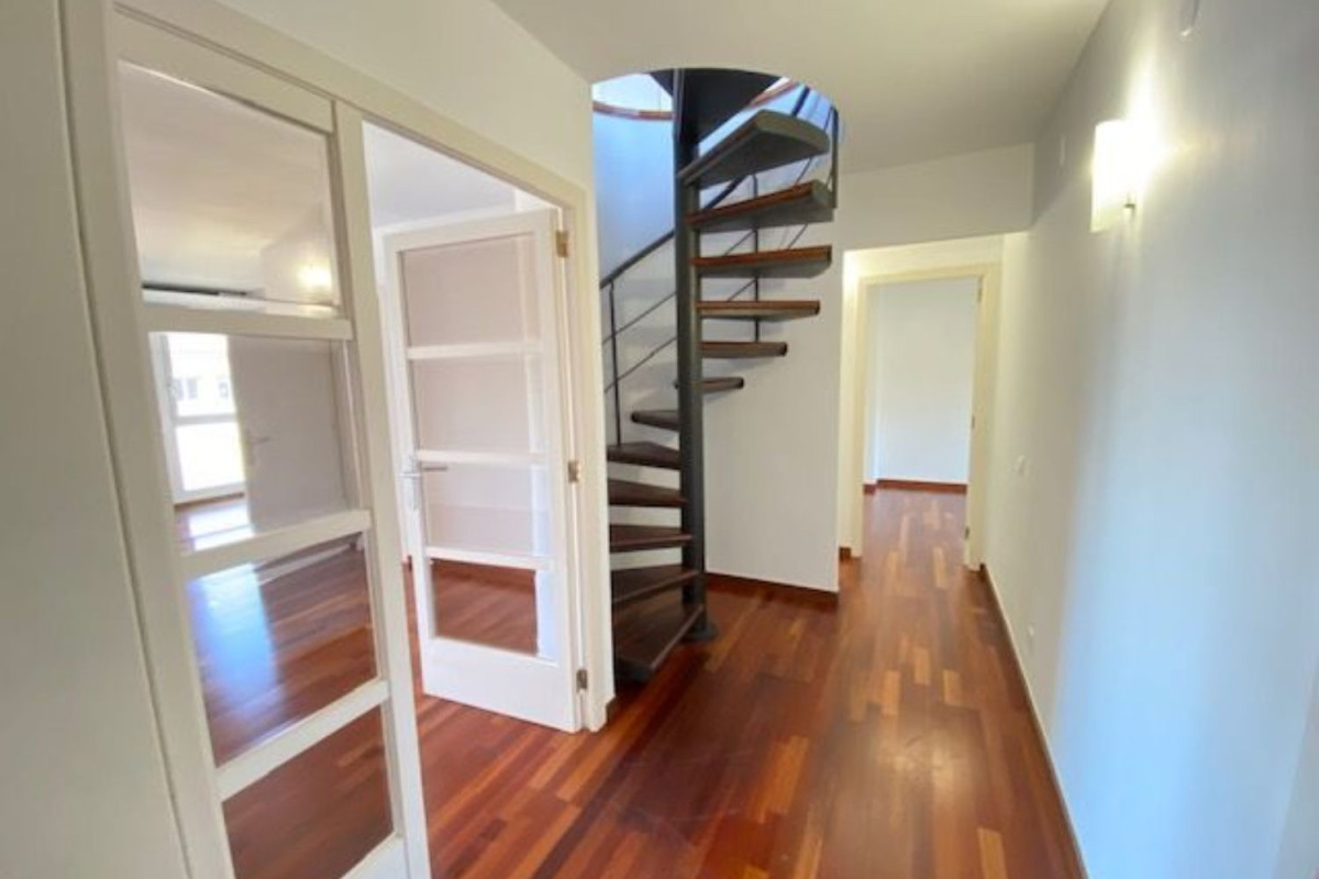 Espectacular Ático dúplex, distribuido en dos plantas. recibidor, amplia cocina office, salón comedor con salida a balcon, 3 habitaciones, 1 baño completo, aseo de cortesia.Parte superior: 1 habitación doble o sala polivalente, 1 baño con ducha. 2 Terraza con magnificas vistas mar y montaña.Plaza de parquin en la misma finca. Suelos de parque, calefacción por radiadores, aire acondicionado.Zona ajardinada, conserje diurno y vigilancia nocturna.Con todo tipo de comercios en el entorno, parques, colegios internacionales americano, Alemán etc. Rapido y fácil acceso a autopistas y rondas.