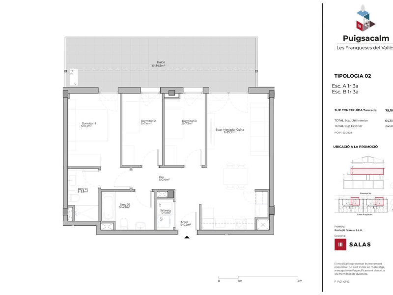 Puigsacalm es una promoción de obra nueva ubicada en el casco urbano de Corró d’Avall, en Les Franqueses del Vallés, a un paso del Ayuntamiento y con todos los de servicios a su alrededor. Corró d’Avall, además, cuenta con una excelente comunicación tanto en coche como en transporte público con Granollers, con Barcelona y con el resto de los municipios colindantes.Las viviendas cuentan con 2 o 3 dormitorios, distribución funcional y abundante luz natural. Destacan las grandes terrazas de las viviendas en planta baja y de los áticos dúplex.Además, la promoción gozará de un alto nivel de calificación energética, lo que permitirá beneficiarse de:Mayor ahorro en las facturas de suministros gracias a un menor consumo y mantenimiento.Mayor confort térmico y acústico gracias al buen aislamiento térmico que evita la entrada de calor en verano y de frío en invierno.Grandes ventanas herméticas que permiten el paso de luz natural.Menores emisiones de CO2 para proteger nuestro planeta.Puigsacalm se completa con garaje y trasteros en la planta sótano del edificio.