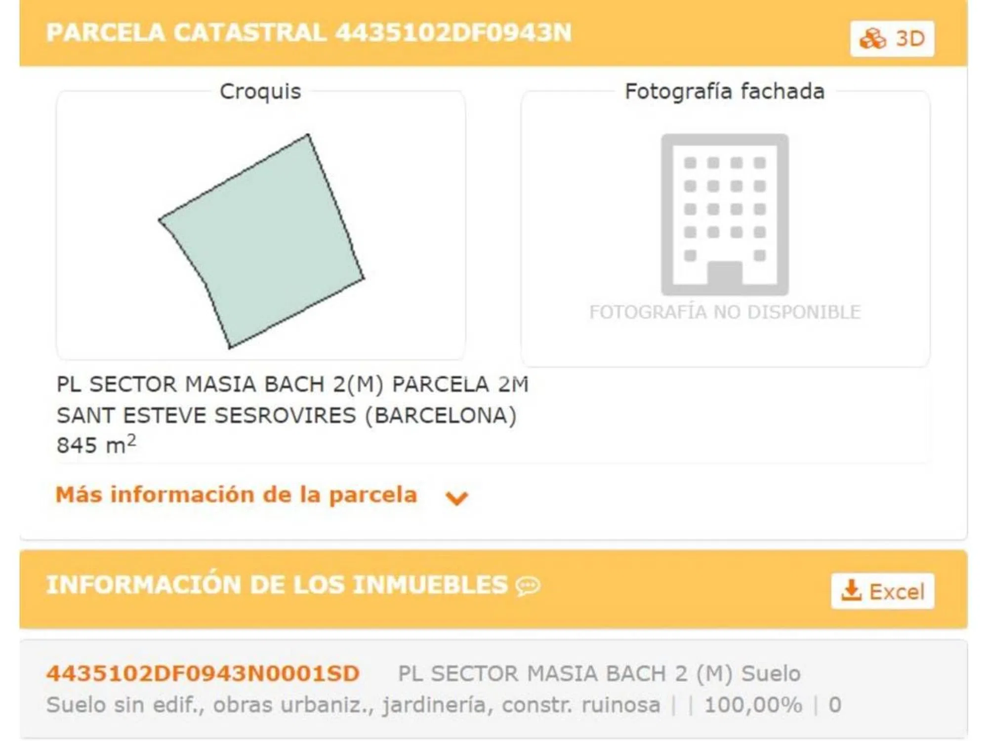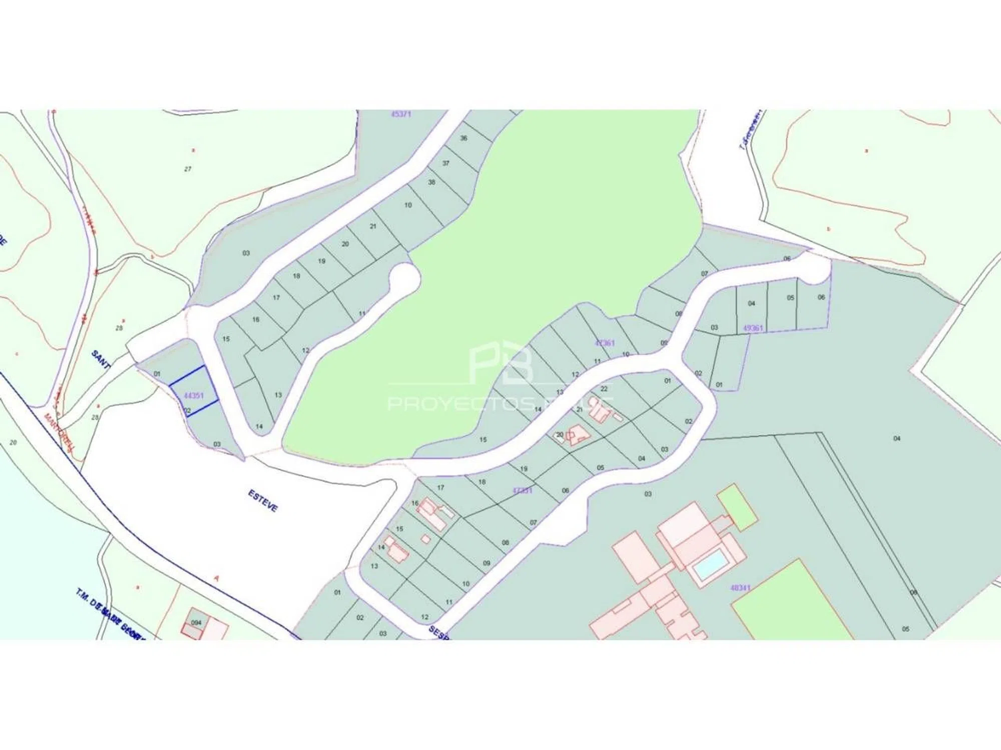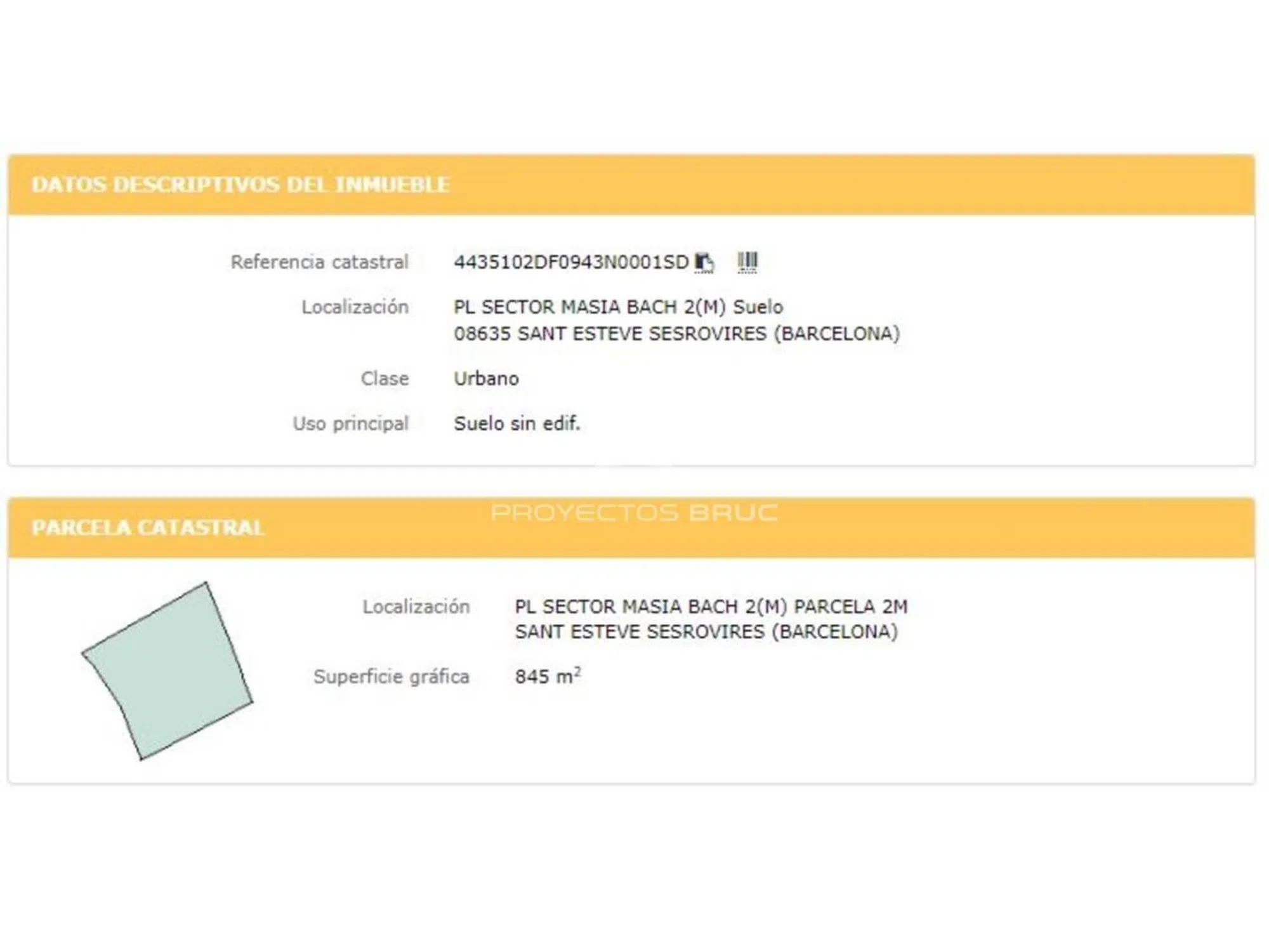 Se trata de un suelo en la Urbanización Masía Bach, en el munipicio de Sant Eteve Sesrovires, en la provincia de Barcelona. Son Suelos urbanos de uso residencial pegados a los campos de Golf de Club de Golf de Barcelona, Disponen de una superficie que va desde los 850 m2 hasta los 1.400 m2. La topografía natural del terreno es llana, con fachada a una calles y vista al campo de Golf. Se trata un terreno urbano consolidado La caracterización urbana, es que se trata de una zona con desarrollo finalizado, con una consolidación de nivel medio alto. Existe pavimentación, alcantarillado, suministro de agua, suministro de luz, existe suministro de gas por red general, dispone de postes de servicio telefónico, alumbrado público, la conservación de la calidad de las infraestructuras colindantes es de nivel medio.