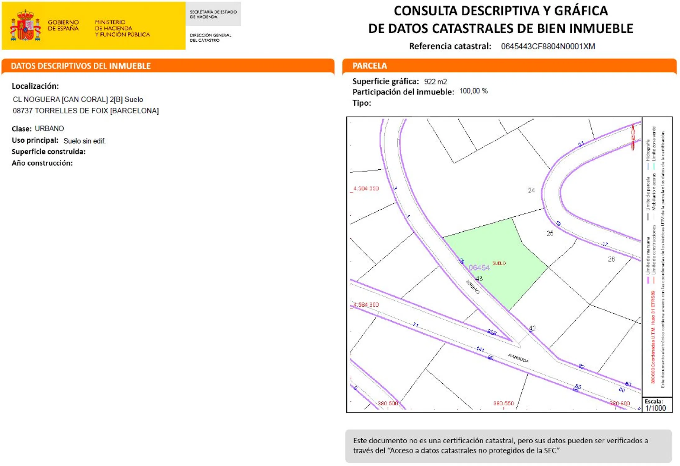 Se venden conjuntamente las 2 parcelas anexas de 922 y 615 m2. Suelo urbano en la localidad de Torrelles de Foix. Se encuentra situado en la urbanización Can Coral de Torrelles de Foix. Cuenta con una superficie de 1.537 m² y permite una edificabilidad aproximada de 580m² para uso residencial de vivienda unifamiliar aislada con 2 plantas sobre rasante y 1 bajo rasante.