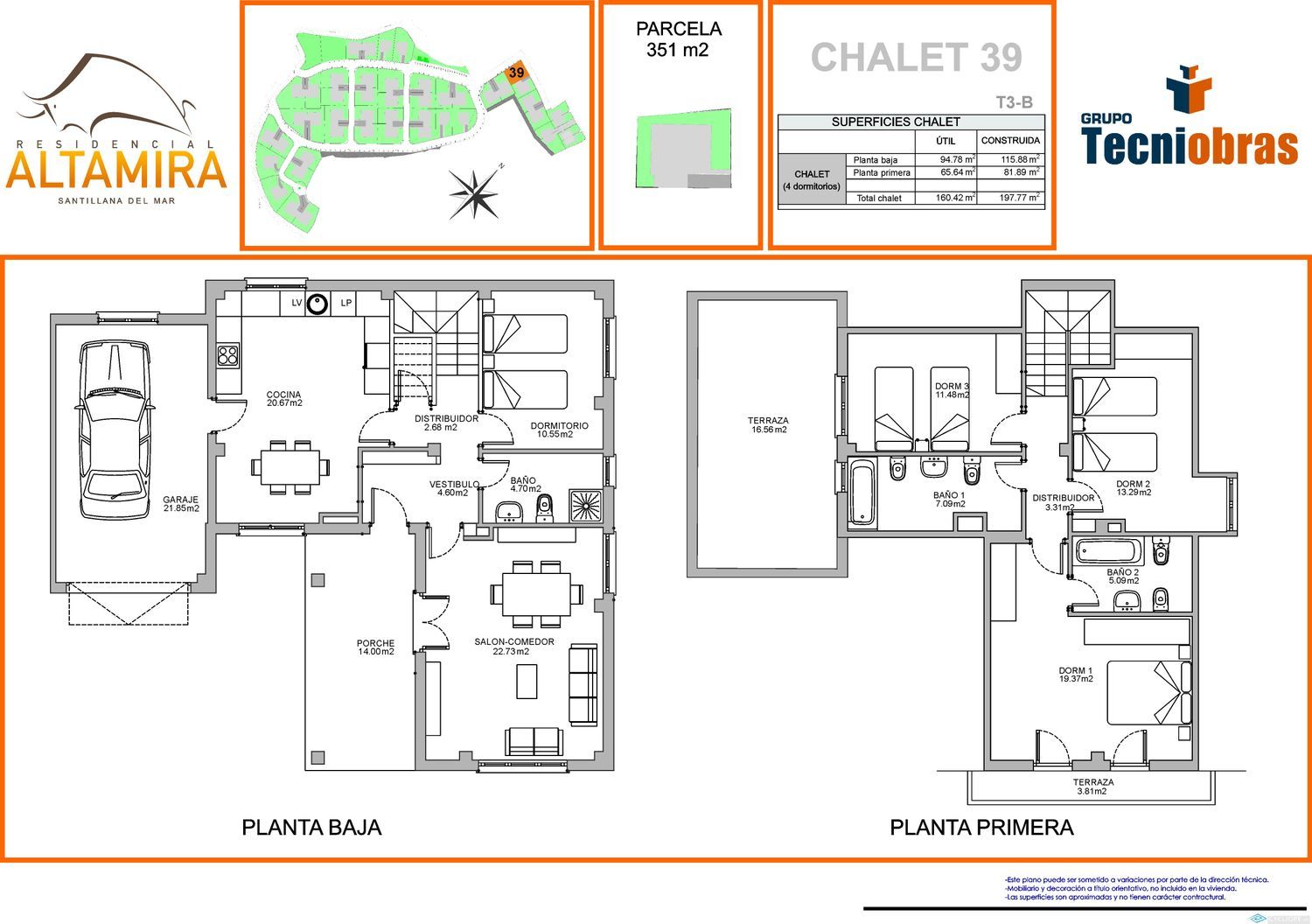 Santillana del Mar y Altamira se han convertido por méritos propios en marcas turísticas con mayúsculas. Su potencial de ocio y residencial atrae cada año a cientos de miles de visitantes que disfrutan de sus atractivos naturales, de su gastronomía y de su destacado sector de ocio y entretenimiento. Completan esta espectacular oferta turística la belleza de su paisaje, la proximidad a algunas de las más renombradas playas de Cantabria y la indudable calidad de sus comunicaciones. Todo ello convierte este municipio en uno de los emplazamientos más demandados para vivir.Y es precisamente en Vispieres, localidad perteneciente al municipio de Santillana del Mar, donde Tecniobras construye Altamira Residencial, una de las más atractivas urbanizaciones de Cantabria, ubicada en un punto estratégico del municipio, apenas a cinco minutos del famoso casco histórico de Santillana y a diez minutos de playas y zonas de ocio.Construido sobre una elevación del terreno, Altamira agrupa 48 espectaculares chalets pareados de una extraordinaria calidad, con un completo equipamiento, un cuidado entorno y cerrado perimetralmente para seguridad de sus residentes. Cada vivienda dispone de 4 dormitorios, amplias terrazas y acceso a jardines privados para disfrutar del exterior de la vivienda. Un lujo desde el que podrás contemplar la belleza de los paisajes del norte.Bienvenidos a Altamira.Bienvenidos a Tecniobras.CARACTERÍSTICAS DE LA PROMOCIÓN.- 48 chalets pareados de 2 y 3 alturas.- 4 dormitorios, 3 baños.- Salón con acceso a jardín.- Terrazas en todas las viviendas.- Jardines privados entre 200 m² y 750m².- Entorno residencial nuevo.- Carpintería exterior alto-eficiente.- Pre-instalación domótica.- Tecnología High Tech residencial.- Materiales de construcción certificados.- Paisajismo residencial.