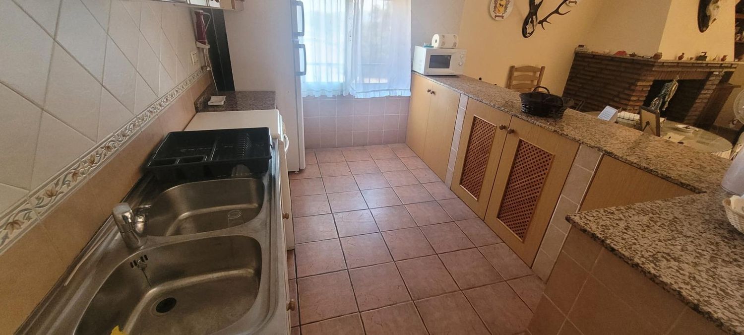 Casa de campo en termino municipal de El Guijo ( Córdoba), 1,9 hectáreas (3 fanegas) de encinas a pie de carretera con sondeo legalizado con bomba propio, luz de placas solares.4 Dormitorios, 1 baño, cocina con barra americana equipada, totalmente amueblado, gran salón con chimenea.Construcción del año 2.000.Ref: CO16-01507.