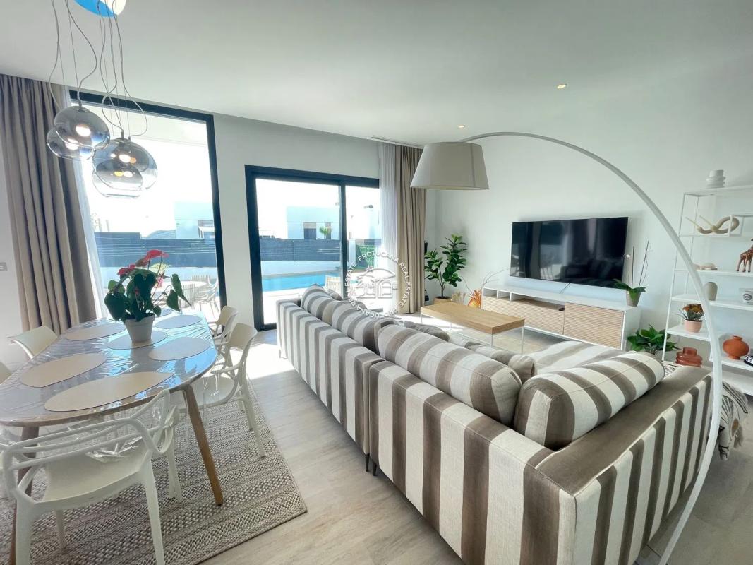 Exclusiva Villa de obra nueva con piscina privada en parcela de 334 m² y 260 m² construidos en 3 plantas, diseñada para ofrecer confort, amplitud y luminosidad. Dispone de un espacioso salón...