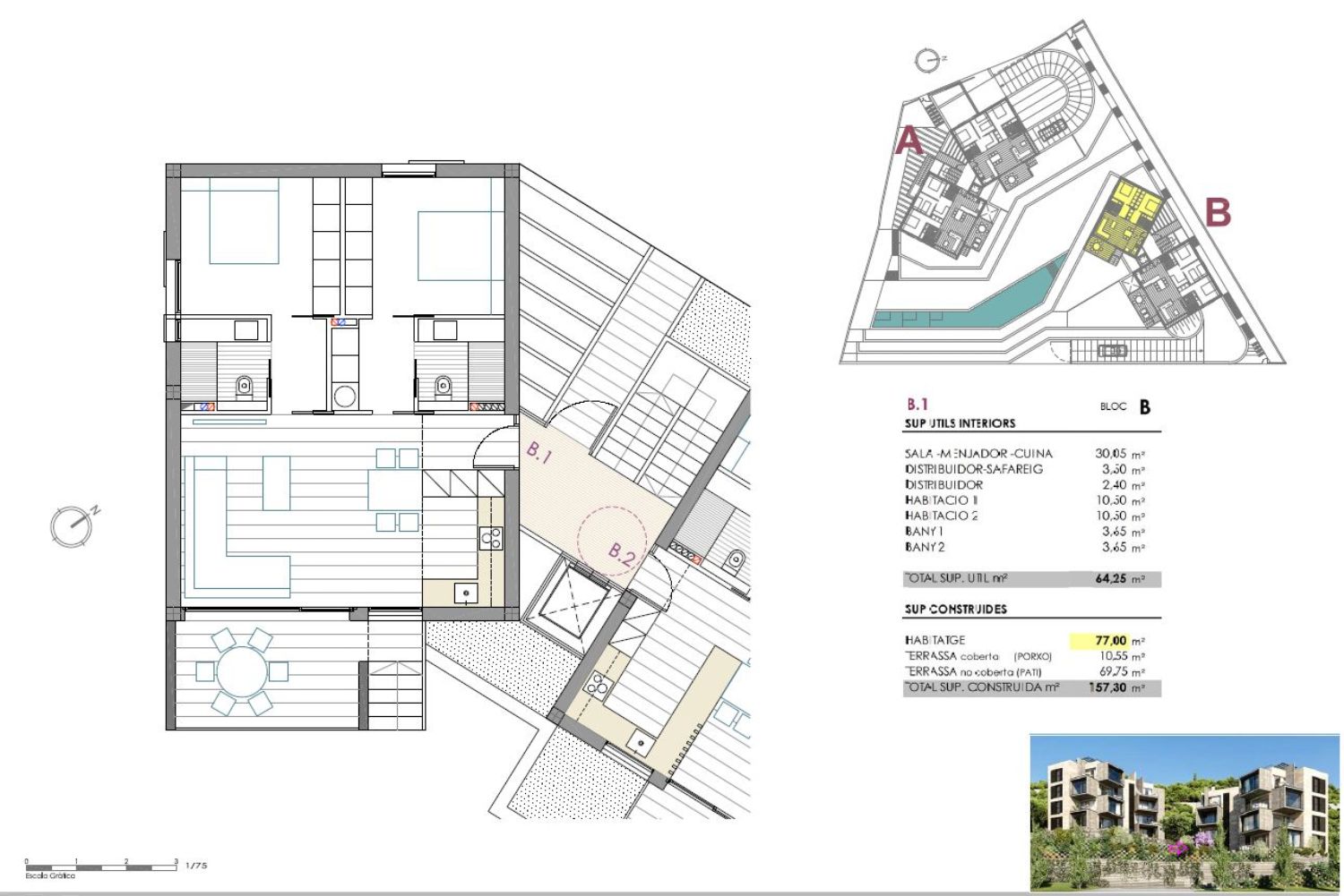 m2 construidos77 m²