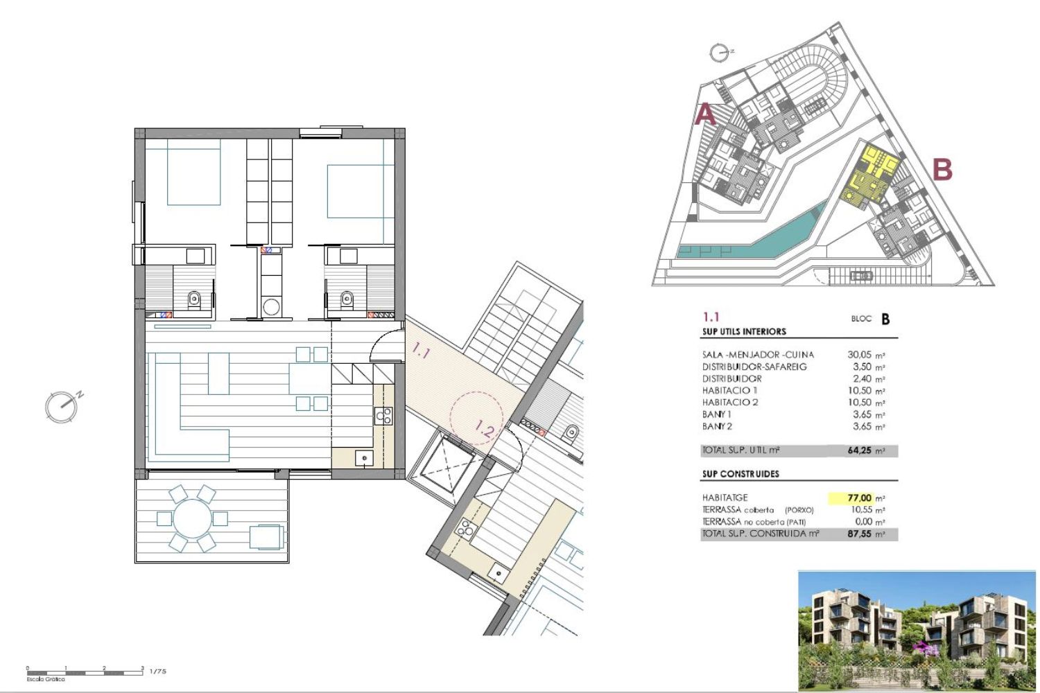 m2 construidos77 m²