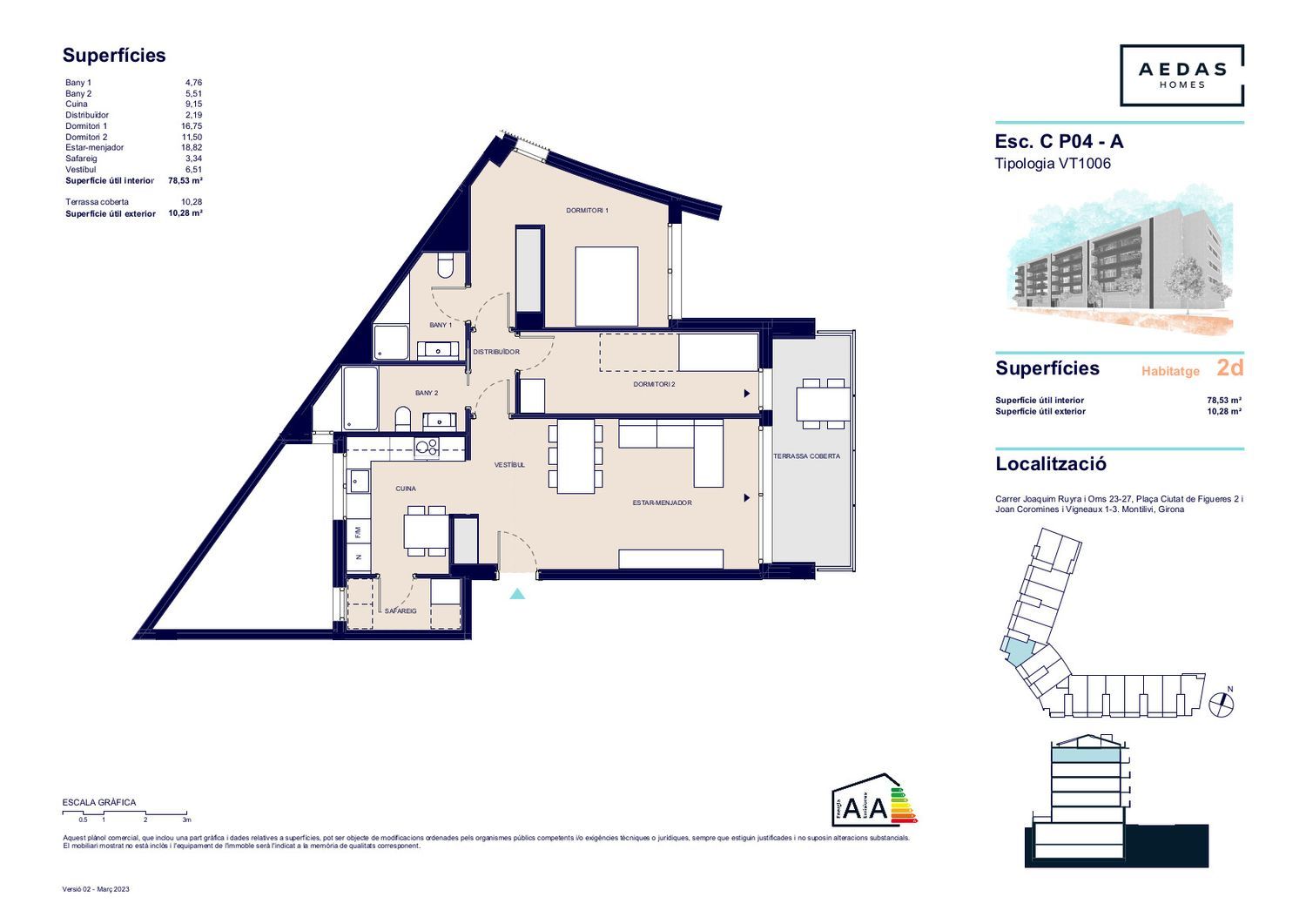 Descubre Roget, nuestra promoción en Girona en una zona residencial privilegiada, donde podrás disfrutar de la tranquilidad a dos pasos del centro de Girona.Los precios no incluyen parking ni trastero.Tu nueva casa se encuentra en el barrio de Montilivi, al este de Girona. Esta zona, totalmente consolidada, es ideal para quienes buscan residir a tan solo 15 minutos del centro histórico gerundense.En Roget disfrutarás de las ventajas que supone vivir en el centro de la ciudad: se encuentra a un paso de la Avenida Lluís Pericot y del Eixample de Girona, y cuenta con una comunicación excelente con la AP-7 que conduce a Barcelona y con la C-65 que conecta con todo el Gironès.Sabemos que la casa que buscas es como tú: tiene tu personalidad, esa forma tuya tan peculiar de ver la vida y un toque de singularidad que la convierte en un espacio solo para ti. Por eso, desde AEDAS Homes te ofrecemos 84 viviendas para todas las necesidades –de 2 y 3 dormitorios y dúplex de 3 dormitorios con altillo– muy cerca del centro de Girona. A escasos minutos de tu nueva casa se ubican varios centros educativos y, además, junto a Roget también disfrutarás de espacios verdes y plazas para pasear y relajarteEnglobada dentro de un mapa urbano histórico, Roget se sitúa en una ciudad donde moverse es muy sencillo: Girona cuenta con fáciles accesos en vehículo privado y múltiples opciones de transporte público, estaciones de Cercanías y de AVE y decenas de paradas de autobuses tanto locales como interurbanos.