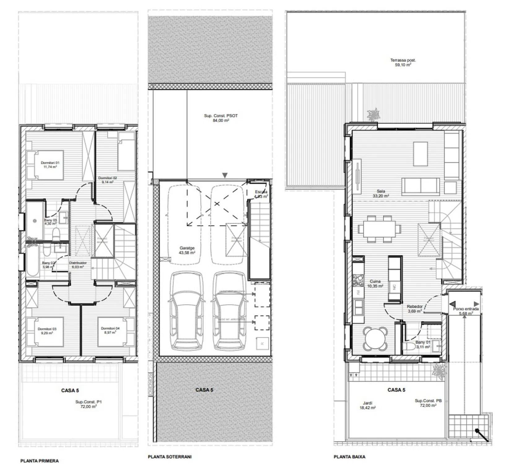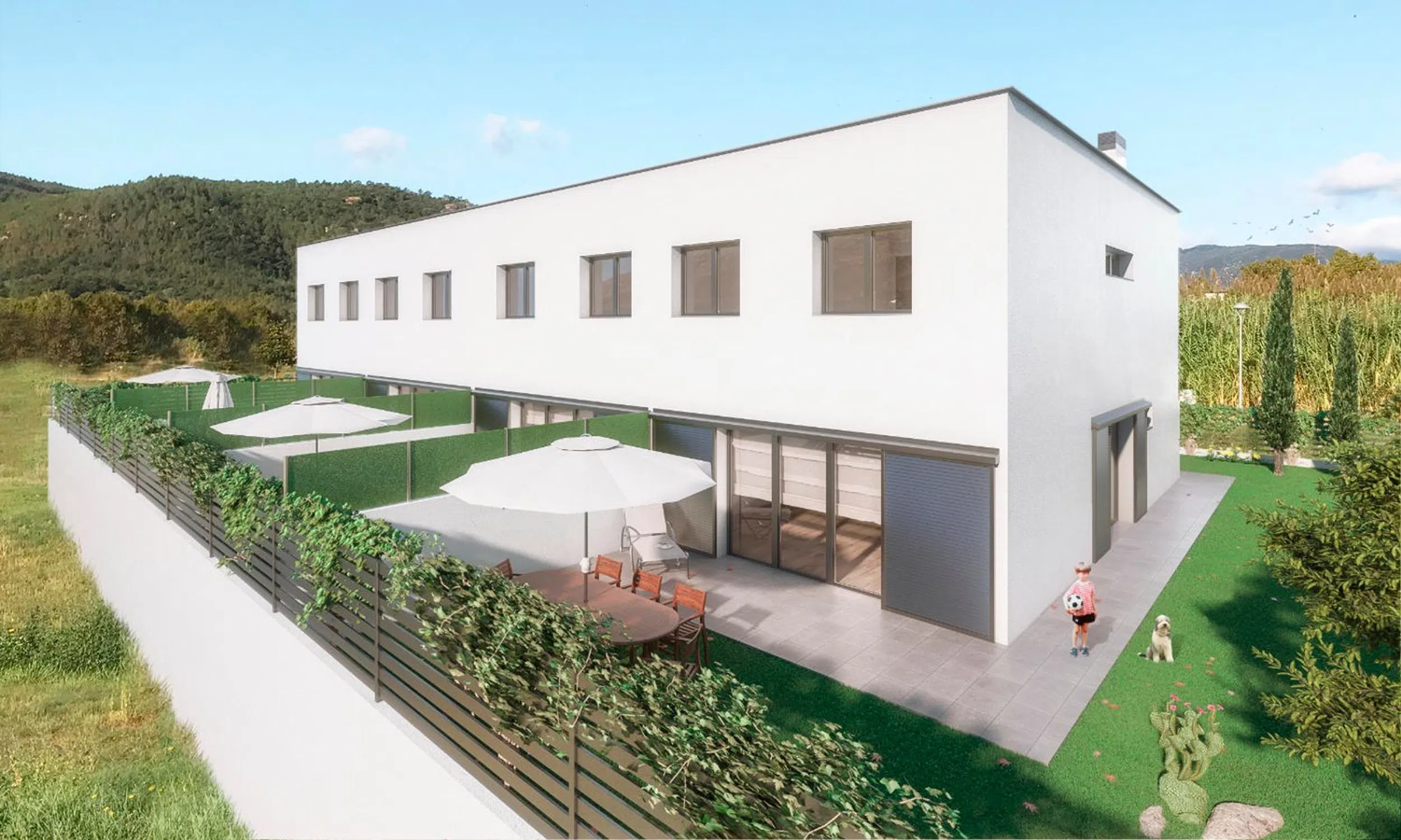 La nueva promoción en Santa Coloma de Farners apuesta por la sostenibilidad, el confort y la eficiencia energética con la certificación Passivhaus, un estándar internacional que garantiza hasta un 90% de ahorro energético y un confort térmico excepcional durante todo el año. Cada vivienda ha sido diseñada aplicando los principios de la bioconstrucción: aislamiento térmico de alto rendimiento, ventanas de triple cristal, eliminación de puentes térmicos, ventilación mecánica con recuperación de calor y máxima estanqueidad. Todo esto permite mantener una temperatura interior estable sin necesidad de grandes sistemas de calefacción o refrigeración. Estas casas no solo ofrecen una calidad de vida superior y un aire interior saludable gracias a la renovación constante del aire, sino que también representan una inversión de futuro: materiales de alta durabilidad, menor mantenimiento, reducción de emisiones de CO₂ y un valor añadido con garantía internacional. La promoción se compone de 4 viviendas unifamiliares distribuidas en planta sótano (aparcamiento privado), planta baja y planta piso, todas con jardines privados, orientación óptima y ventilación cruzada. Un diseño contemporáneo, sostenible y pensado para vivir bien hoy y mañana. En este caso podemos encontrar una casa adosada. En la planta baja el garaje, con espacio pensado para poder poner un ascensor. En la planta baja, la entrada, un baño auxiliar al lado, la cocina con espacio para comer, y el comedor/sala de estar abierto. En la primera y última planta, una suite con baño privado, dos habitaciones dobles y una individual, las tres con un baño a compartir. Las obras ya han empezado, y se espera entregar a principios de 2026. ¿A qué esperas para visitarlas.