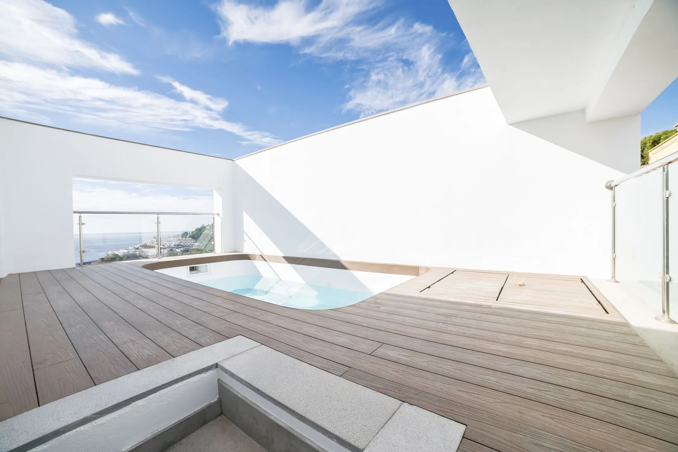 Viviendas de diseño en Almuñécar con piscina privada y vistas al mar. Modernas, cómodas y luminosas, distribuidas en una o dos plantas con salón, cocina, 2 dormitorios, 2 baños, terraza y piscina privada. Cuentan con acabados de primera calidad, cocina equipada, carpintería de aluminio y garaje privado. Ubicadas en una zona tranquila, a pocos minutos del mar y del centro urbano. Una oportunidad perfecta tanto como residencia habitual como inversión vacacional en la Costa Tropical.
