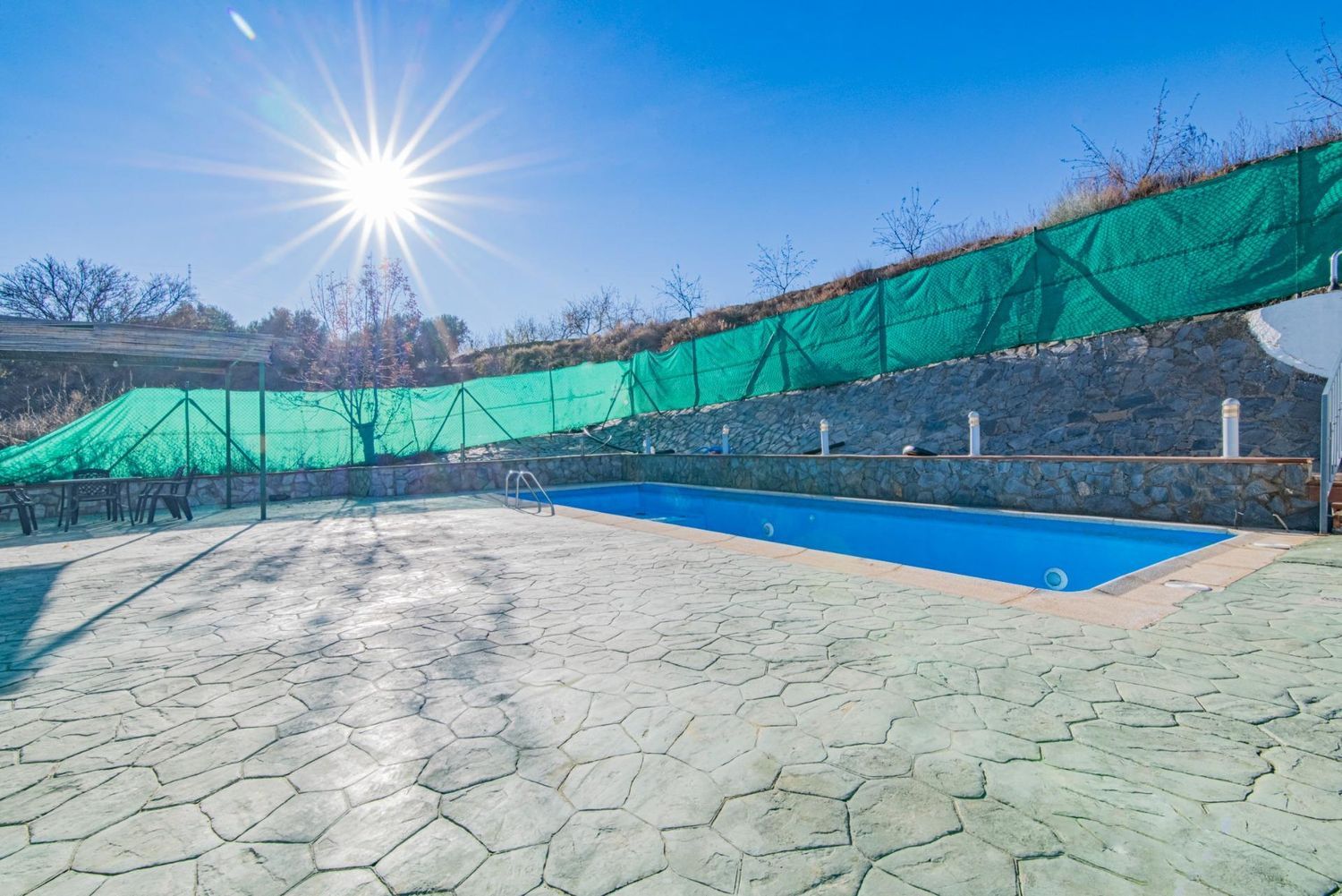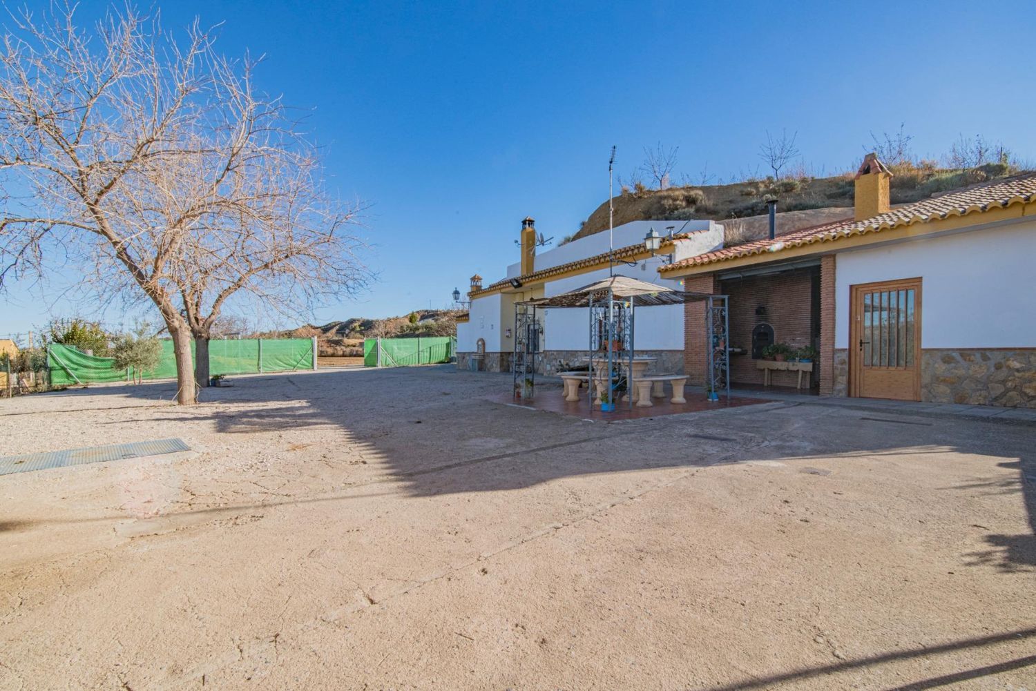 Si estás pensando en invertir un dinero en un negocio que te de rentabilidad desde el primer día, tienes que venir a visitar esta magnífica casa cueva en Graena, municipio situado en la parte centro-oeste de la comarca de Guadix, en la provincia de Granada, en un entorno privilegiado, rodeado de naturaleza, con el sonido de los pájaros al despertar, y respirando aire puro fuera del estrés de la ciudad. Limita con los municipios de Purullena, Marchal, Beas de Guadix, Polícar, Lugros, La Peza y Darro. Actualmente se encuentra en funcionamiento dada de alta como vivienda turística de alojamiento rural en la Junta de Andalucía.La finca tiene una extensión superficial de 2 hectáreas, a la cual se accede mediante portón automático.La cueva consta de unos 120 m2 y tiene capacidad para 6 personas.Tiene luz propia y agua, además de 2 pozos y 3 horas de agua de riego de Sierra Nevada cada 14 días. También tiene 200 almendros ecológicos.Dispone de 3 dormitorios, cocina de diseño totalmente equipada, salón con una agradable chimenea, radiadores eléctricos, 1 baño con jacuzzi y 1 aseo. El exterior dispone una gran piscina climatizada, porche con zona de fregadero y barbacoa, además de un lavadero y 1 aseo.En el porche delantero de la vivienda encontramos una bonita pérgola con zona de horno de leña, barbacoa y fregadero.Aparte de todo esto, nos encontramos con 3 naves. Una de ellas de 137 m2 en la que se pueden celebrar eventos o cualquier tipo de celebración. Dispone de un gran baño completo, portón automático y mosquiterasLas otras dos naves ahora mismo están destinadas a almacenamiento, pero se podrían usar como cochera. Otra de ellas dispone también de portón automático.*El precio de venta no incluye los honorarios de inmobiliaria ni los gastos de gestión (notaría, registro, tasación…). Los metros detallados en el anuncio se basan en datos registrales o catastrales sujetos a excesos de cabida.