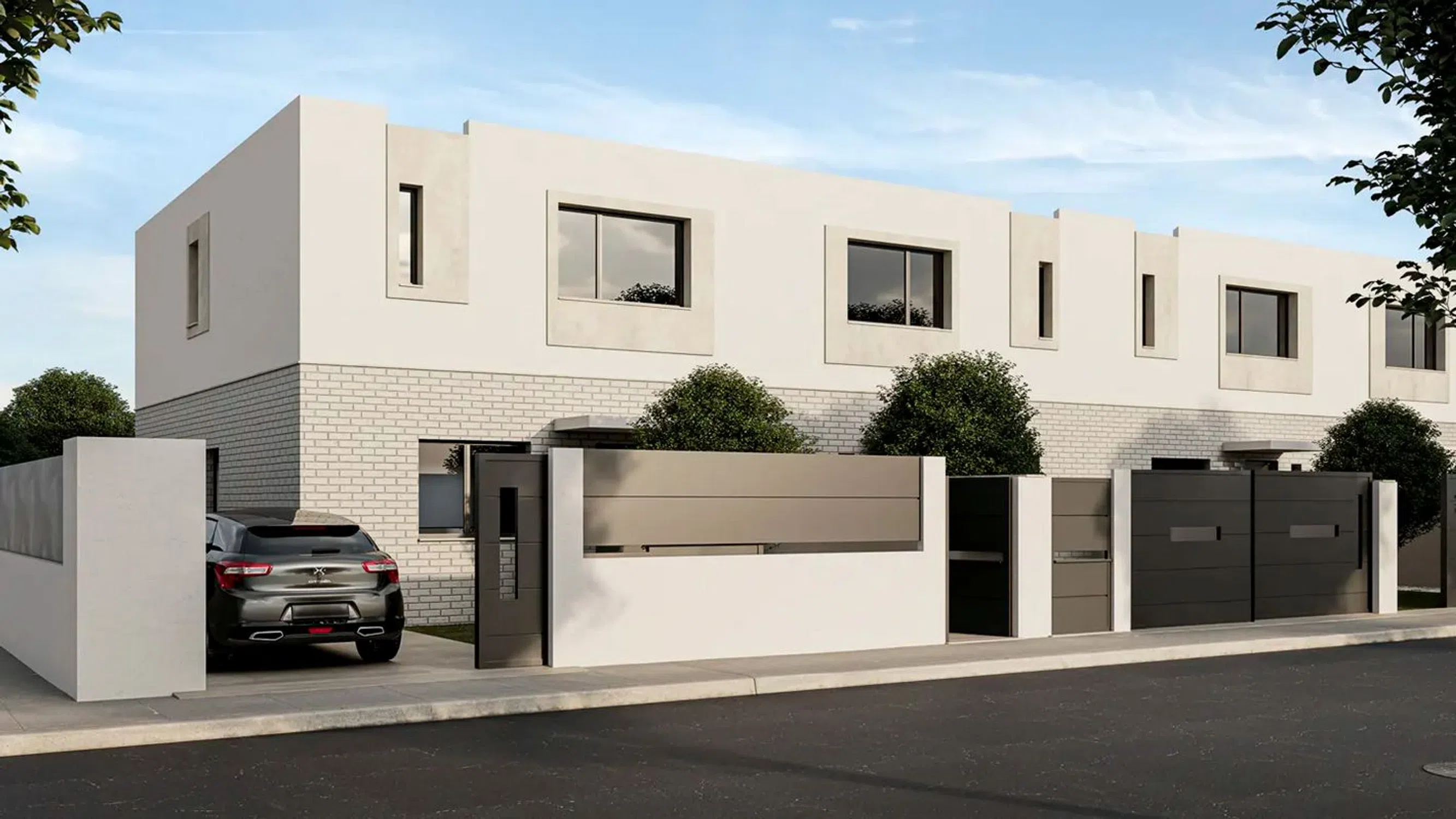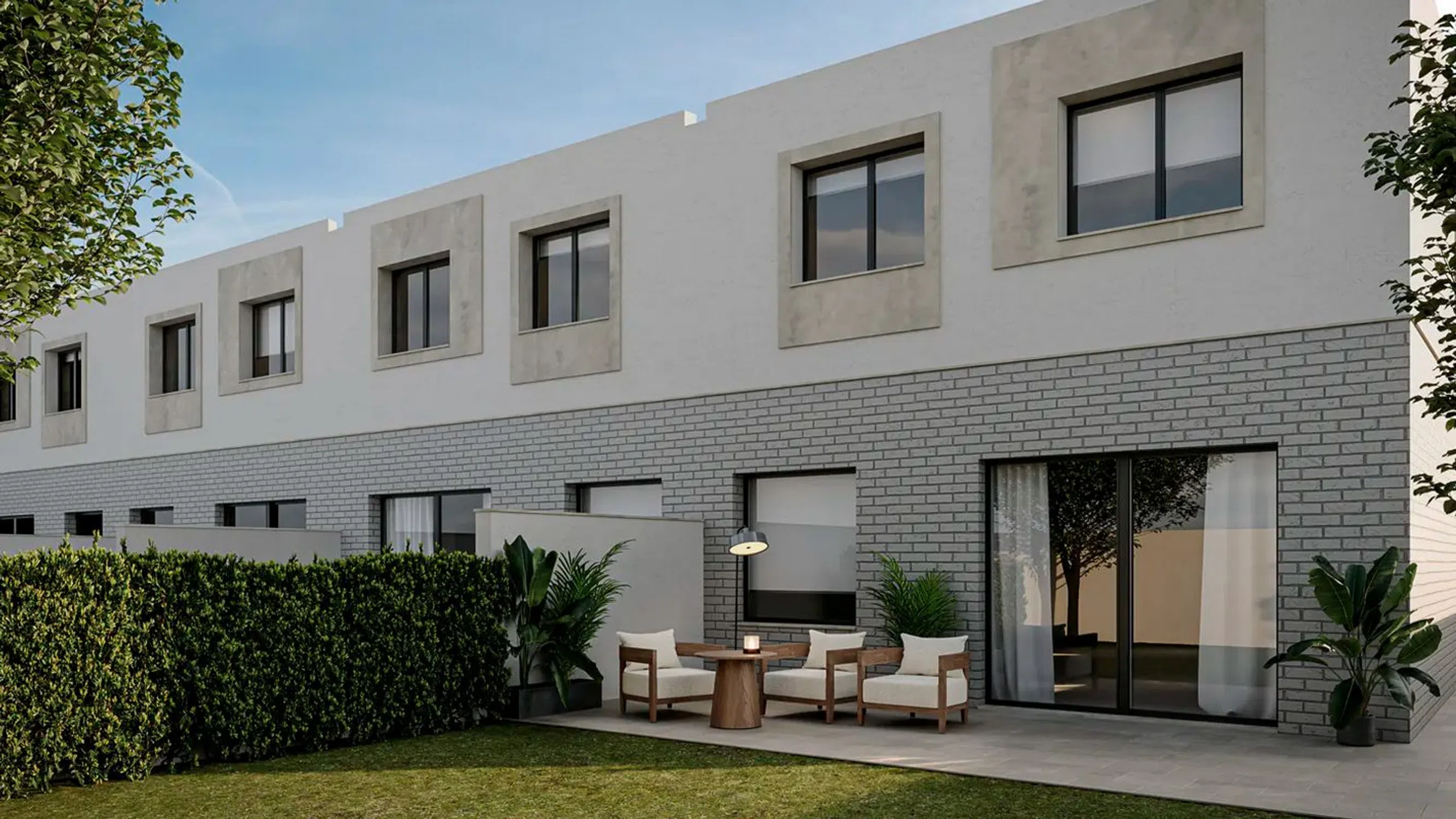 Engel&Völkers les presenta esta promoción de chalets adosados de obra nueva en Cabanillas del Campo (Guadalajara). Esta promoción está compuesta de unos preciosos chalets adosados distribuidos en dos cómodas planta. Todas las viviendas están construidas sobre un aparcela de 175m² y cuentan con 149m² construidos a los que habria que añadir las zonas de terraza y aparcamiento. En la planta principal de 92m² encontramos el vestibulo desde el que accedemos al primero de los dormitorios de la vivienda, que también puede ser utilizado como despacho y un baño completo y a continuación la zona principal de la vivienda, un salón comedor con la cocina integrada y salida directa a nuestra terraza y jardín privado. En la planta superior está sutiada la zona de noche donde se situan 3 dormitorios, el dormitorio principal con baño en suite y vestidor y los otros doss dormitorios que comparten un baño. En la zona delantera de la vivienda se situa la zona de aparcamiento de 32m² con capacidad para dos vehículos. No deje pasar la oportunidad de adquirir uno de estas maravillosas viviendas en una zona residencial ideal para vivir en familia en una de las zonas de mayor crecimiento de Guadalajara.