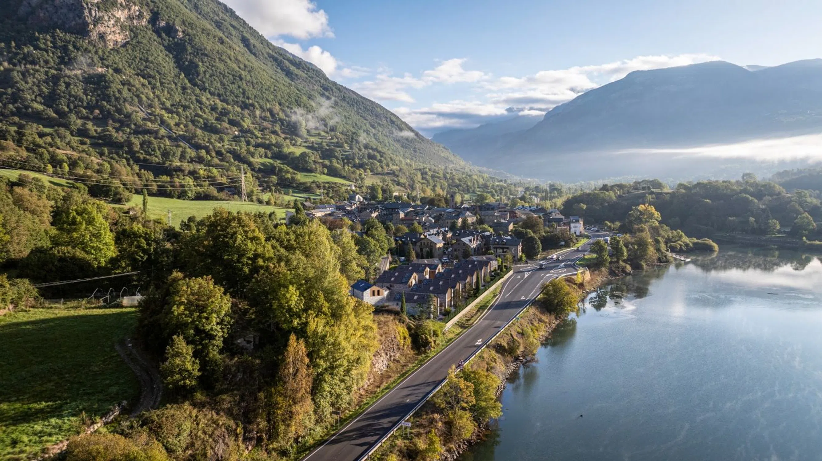 Las Bordas de Eriste Descubre Las Bordas de Eriste, una exclusiva promoción de viviendas unifamiliares que rinde homenaje a las tradicionales casas de montaña. Cada hogar, con sus techos altos y grandes cristaleras refleja la elegancia y sobriedad en su diseño que crea espacios acogedores Con impresionantes vistas al pantano o a las montañas, este enclave es el refugio perfecto para quienes buscan tranquilidad sin renunciar a la cercanía con las animadas calles de Benasque. Construidas con piedra del país, u materiales sostenibles y eficientes, estas residencias cuentan con amplias zonas ajardinadas y son disfrutables durante todo el año gracias a sus soleados ambientes. Además, cada vivienda incluye dos plazas de garaje para mayor comodidad. Los altos techos crean una sensación espacial única e iluminada; aquí encontrarás ese equilibrio perfecto entre modernidad, ecología y tradición en un entorno natural inigualable.