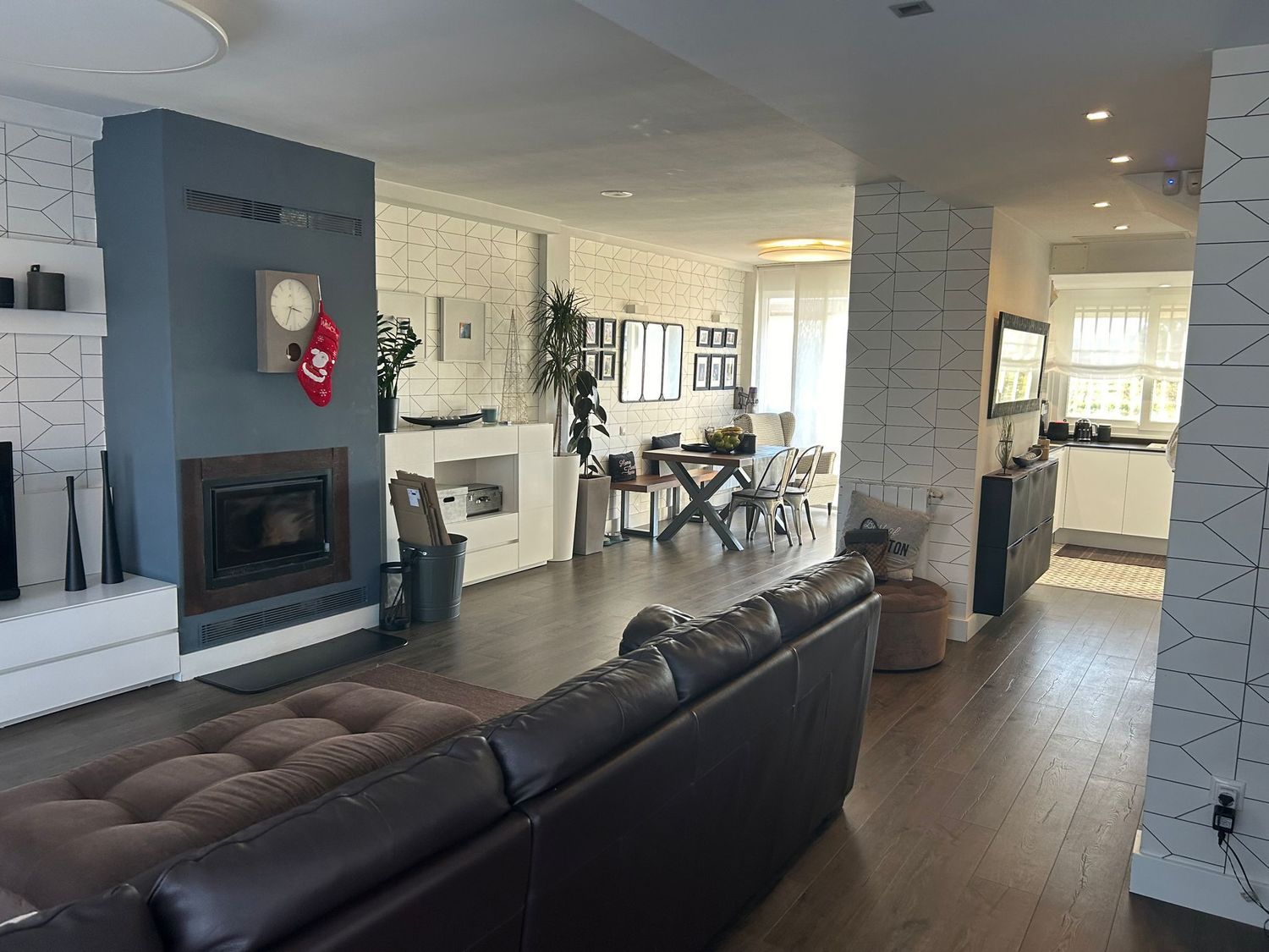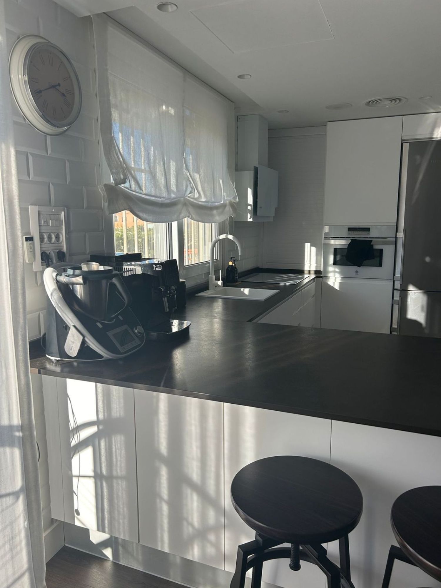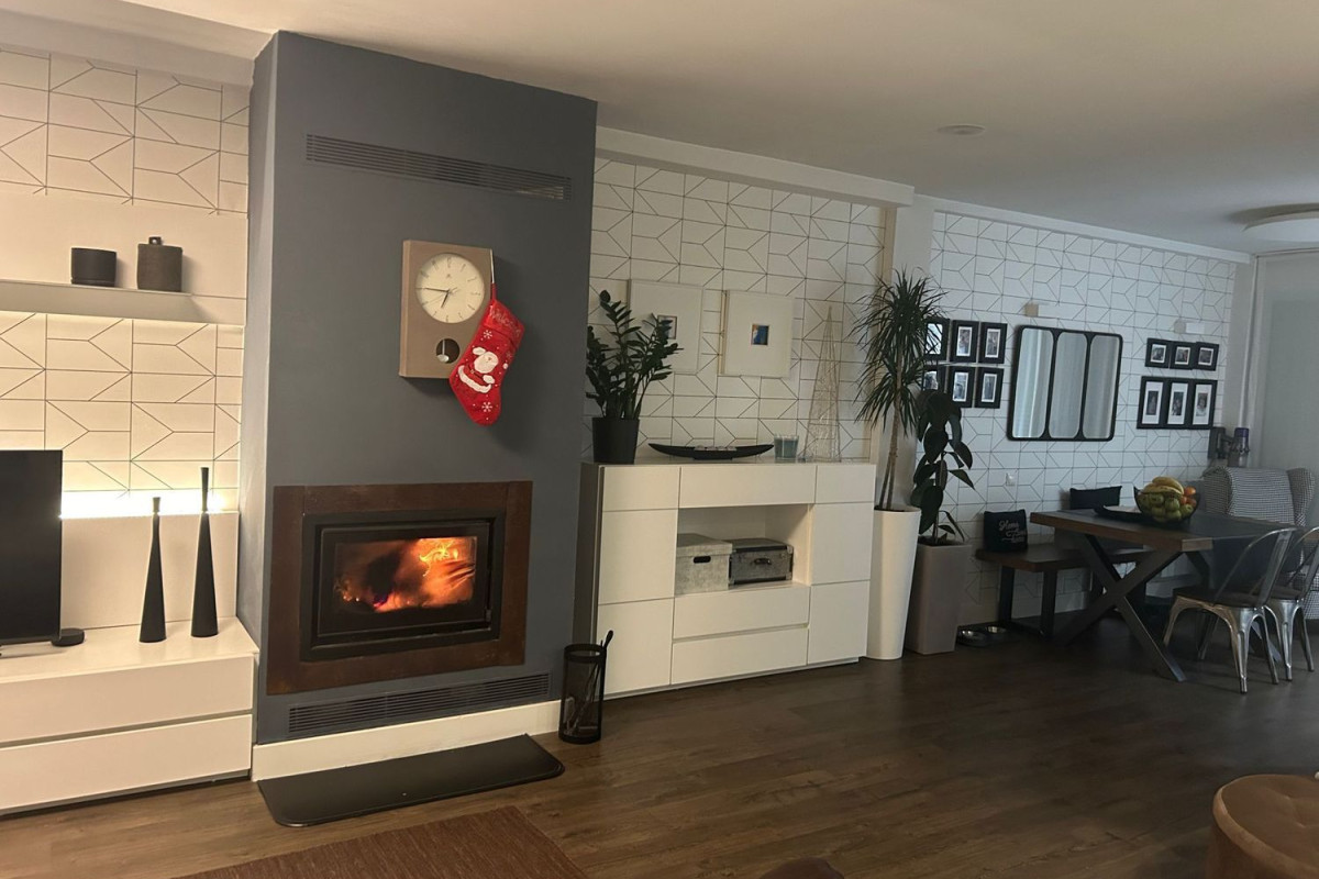 Se vende precioso adosado en esquina de cuatro plantas:En la planta sótano, nos encontramos con un merendero con gran capacidad y una moderna cocina totalmente equipada, tiene chimenea de cásate y un garaje (se pueden meter dos coches y una moto), una sala de calderas y un gimnasio. Tiene salida independiente a la gran terraza posterior, sin necesidad de hacerlo a través de la vivienda, pero también tienes acceso al merendero y garaje, desde la propia vivienda.En la planta baja, tenemos un gran espacio que engloba un gran salón con chimenea cerrada, una cocina abierta, un aseo y las escaleras.Desde esta planta, accedemos al jardín que en este caso esta puesto con madera y cuenta con con una gran pérgola bioclimática.En la segunda planta, tenemos los 3 dormitorios.El principal, con baño en suite y amplio vestidor. Y un baño completo para dar servicio a las habitaciones. Dispone de aire acondicionado frío/calor por conductos.Y la planta ático, acondicionada como gran dormitorio independiente y con aseo. Dispone de aire acondicionado frío caló invertir mediante split y también tiene calefacción, como en el resto de la casa.La vivienda cuenta con muchas mejoras: Aire acondicionado de conducto frío calor inverter en plantas baja y primera, ventanas de pvc con triple vidrio oscilobatientes en toda la vivienda y persianas con motor y mosquiteras.toldos motorizados, persianas motorizadasplacas solares, caldera de gas individual con caldera nueva.Todas las fachadas han sido aisladas térmicamente. Suelo unificado Quick step en las tres plantas de vivienda, excepto baños, cocina y bodega que es de gres.También dispone de hilo musical en planta bajaEscaso consumo de gas, gracias a las placas solares, el aislamiento y las chimeneas.Orientación este/oesteEstá ubicada en una urbanización privada, con zona privada ajardinada y piscina. Zona residencial muy tranquila y con pocos vecinos, gastos de comunidad muy económicos. Un lugar ideal.