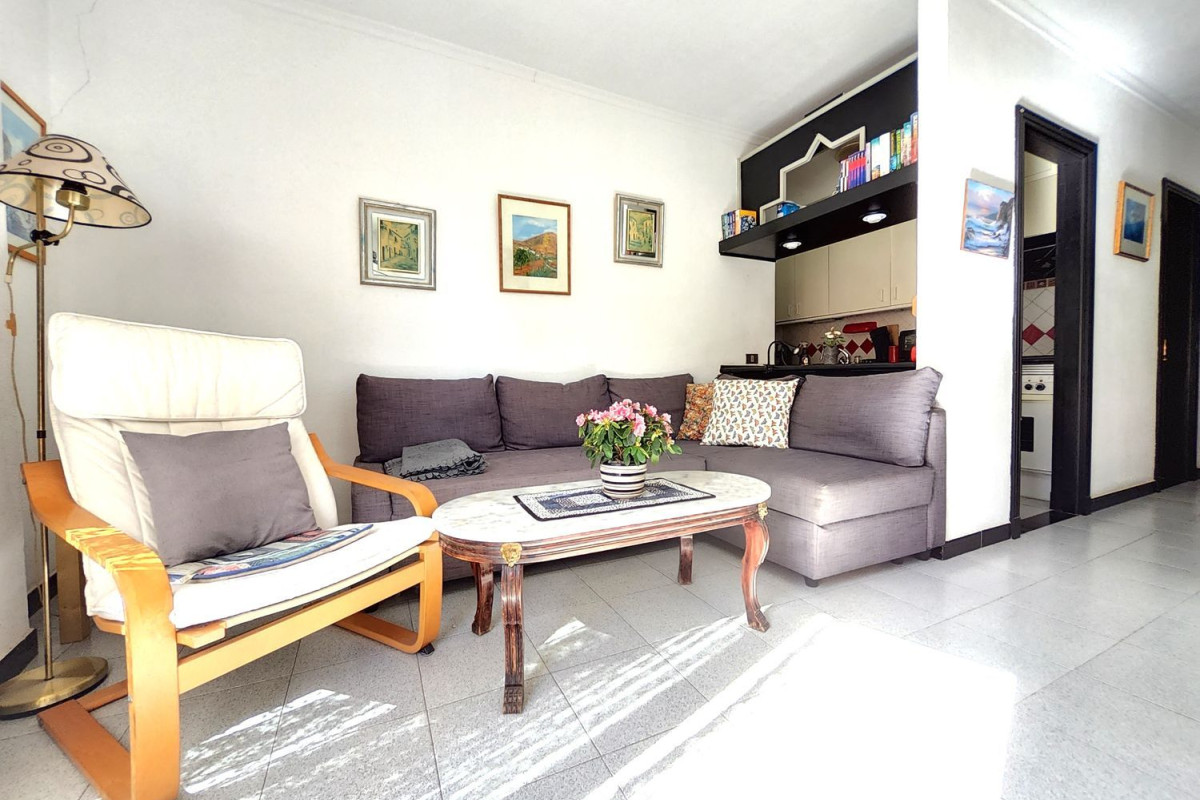 La vivienda:Se trata de una vivienda ideal para parejas que quieran disfrutar de uno de los mejores clima del mundo en la localidad de Arguineguín, al sur de Gran Canaria. Su distribución es la siguiente:- Balcón largo desde el cual disfrutar de las numerosas horas de sol que dan a la vivienda durante el día. Sus grandes ventanales aportan iluminación natural y ventilación. Además, esta zona cuenta con una mesa y dos sillas de gran comodidad.- Salón amplio con sofá y una mesa extensible que puede servir de comedor. Tiene acceso directo al balcón. - Pequeña cocina acogedora con todo lo necesario.- Dormitorio doble con grandes armarios empotrados en los cuales podrás almacenar y ventanales que aportan luz solar al interior de la habitación. - Baño semi reformado con lavadora y ducha. La zona:La propiedad está ubicada en el centro del pueblo de Arguineguín. Tiene excelente accesibilidad a la zona comercial y gastronómica. A tan solo 2 minutos andando podemos encontrar una de las playas con las que cuenta el pueblo y desde donde se aprecia uno de los mejores atardeceres de la isla.Arguineguín cuenta con numerosos lugares de ocio, gastronomía y comercio, además de contar con supermercados, farmacias, colegios y centro de salud a los que podemos ir andando.