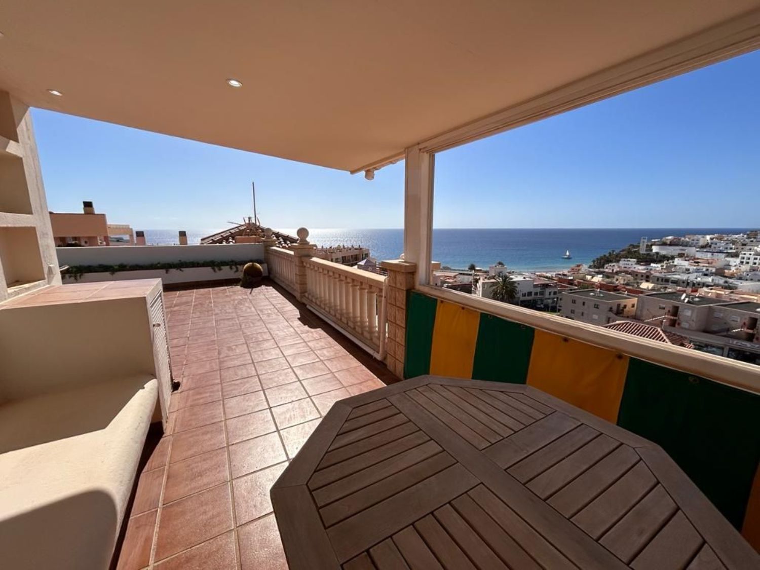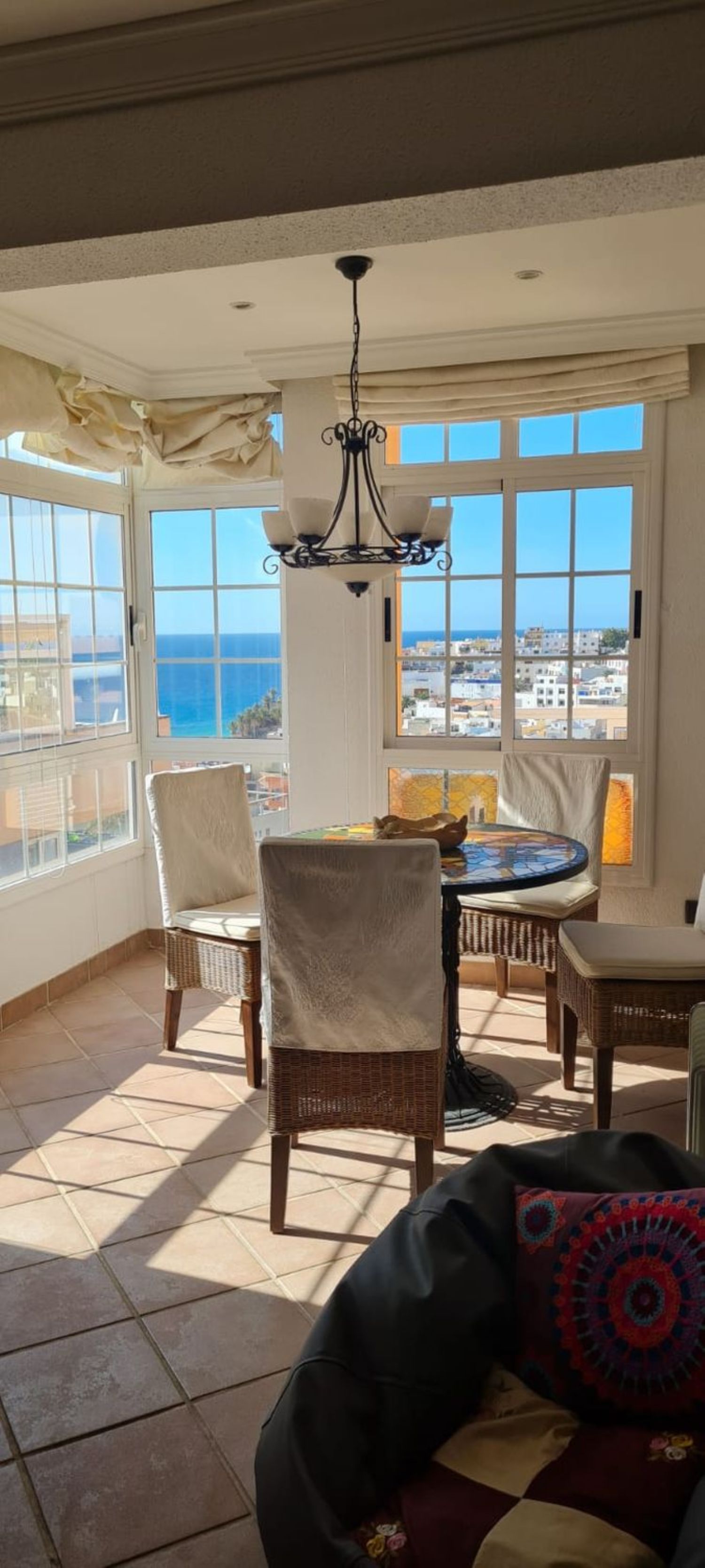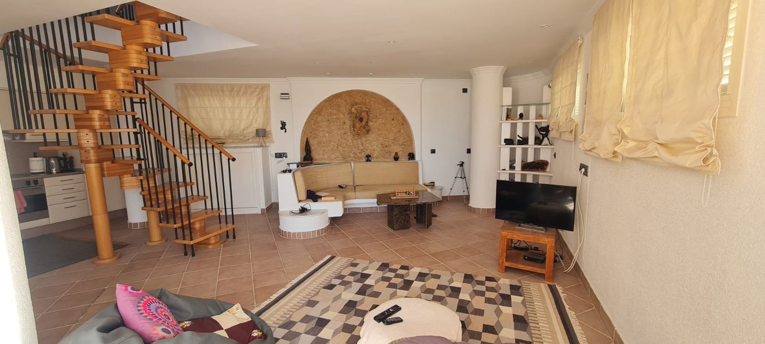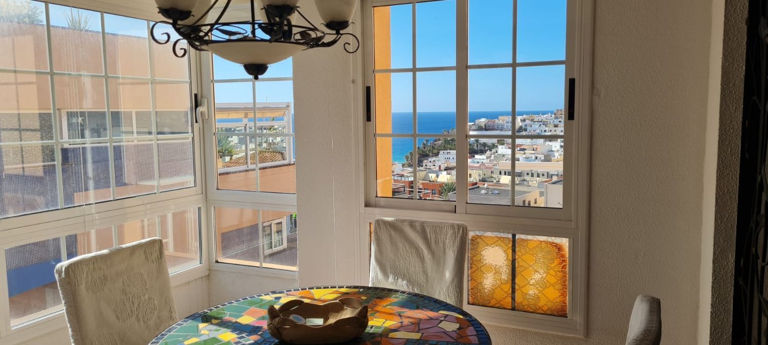 - situado en el borde del casco antiguo de Morro Jable- aprox. 150 m² de superficie habitable en tres plantas- gran azotea con aprox. 100 m² de espacio sobre los tejados de Morro Jable con vistas panorámicas al mar- Zona de estar parcialmente cubierta en la azotea- planta baja:- baño- lavadero- cuarto de baño con WC- 1er piso:- gran salón/comedor con zona de cocina abierta- la cocina está equipada con vitrocerámica de 4 placas, horno, frigorífico/congelador y lavavajillas- 1 dormitorio con vestidor contiguo- un aseo separado- Cuarto de baño con tocador, inodoro, bidet y bañera esquinera grande con función de hidromasaje.- 2 ° piso:- dormitorio/oficina grande- azotea- amueblado- aire acondicionado- Opcionalmente se pueden alquilar 2 plazas de aparcamiento directamente delante de la casa por 150,00 € cada año.- SIN COMISIÓN AL COMPRADORCostos mensuales y anualesMensual:Electricidad según consumoAgua – Según consumoAnual:Comunidad – aprox. 350,00 eurosImpuesto sobre la propiedad IBI – aprox. 570,00 eurosGestión de residuos – aprox. 40,00 euros.