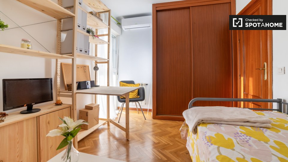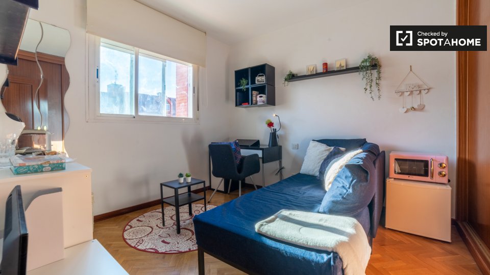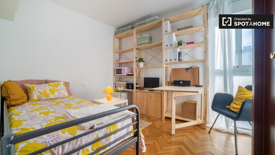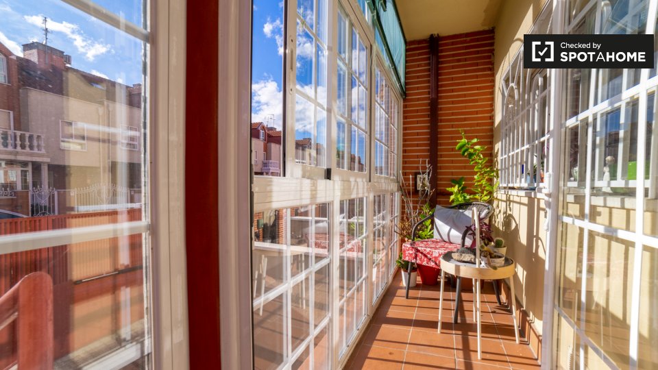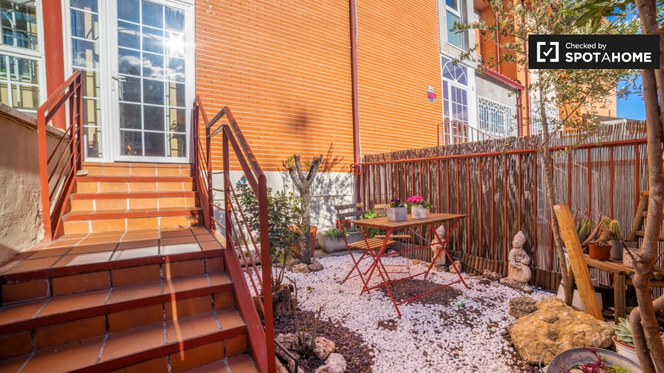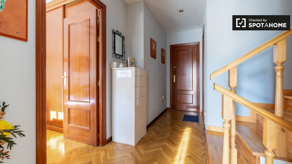 **¿Por qué Alcalá?** Porque quiero vivir residencial. Se alquilan habitaciones en casa amueblada de 3 dormitorios y 3 plantas en la C. Ernesto Sábato. El establecimiento incluye jardín y patio. **¿Me gustará aquí?** ¿Es usted una persona con los pies en la tierra que busca un poco de paz y tranquilidad lejos de las multitudes y las trampas para turistas? Alcalá de Henares podría ser para ti. Ven a comprobarlo con nosotros. **Dime más...** Le encantará su habitación luminosa y acogedora con TV, microondas, tostadora, cafetera y nevera privada. Claro, Alcalá de Henares está a unos 20 km del centro de Madrid, pero eso es lo mejor. Relájese y disfrute del ambiente urbano de este encantador barrio. El lugar perfecto para estudiar. **Tus 3 razones principales para vivir aquí:** Es difícil elegir sólo tres: - Luminosa y hermosa habitación privada. - Tienes acceso a un jardín compartido. - Jardines Juan Pablo II el gurugu cerca y el Parque O'Donnell está a 15 minutos a pie. **Su inspector de viviendas, dijo:** “Me encantó esta propiedad. Es una casa preciosa en un barrio residencial tranquilo. Es la casa perfecta con todos los servicios cerca. Te sentirás como en casa, lo único que necesitas para sentirte cómodo es tu maleta con tus pertenencias, del resto nos encargamos nosotros." **Ayúdame a decidirme...** Estas habitaciones son perfectas para personas amantes de la naturaleza. Ya sea que esté buscando nuevas rutas para correr o simplemente pasar un rato tranquilo en la naturaleza, este lugar lo tiene cubierto. Fácil acceso a transporte público, tres colectivos al centro de la ciudad y a universidades. Cerca de supermercados, centro comercial, instalaciones deportivas, hospital y centro de salud. La casa está completamente amueblada, es acogedora y recibe mucha luz natural. Importante: - Compartirá esta propiedad con el propietario residente. - Dormitorio 1 -> **Importante: no hay acceso a la cocina, pero la habitación tiene una zona con microondas, tostadora, nevera y cafetera. La habitación tiene baño privado solo para ti. **