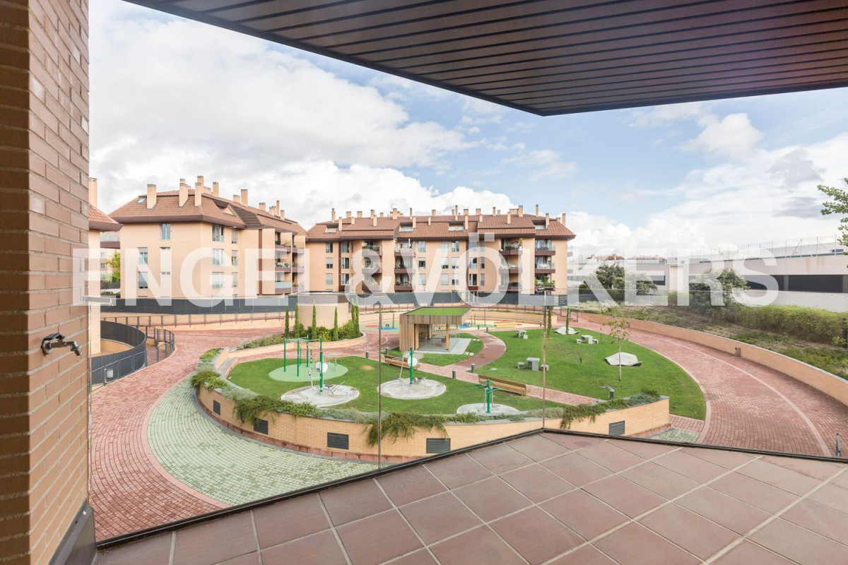 Piso de dos dormitorios en Boadilla del MonteEngel & Völkers presenta este cómodo piso en una urbanización de Boadilla del Monte. La propiedad cuenta con 113 metros cuadrados. A la entrada del piso nos encontramos con el pasillo distribuidor de la vivienda, una amplia cocina equipada con todos sus respectivos electrodomésticos y un cuarto de lavado independiente. Seguidamente tenemos un gran salón - comedor en un solo ambiente y con acceso a la terraza. Luego nos encontramos con el área de descanso del piso. Dos dormitorios dobles, el principal con su respectivo baño en suite y un segundo baño para el segundo dormitorio. El piso cuenta con dos plazas de garaje y un trastero incluido en el precio de la renta. La urbanización cuenta con parque infantil, áreas verdes, dos piscinas, pista de padel, portero, entre otros. Los gastos de Comunidad e IBI están incluidos en el precio de la renta.Engel & Völkers presenta este cómodo piso ubicado en una urbanización, totalmente residencial de Boadilla llamada Las Terrazas de Los Fresnos, muy tranquila, con parques infantiles y amplias aceras arboladas, el Colegio Bilingüe Highlands en la misma acera y perfectamente comunicado con varias paradas de Bus. Está muy cerca de la zona comercial de El Carralero en Majadahonda, el Hospital Puerta de Hierro y los campos de Golf. También quedan cerca el resto de los colegios privados y concertados del municipio, así como los complejos deportivos de Boadilla, la zona comercial y de ocio en el Sector B, farmacias, supermercados y todo lo necesario para el día a día. Inmejorable ubicación con acceso rápido a la M-50 y al casco urbano e histórico de Boadilla, así como a Majadahonda, Villanueva de la Cañada y Pozuelo de Alarcón.